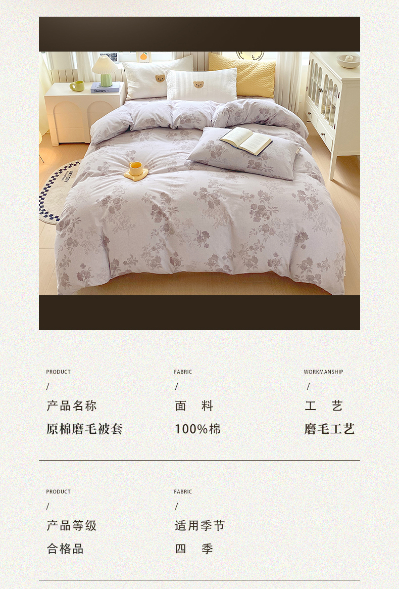 商品名称:春皖家纺 2026新款原棉磨毛单被套 被套单件-风格一 花庭悦舞