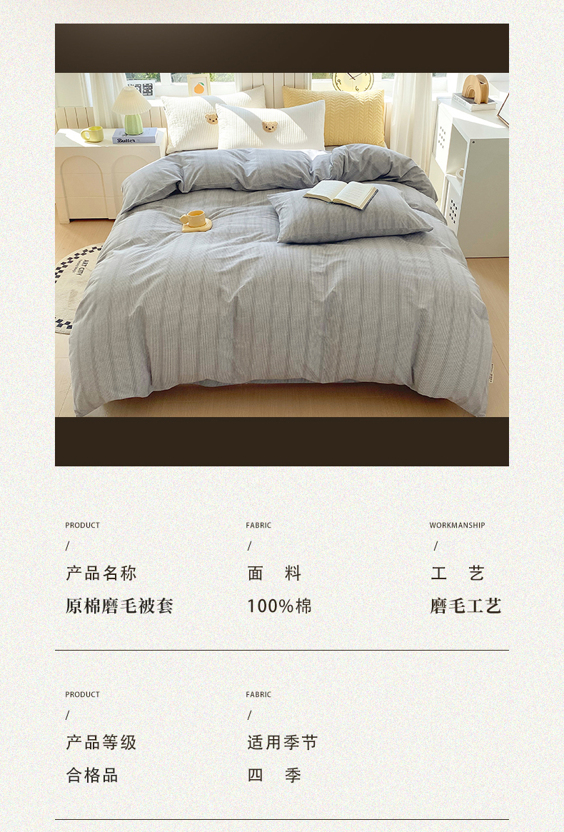 商品名称:春皖家纺 2025新款原棉磨毛单被套 被套单件-风格一 暮山灰