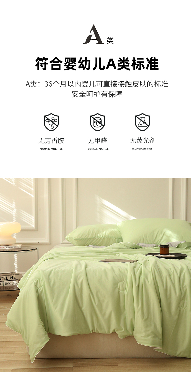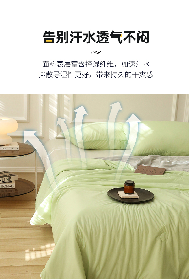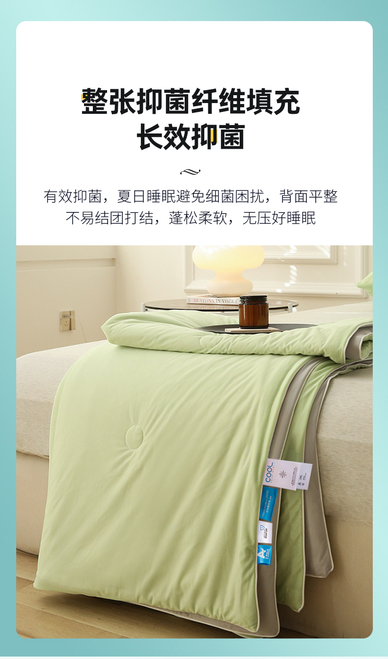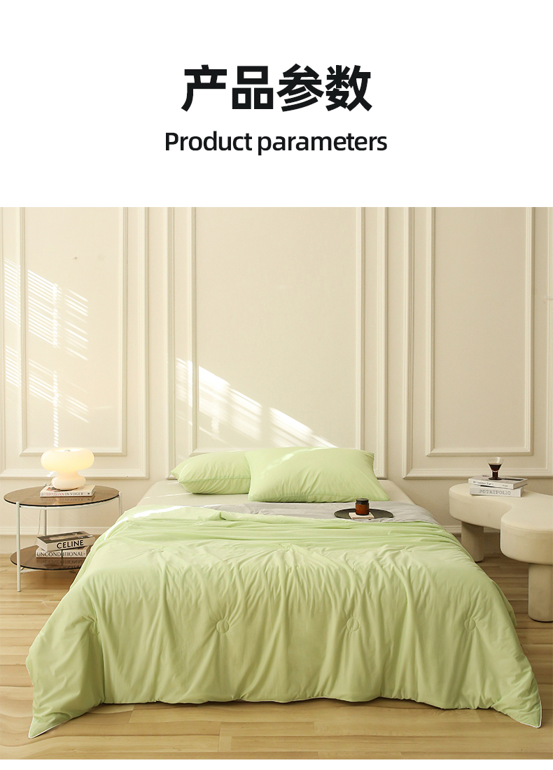 商品名称:缦绣阁 2025春夏新款纯色双拼凉感丝夏被冰淇淋夏被夏凉被空调被被子被芯跨境外贸爆款 果绿-浅灰