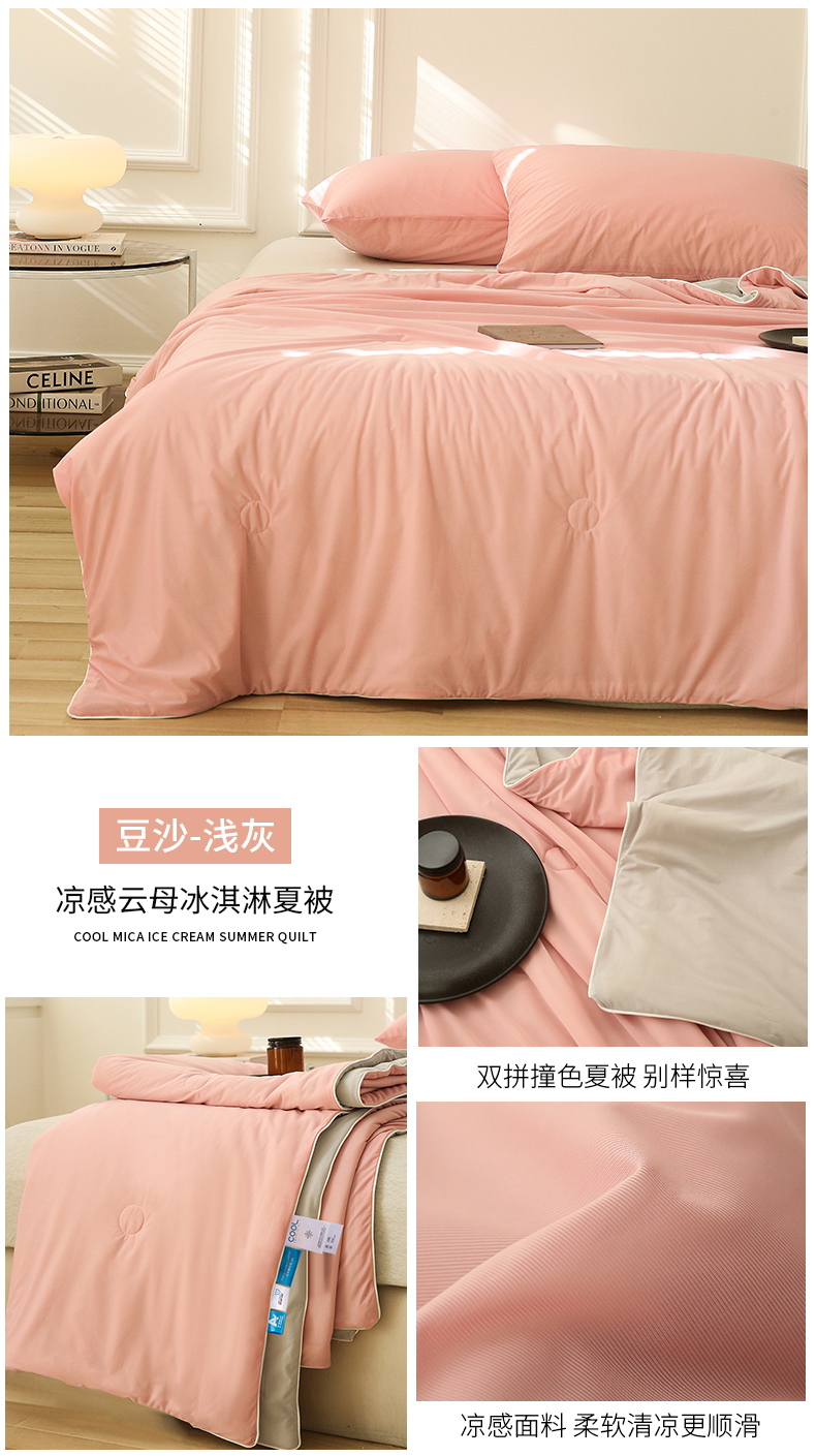 (总)缦绣阁家纺 2025春夏新款纯色双拼凉感丝夏被冰淇淋夏被夏凉被空调被被子被芯跨境外贸爆款,灰色,绿拼粉,绿拼灰,浅蓝拼粉,浅蓝拼灰,玉拼灰