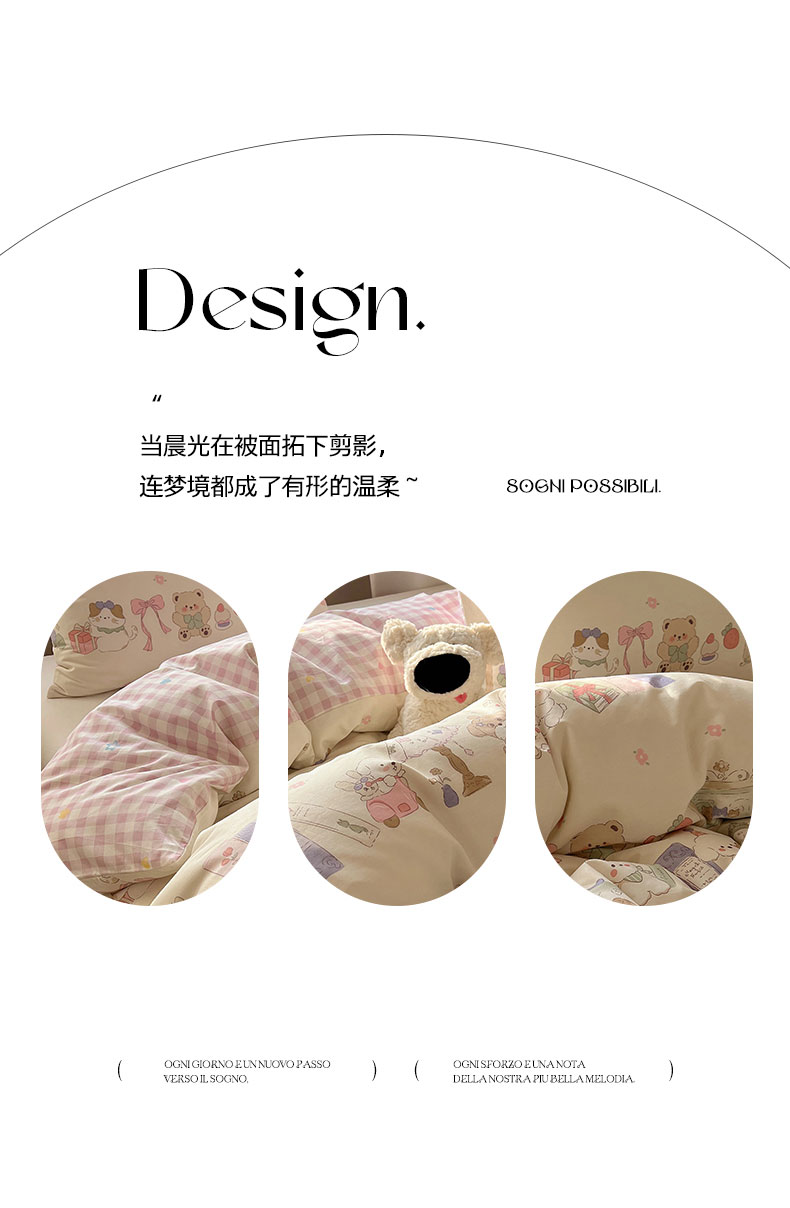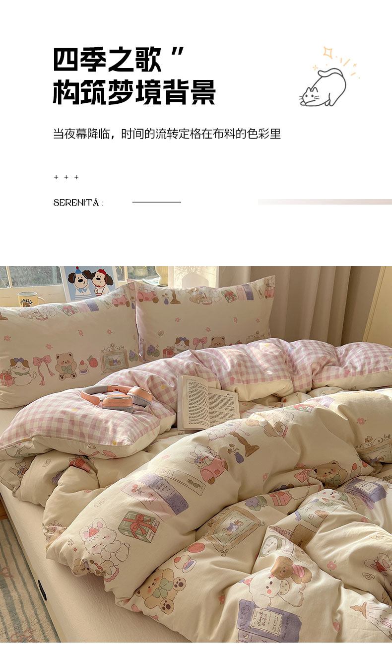 (总)六巷胡同 2025新款INS卡通童趣混搭风全棉四件套第二系,混搭-蛋糕围兜熊,混搭-奶油酣睡熊,混搭-奈斯羞羞狗,混搭-小蓝格甜点,混搭-雪糕哈皮熊,混搭-月亮睡睡熊