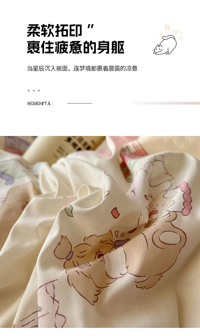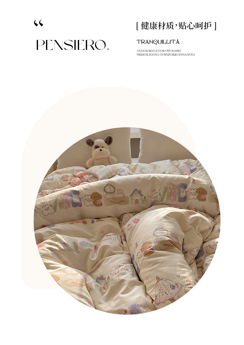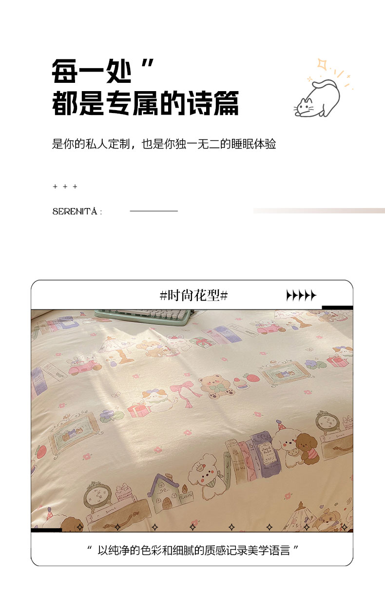 (总)六巷胡同 2025新款 INS减龄可爱风卡通全棉四件套第五系(森林音乐会系列),波点嘟嘟猫,点点面包犬,调皮蔷薇狗,哈喽泡芙猫,蓝格插画犬,森林音乐会