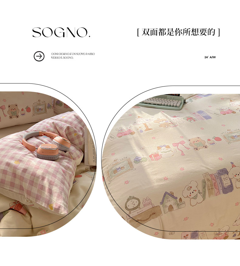 (总)六巷胡同 2026新款INS博主风卡通A类全棉双层纱四件套,双层纱-海盐樱桃熊,双层纱-贝雷腊肠狗,双层纱-达奇家政喵,双层纱-多乐背带熊,双层纱-花圃萝莉猫,双层纱-马卡龙蛋糕,双层纱-萌趣佩佩猪,双层纱-甜心童话猫,双层纱-元气蝴蝶结,双层纱-云朵苏萨犬