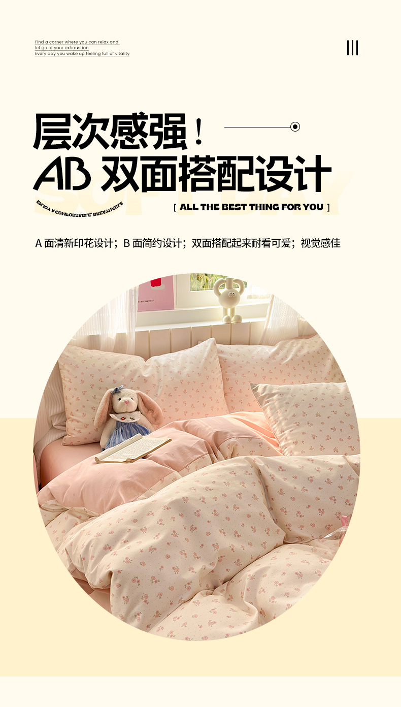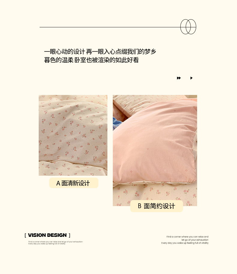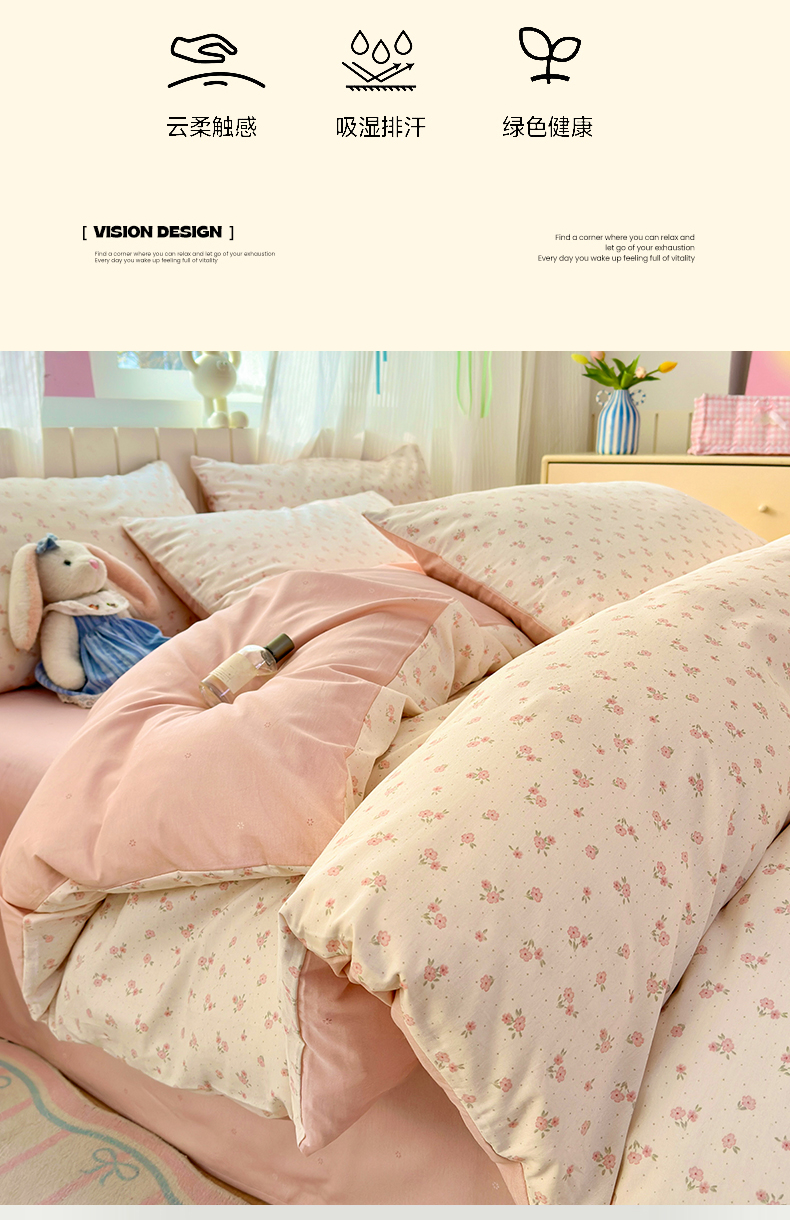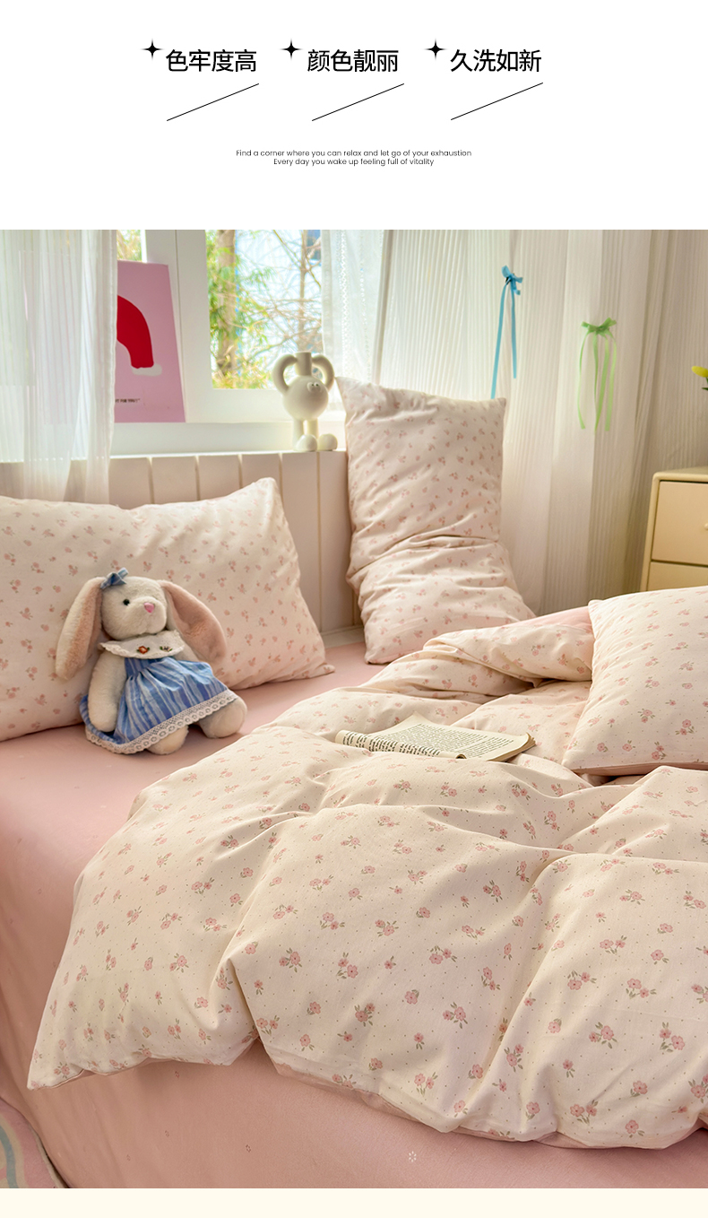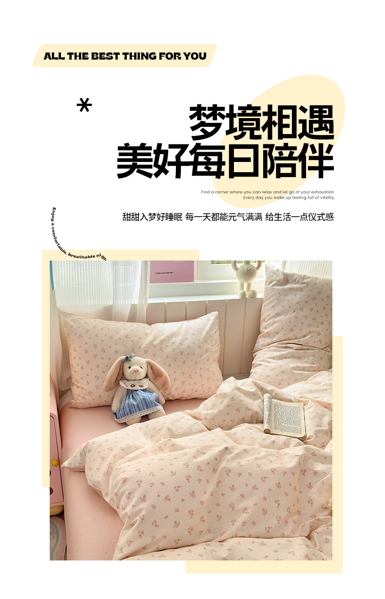 当前位置: 91家纺网 > 商品网购 > 床品套件 > 四件套 > 全棉普通四件套 > 清雅福 2026春夏新款INS小清新40支全棉13372四件套第一批 春之约定