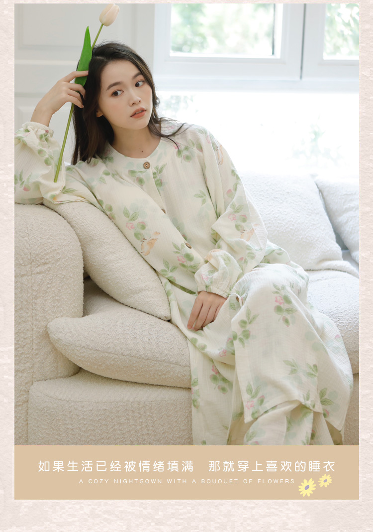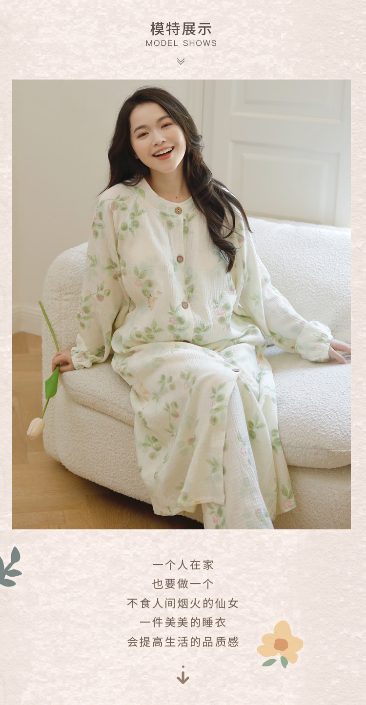 (总)洛兰沙家居馆 2026春秋季新款小清新针织全棉纯棉100%翻领开衫双长孕妇月子服睡衣女,翻领套装1,翻领套装2,翻领套装3,翻领套装4,翻领套装5,翻领套装6