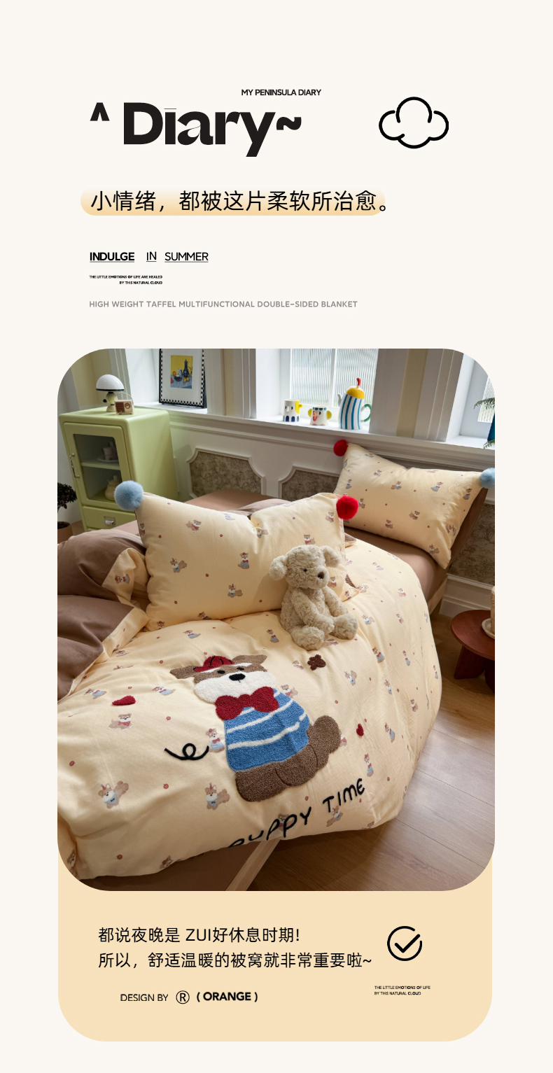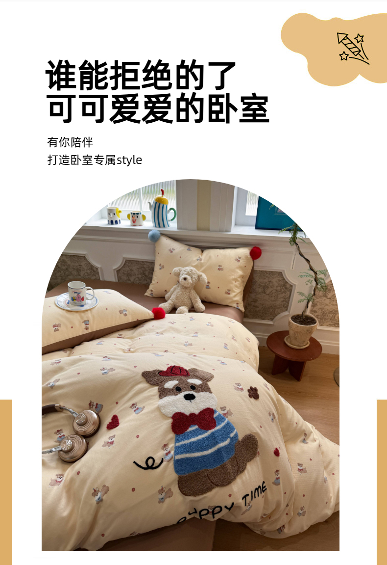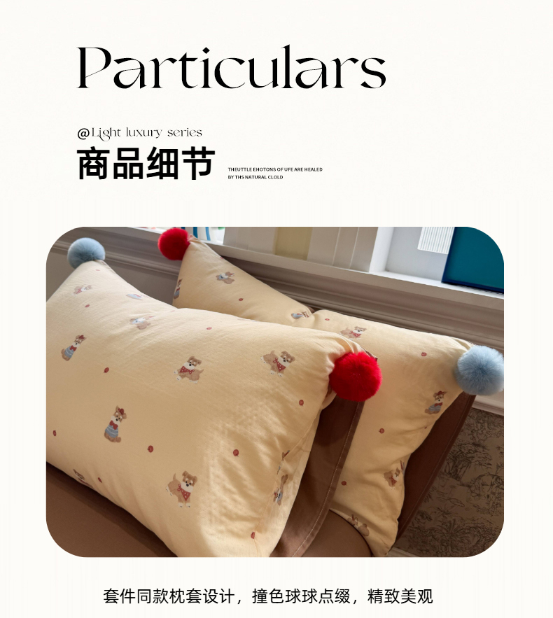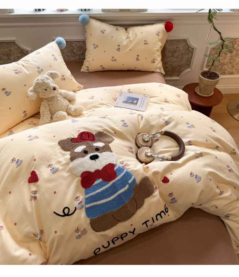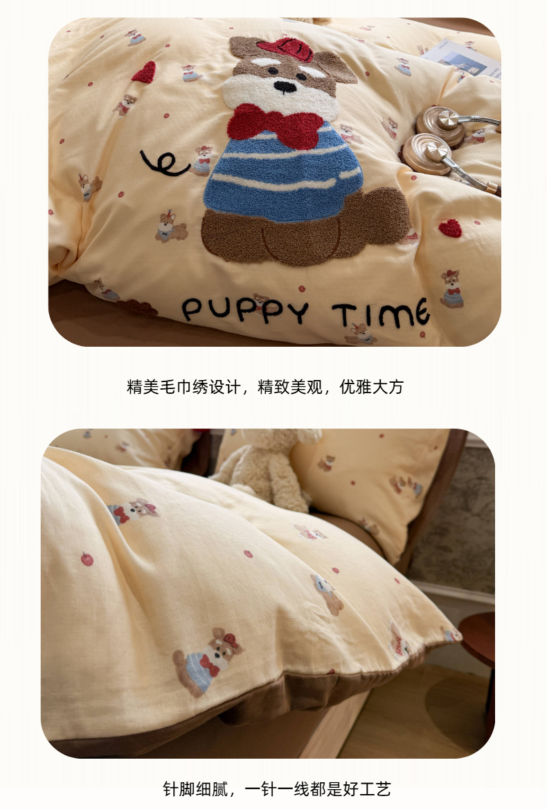 当前位置: 91家纺网 > 商品网购 > 床品套件 > 四件套 > 全棉普通四件套 > 呗旺鹿 2026新款全棉纯棉毛巾绣球球双层纱四件套 双层纱毛巾绣球球欢乐小狗