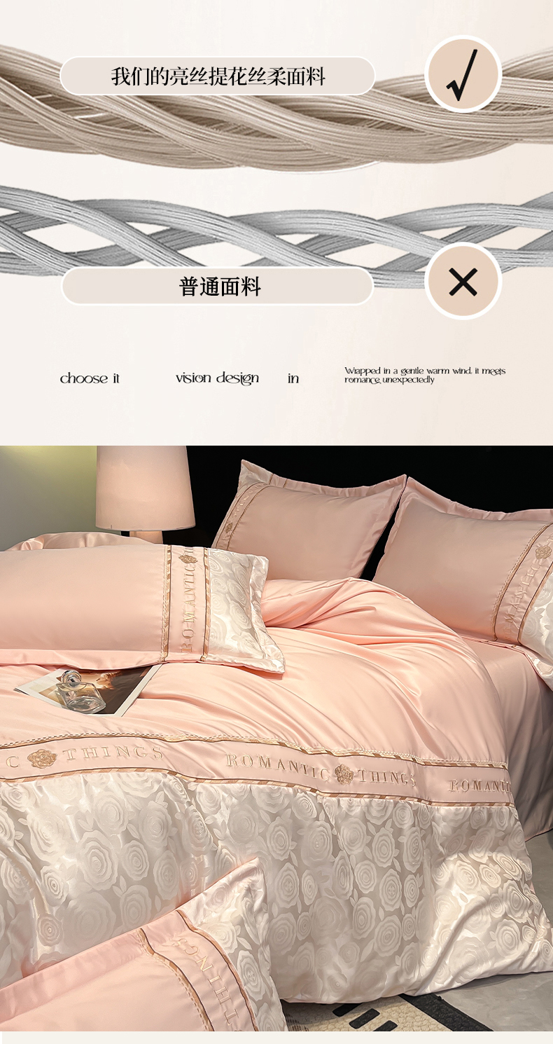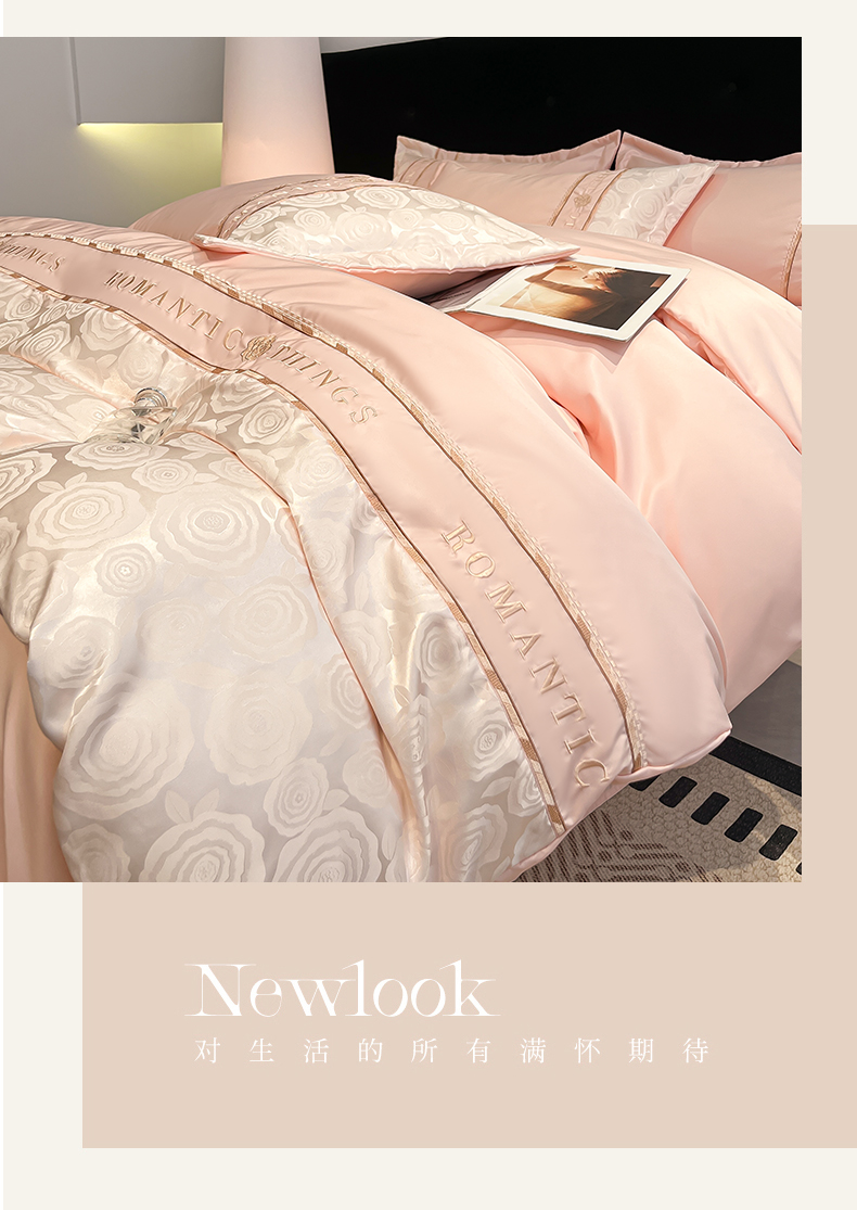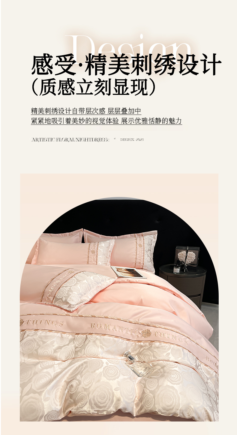当前位置: 91家纺网 > 商品网购 > 床品套件 > 四件套 > 其它四件套 > 金牛座家纺 2026春夏新款细斜纹贡缎亮丝提花重工刺绣四件套-爱恋 爱恋-浅粉