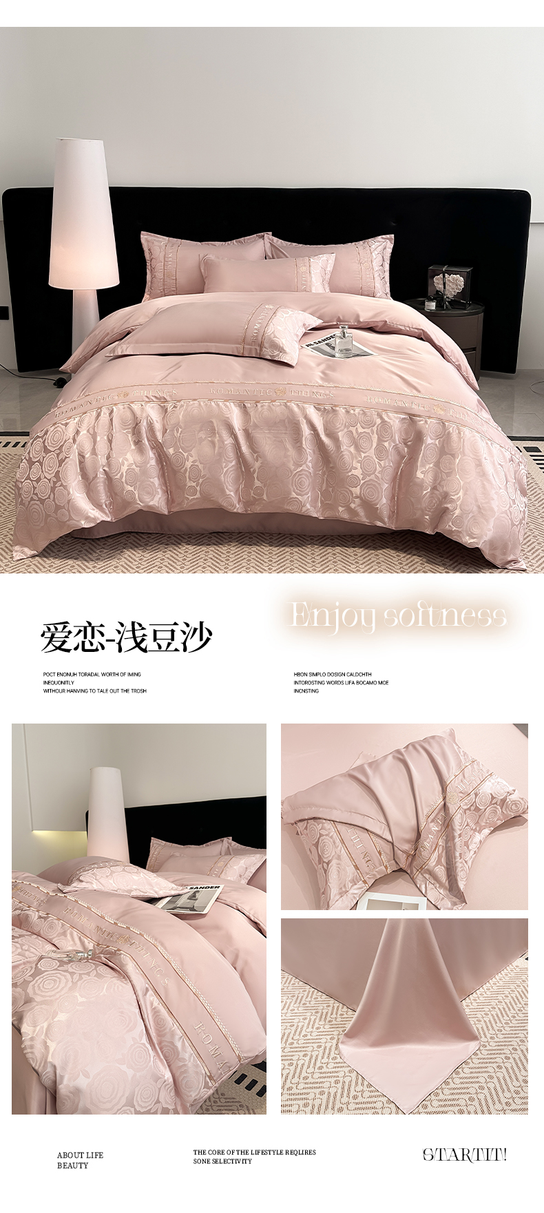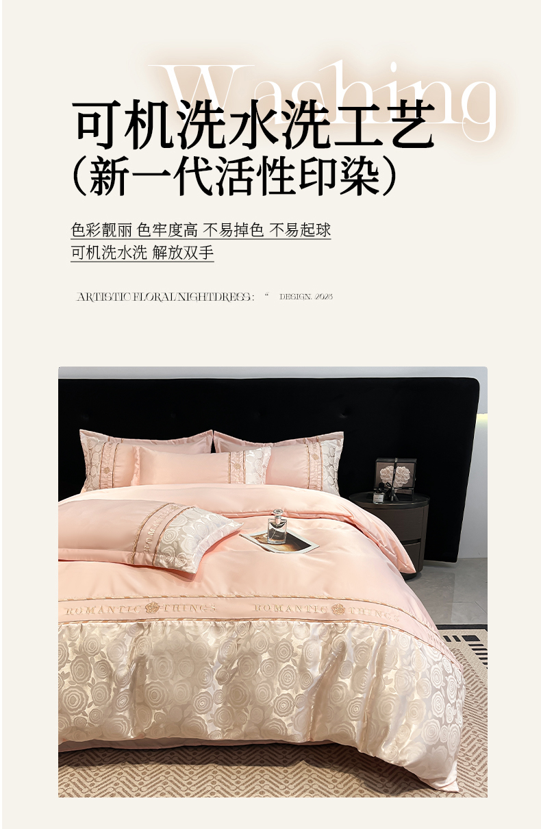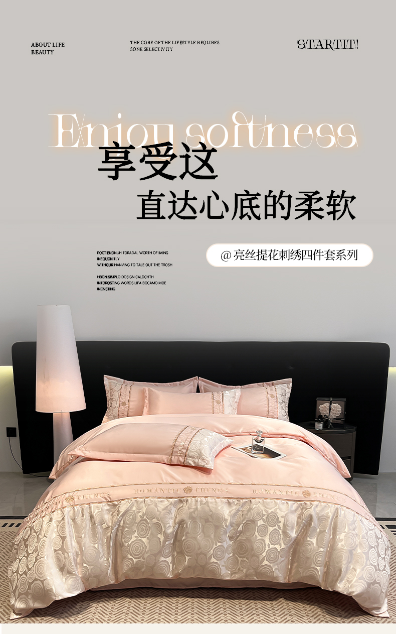 当前位置: 91家纺网 > 商品网购 > 床品套件 > 四件套 > 其它四件套 > 金牛座家纺 2026春夏新款细斜纹贡缎亮丝提花重工刺绣四件套-爱恋 爱恋-浅粉