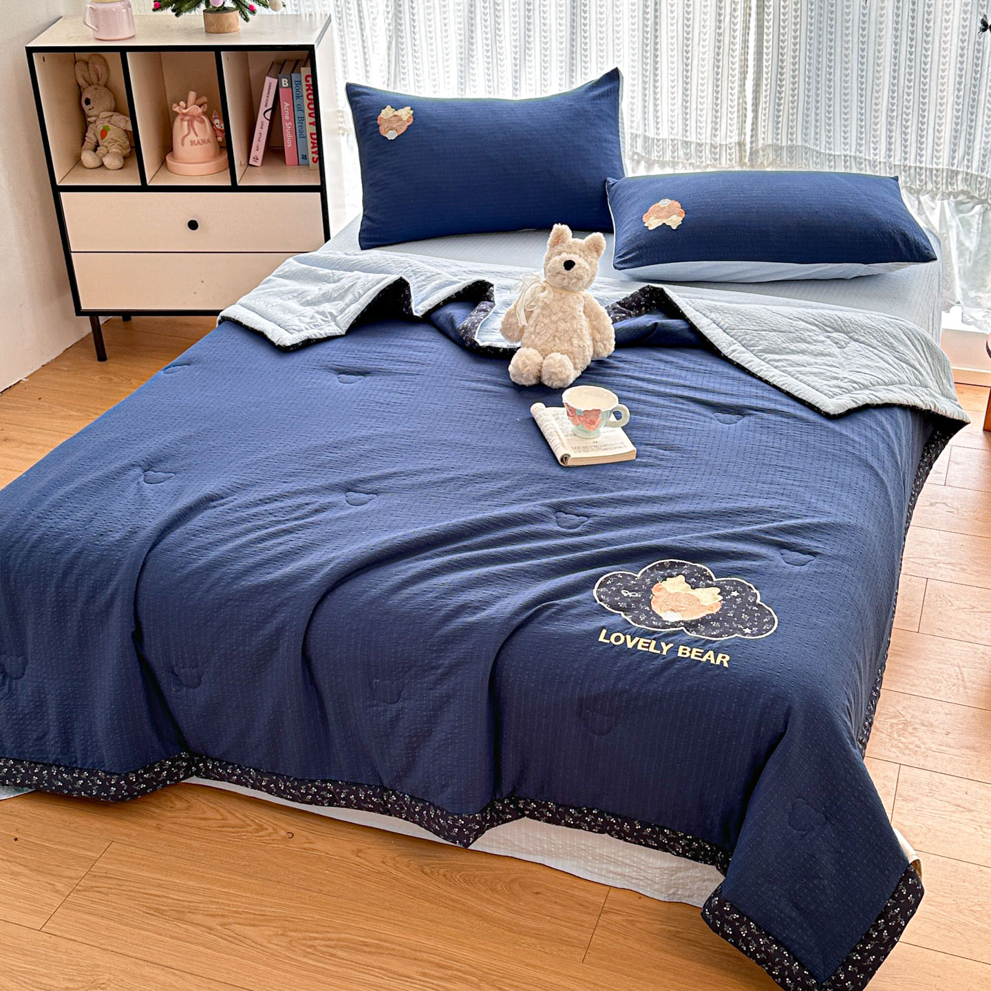 (总)玉海棠家纺 2026新款泡芙纱夏被夏凉被空调被贴布绣四件套-安妮公主系列,安妮公主-藏蓝,安妮公主-雅致粉,安妮公主-格调咖,安妮公主-蓝粉,安妮公主-青草绿,安妮公主-优雅紫