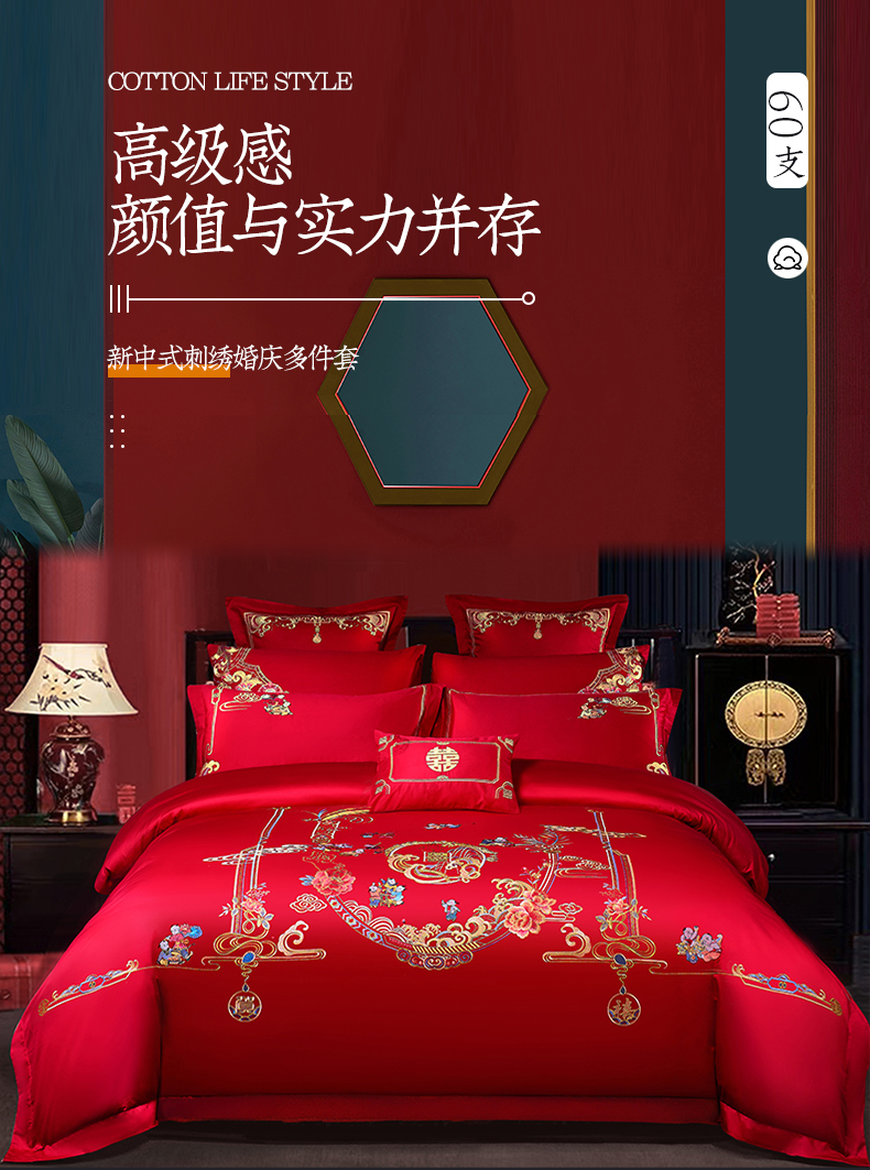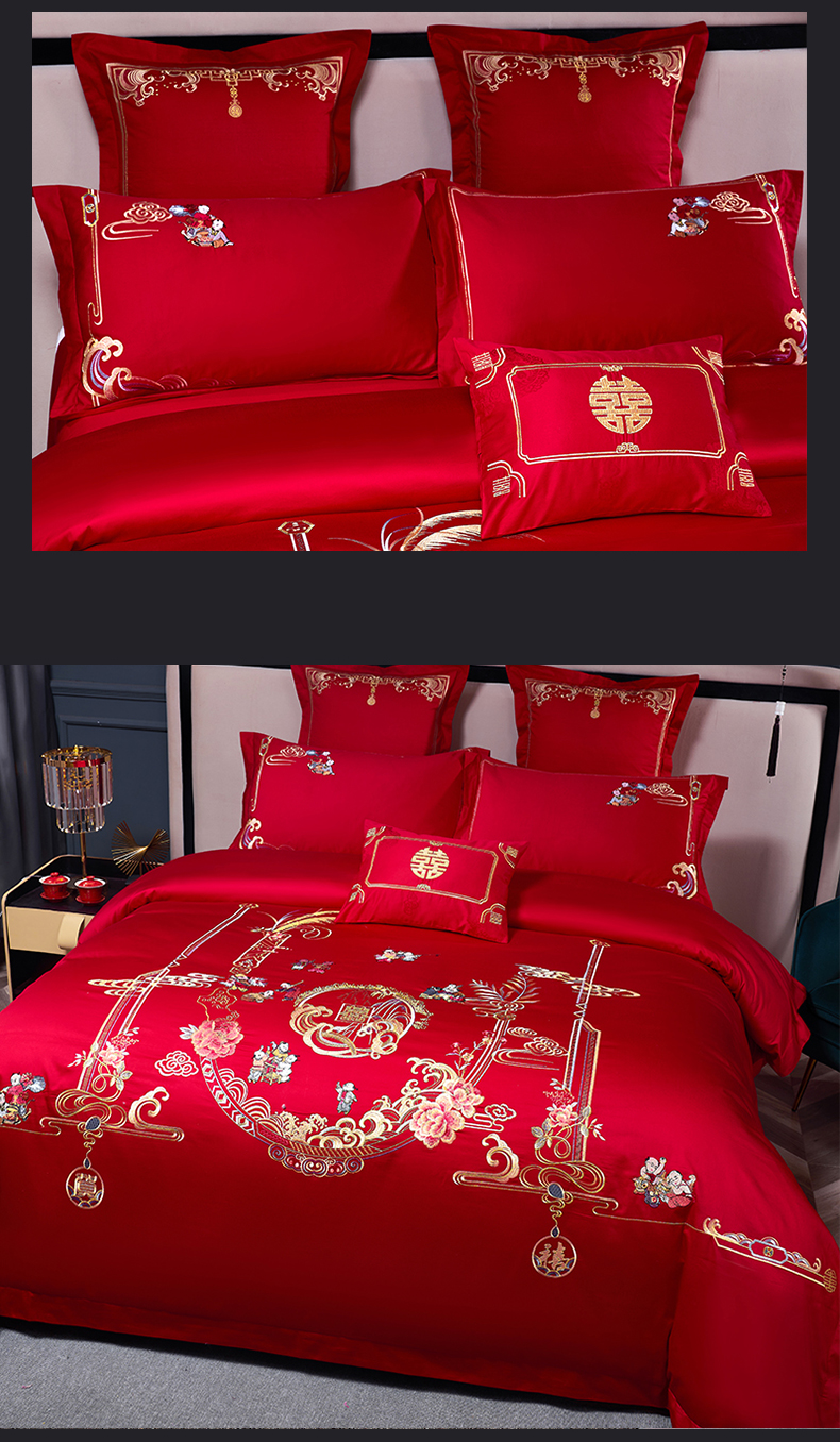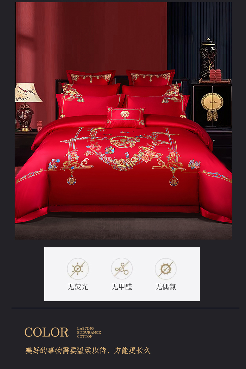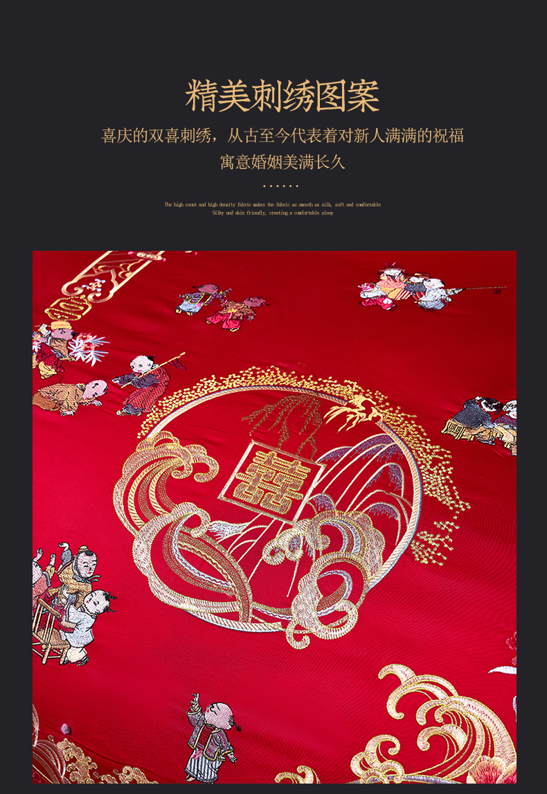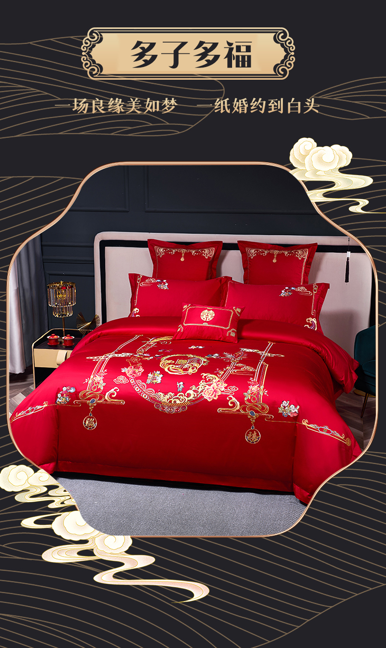 当前位置: 91家纺网 > 商品网购 > 床品套件 > 四件套 > 婚庆四件套 > 博之洋婚庆 2026新款全棉纯棉长绒棉刺绣婚庆四件套多件套 多子多福