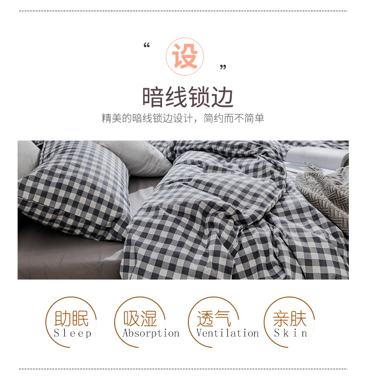 (总)艾沁2025新品全棉简约黑白四件套-白日梦黑, 白日梦-黑