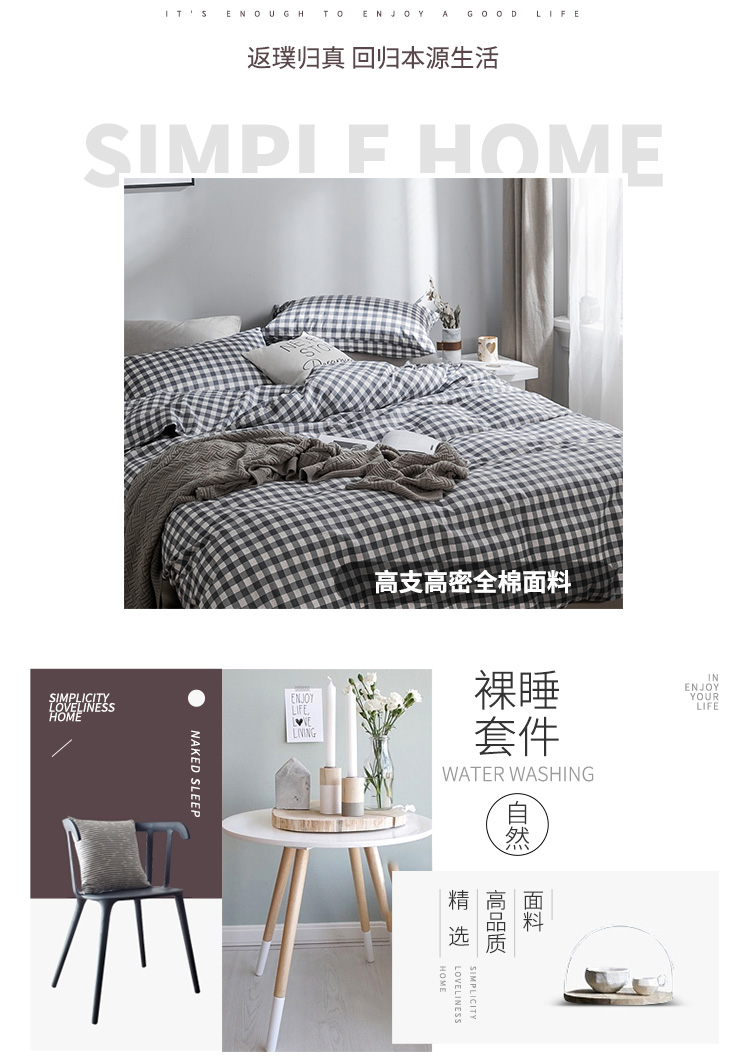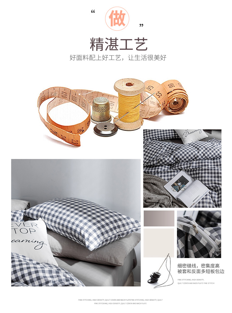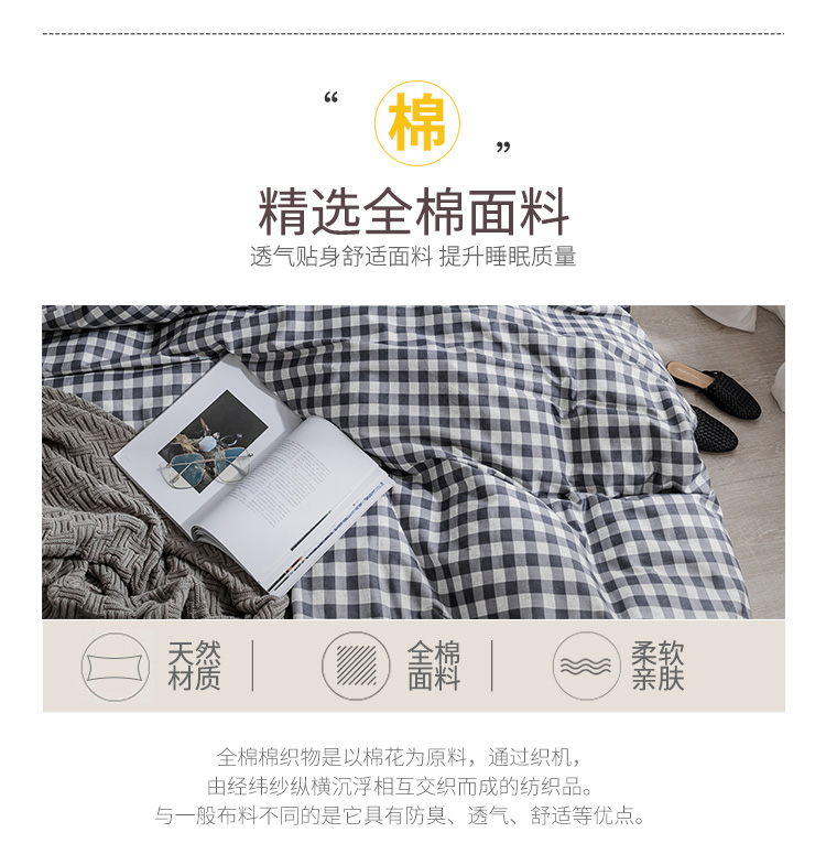 商品名称:艾沁家纺 北欧简约格子条纹系列全棉四件套床单款棉格