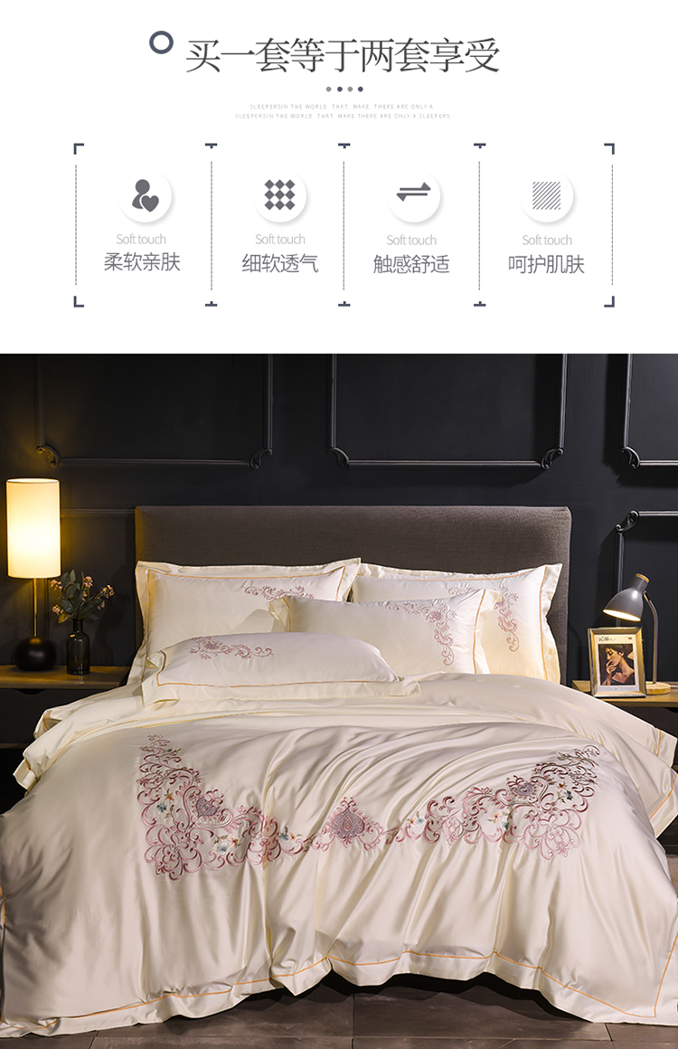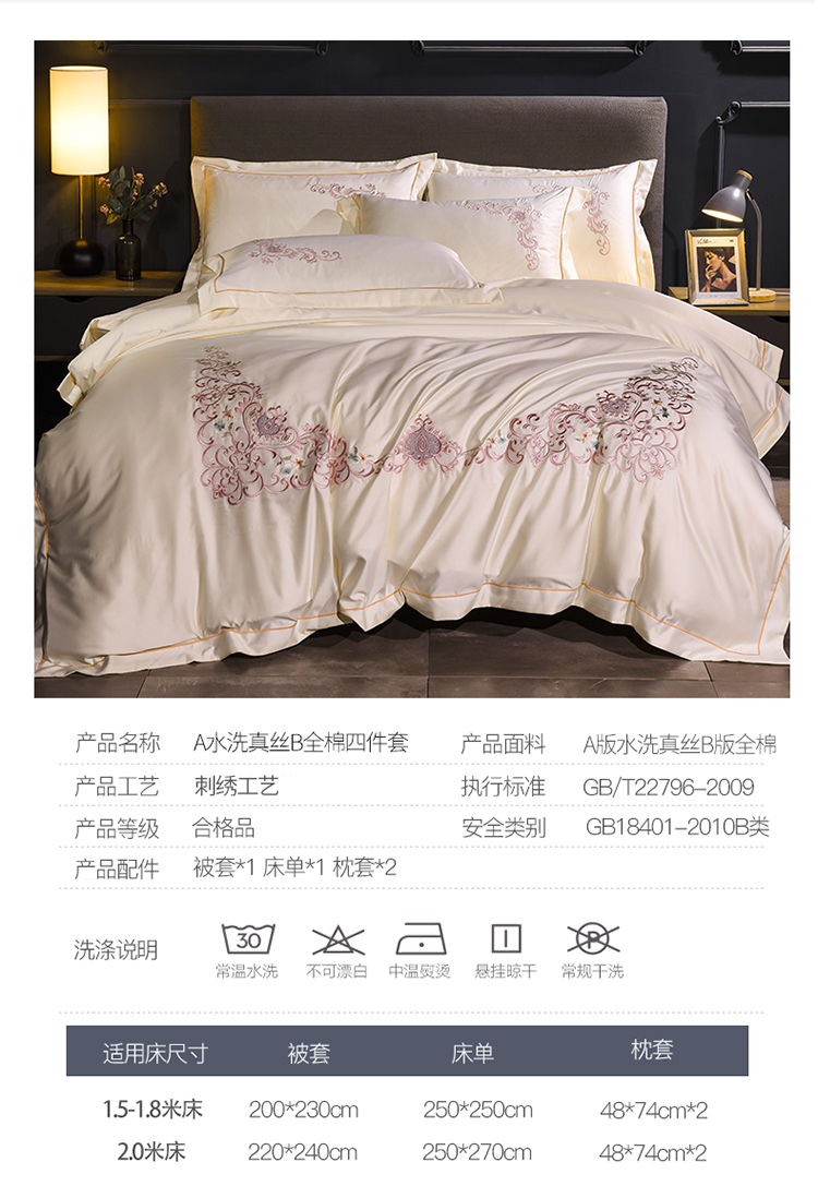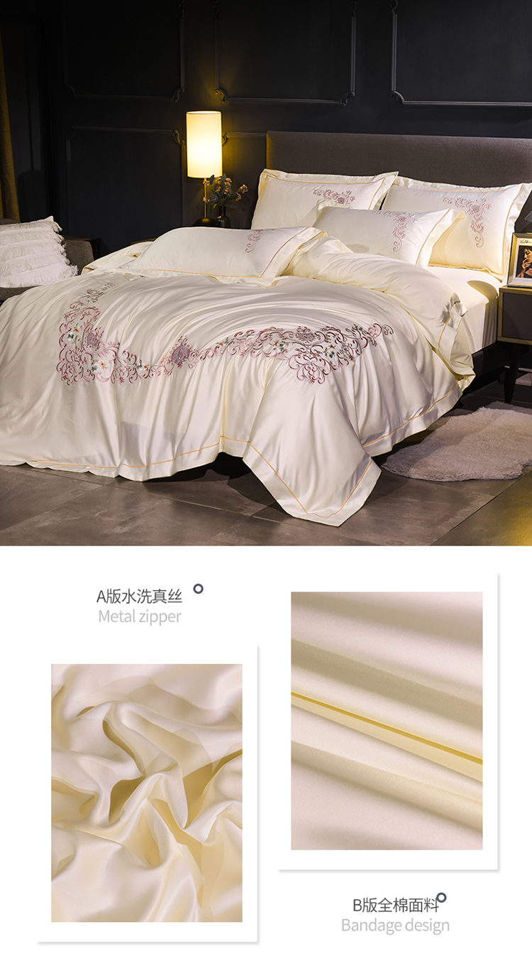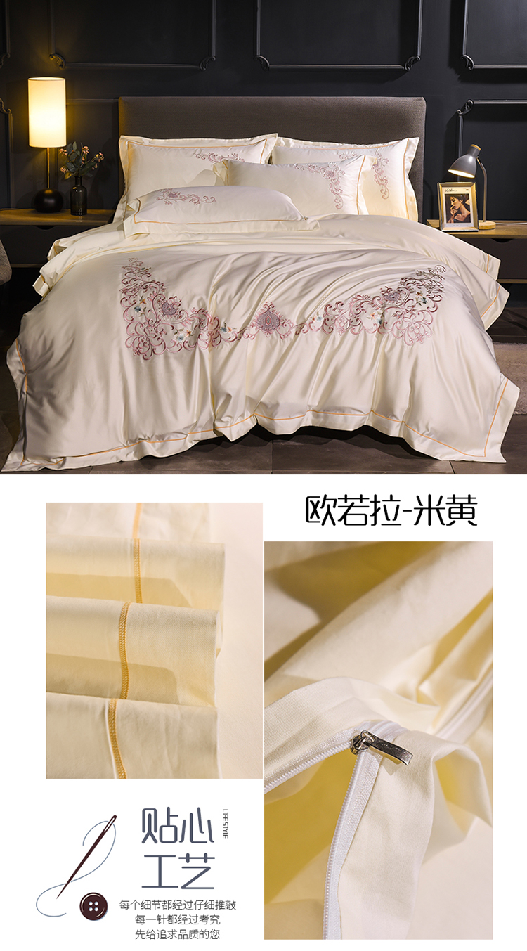 商品名称:安妮 2020新款水洗真丝欧若拉刺绣四件套 欧若拉-米黄