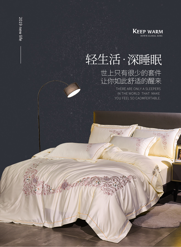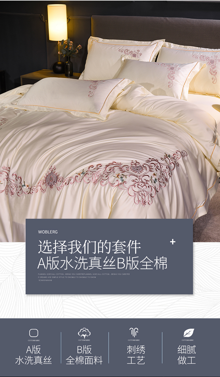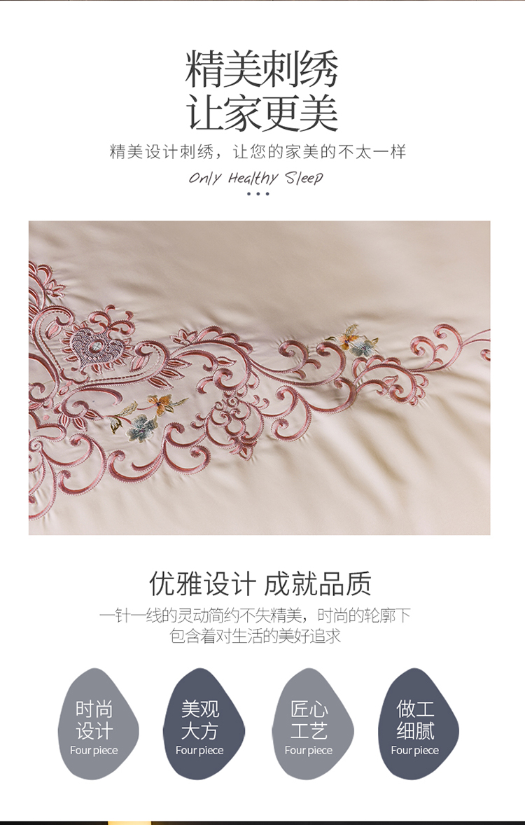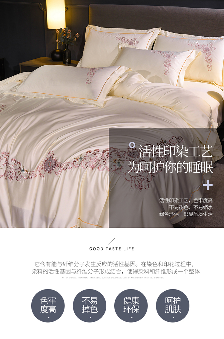商品名称:安妮 2020新款水洗真丝欧若拉刺绣四件套 欧若拉-米黄