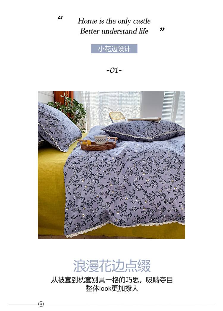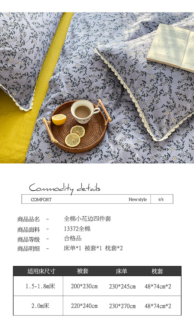 商品名称:澳萝拉 2021新款全棉小花边四件套 满月