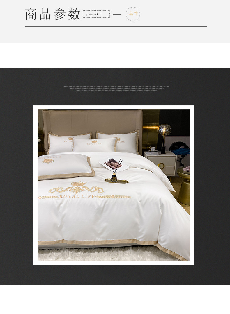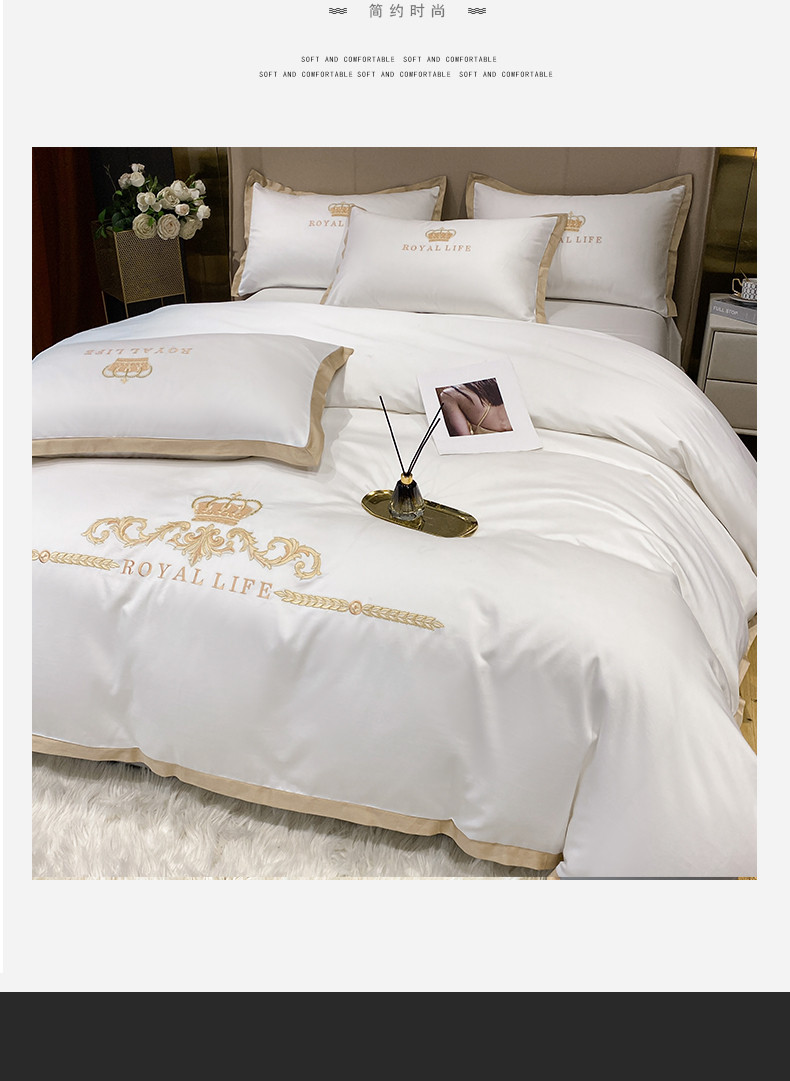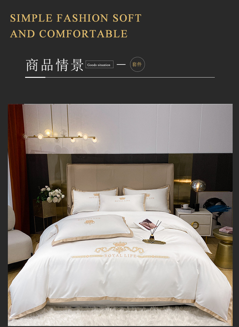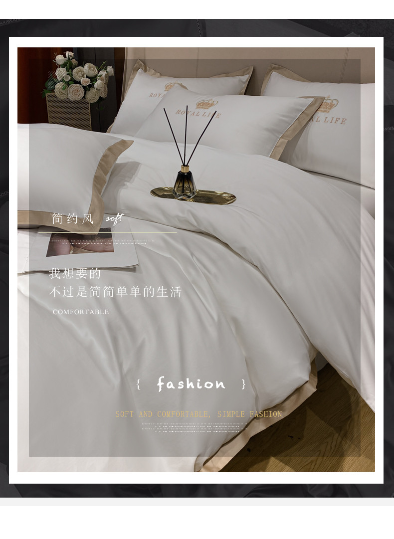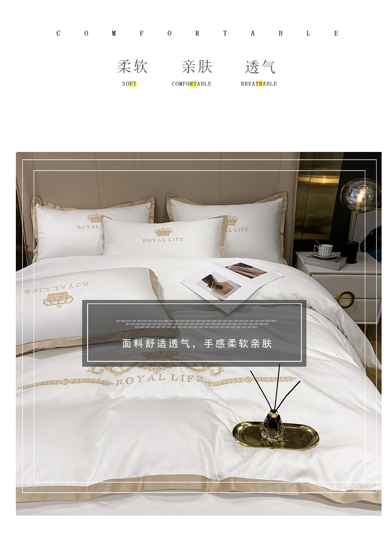 商品名称:安妮家居 2021新款皇冠120s长绒棉四件套 贵族白