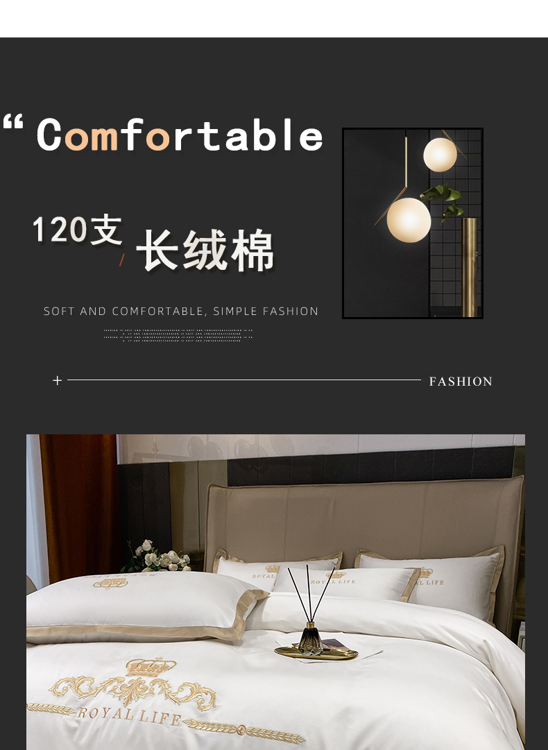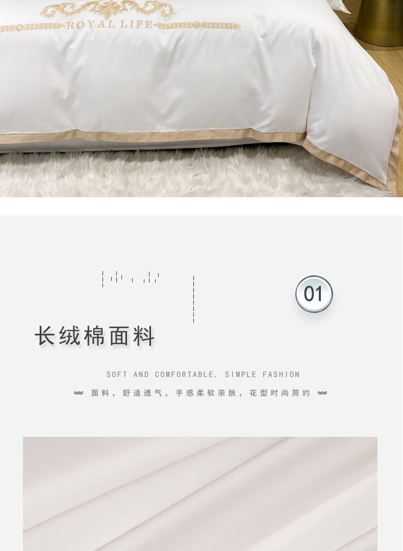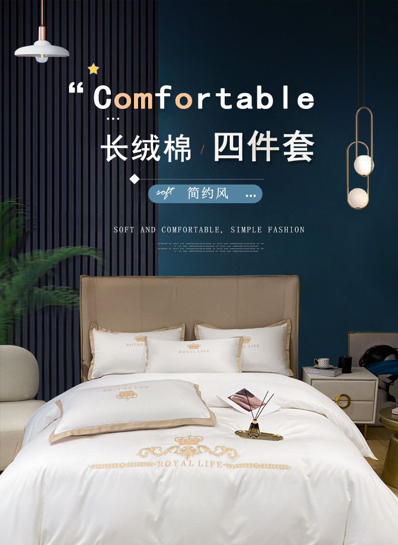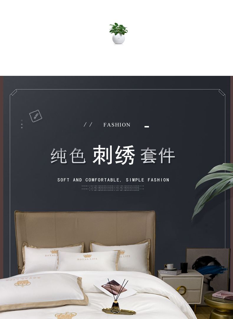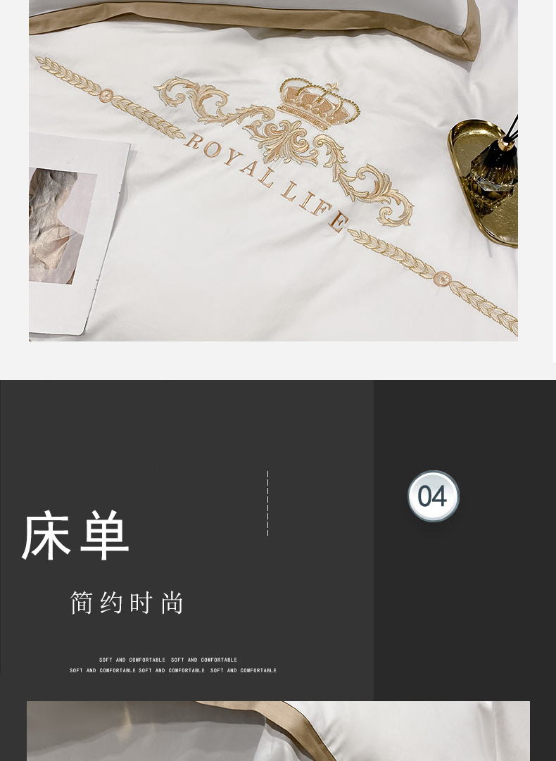 商品名称:安妮家居 2021新款皇冠120s长绒棉四件套 贵族白