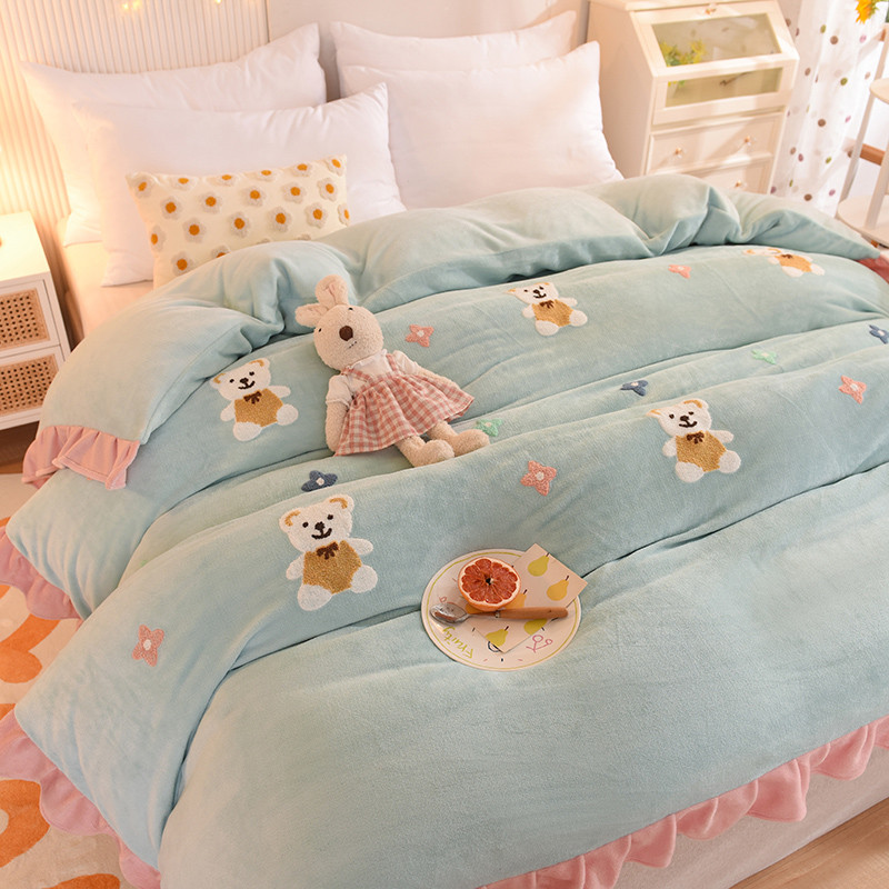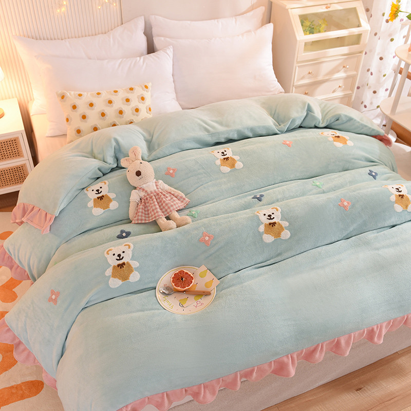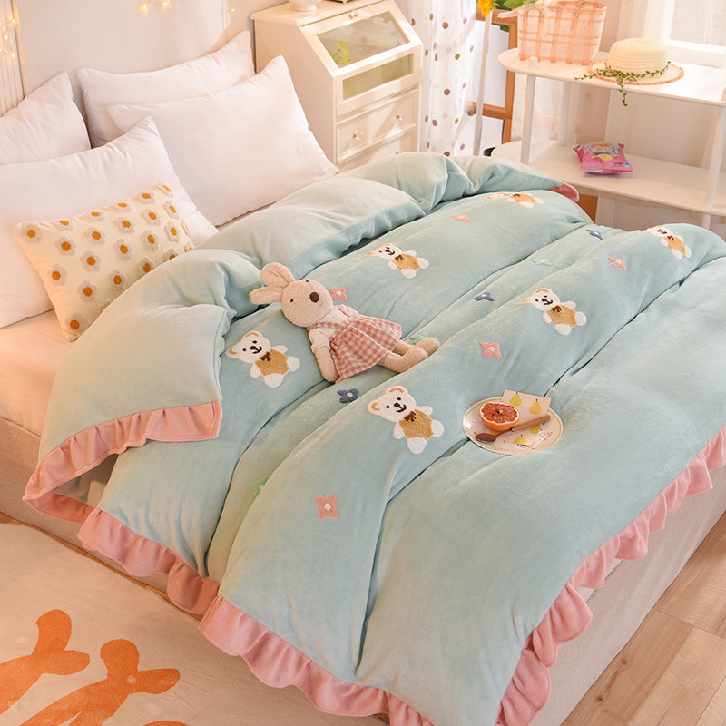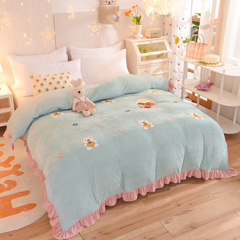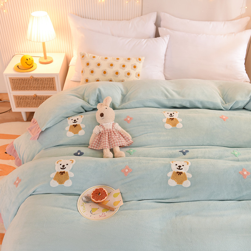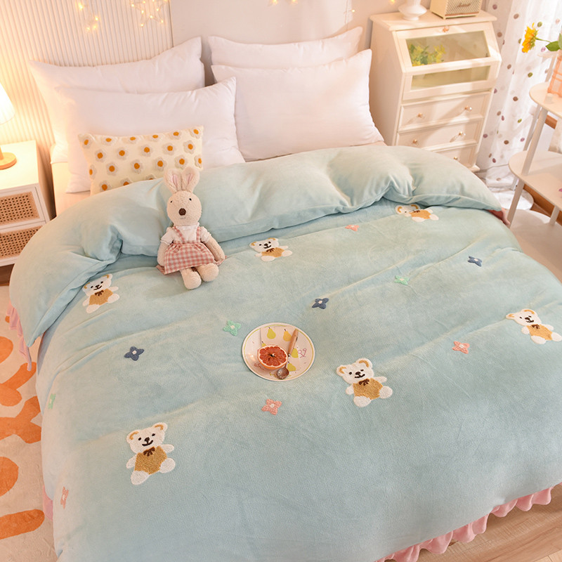 • 91家纺网 家纺一手货源 找家纺 甜之梦 2025新款毛巾绣牛奶绒单被套 小熊宝可梦嫩绿