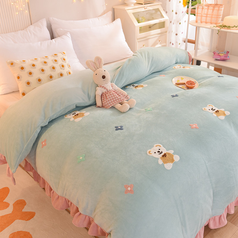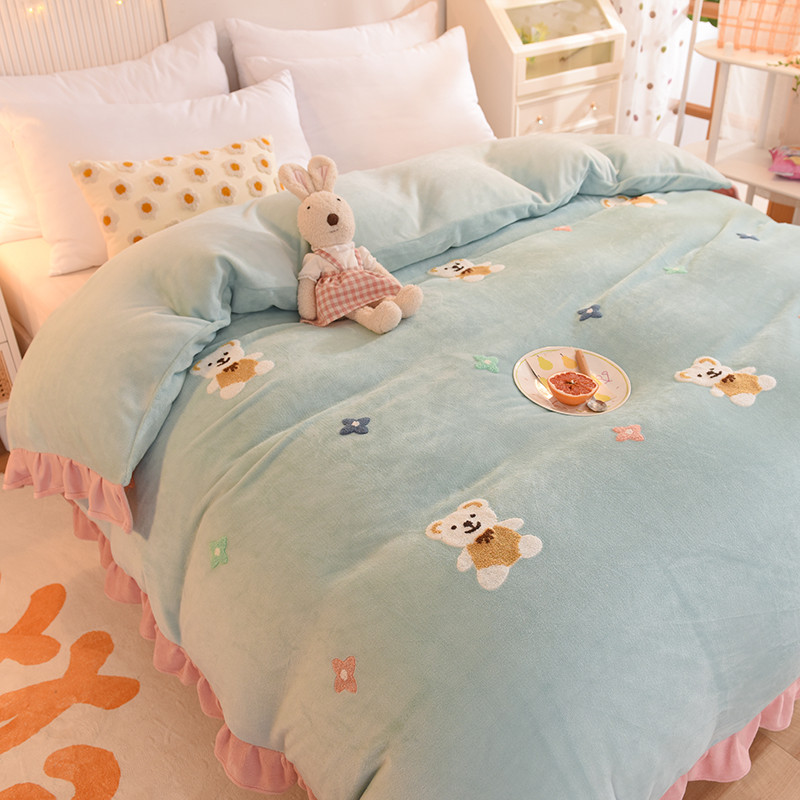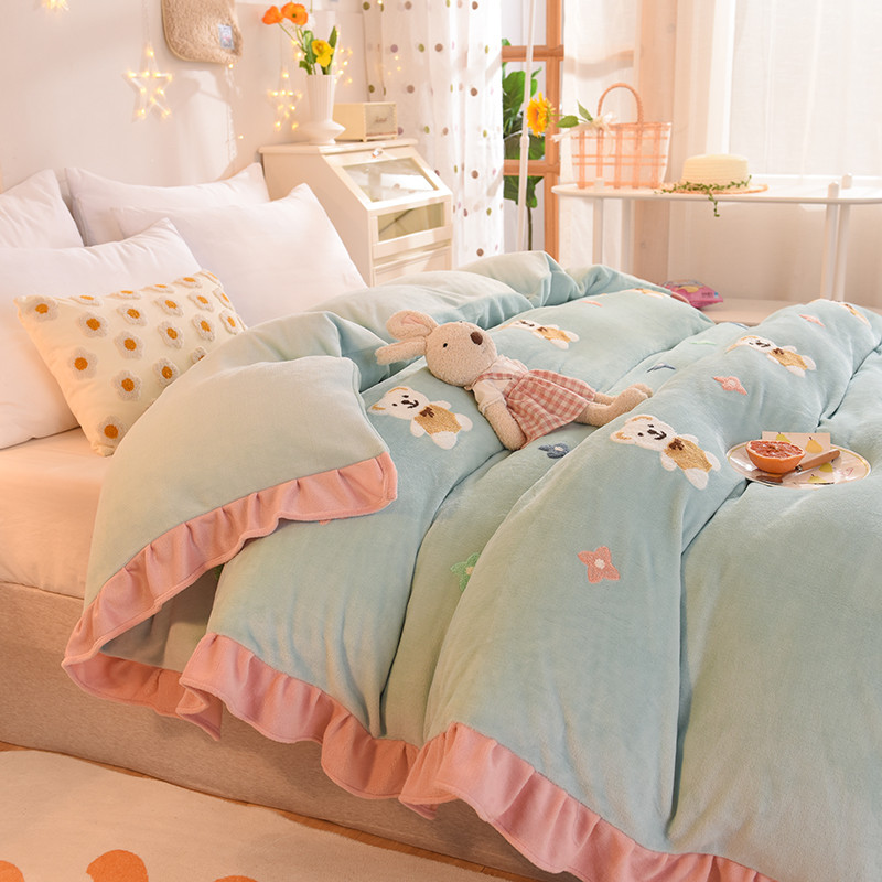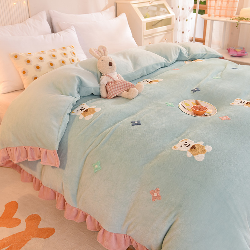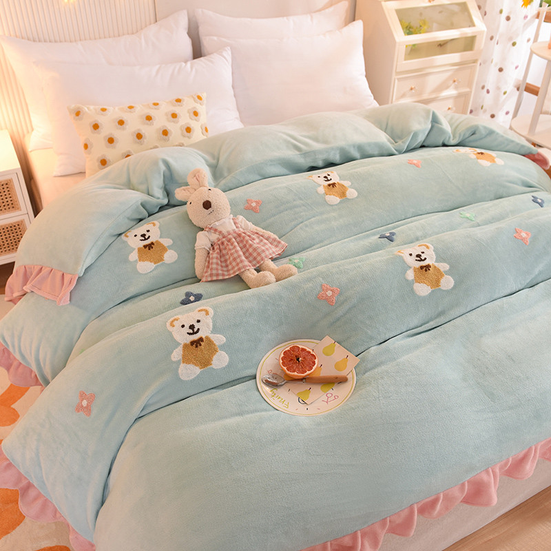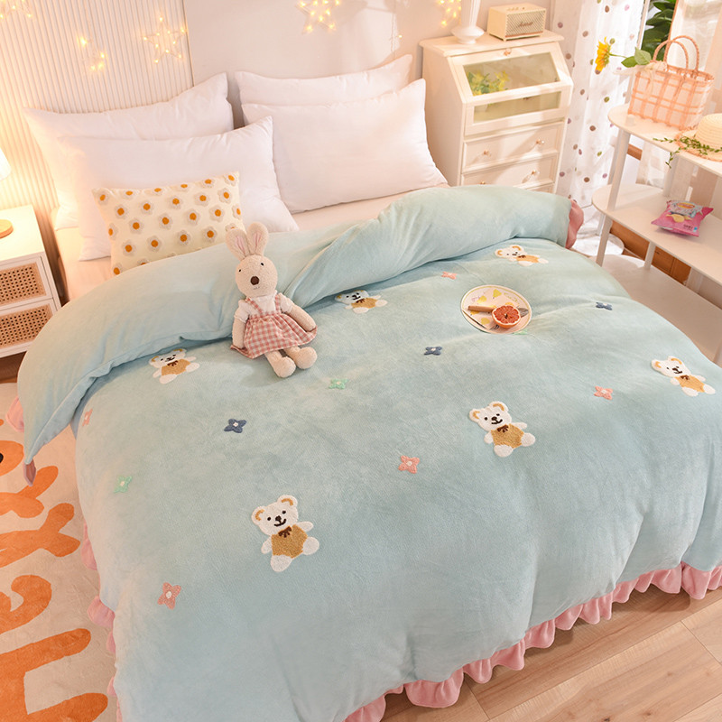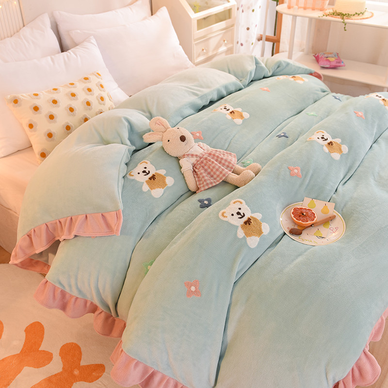 • 91家纺网 家纺一手货源 找家纺 甜之梦 2025新款毛巾绣牛奶绒单被套 小熊宝可梦嫩绿