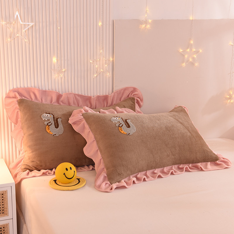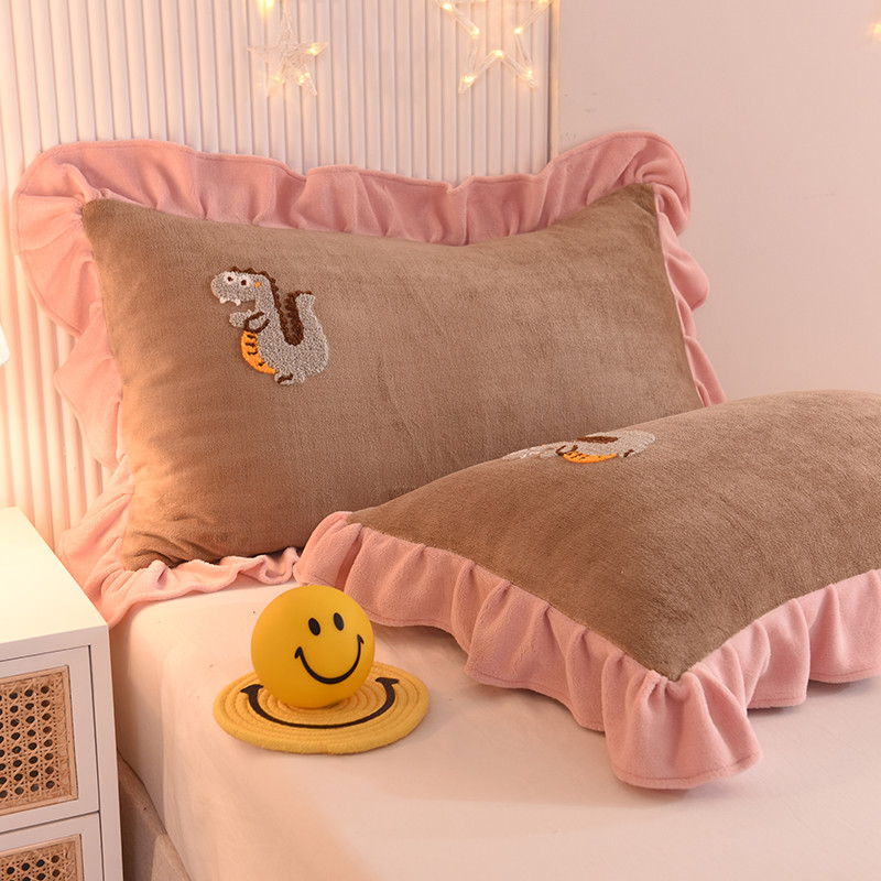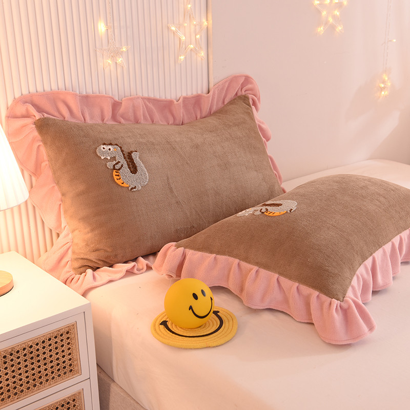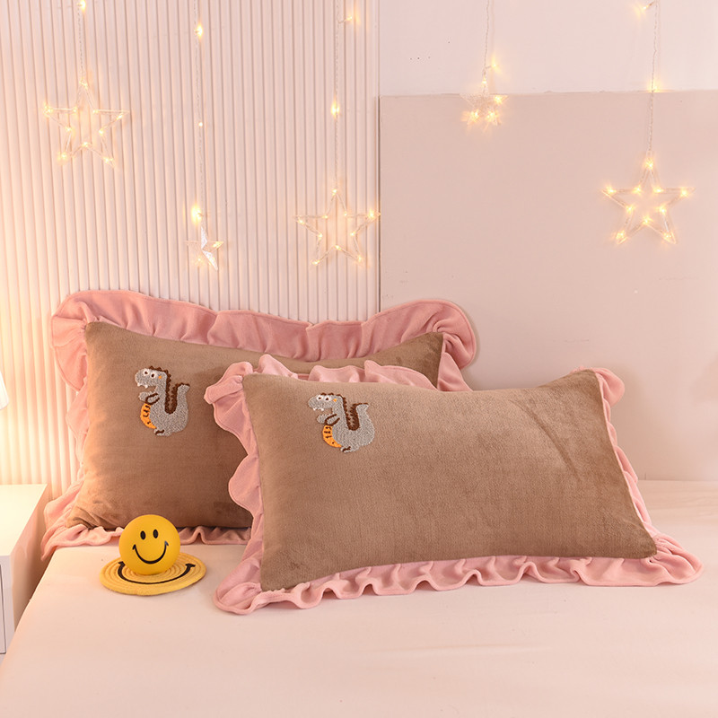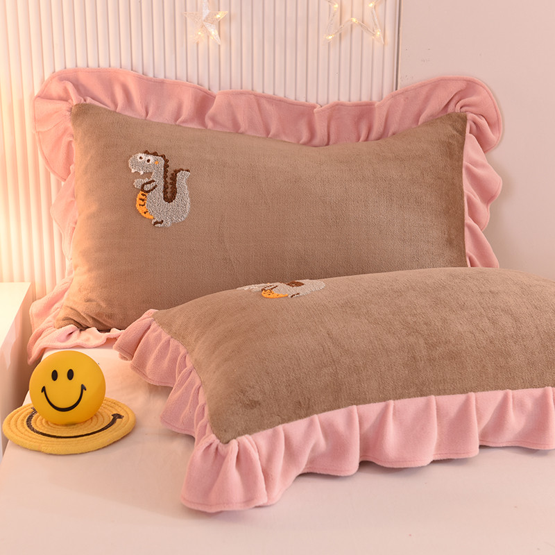 甜之梦 2025新款毛巾绣牛奶绒单枕套 乖乖龙奶茶咖