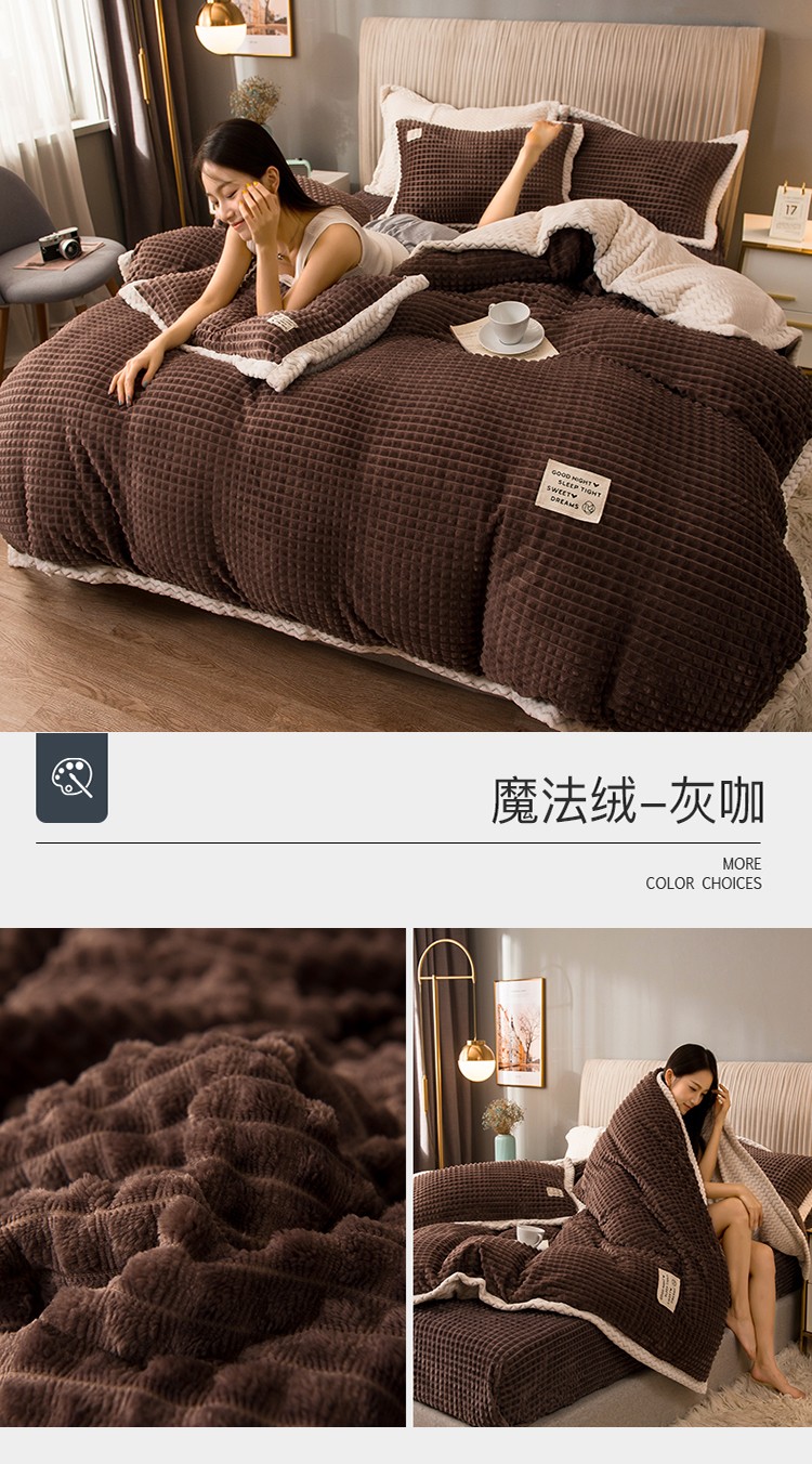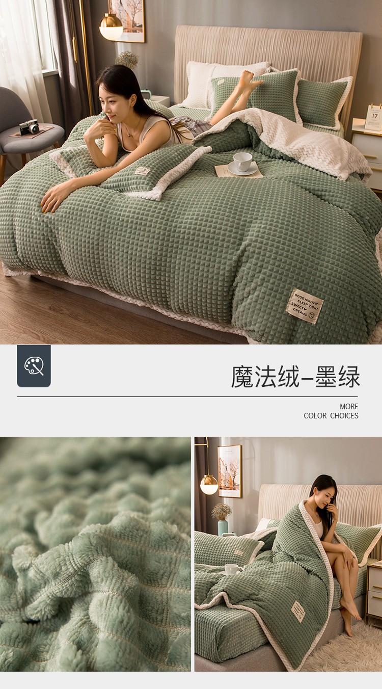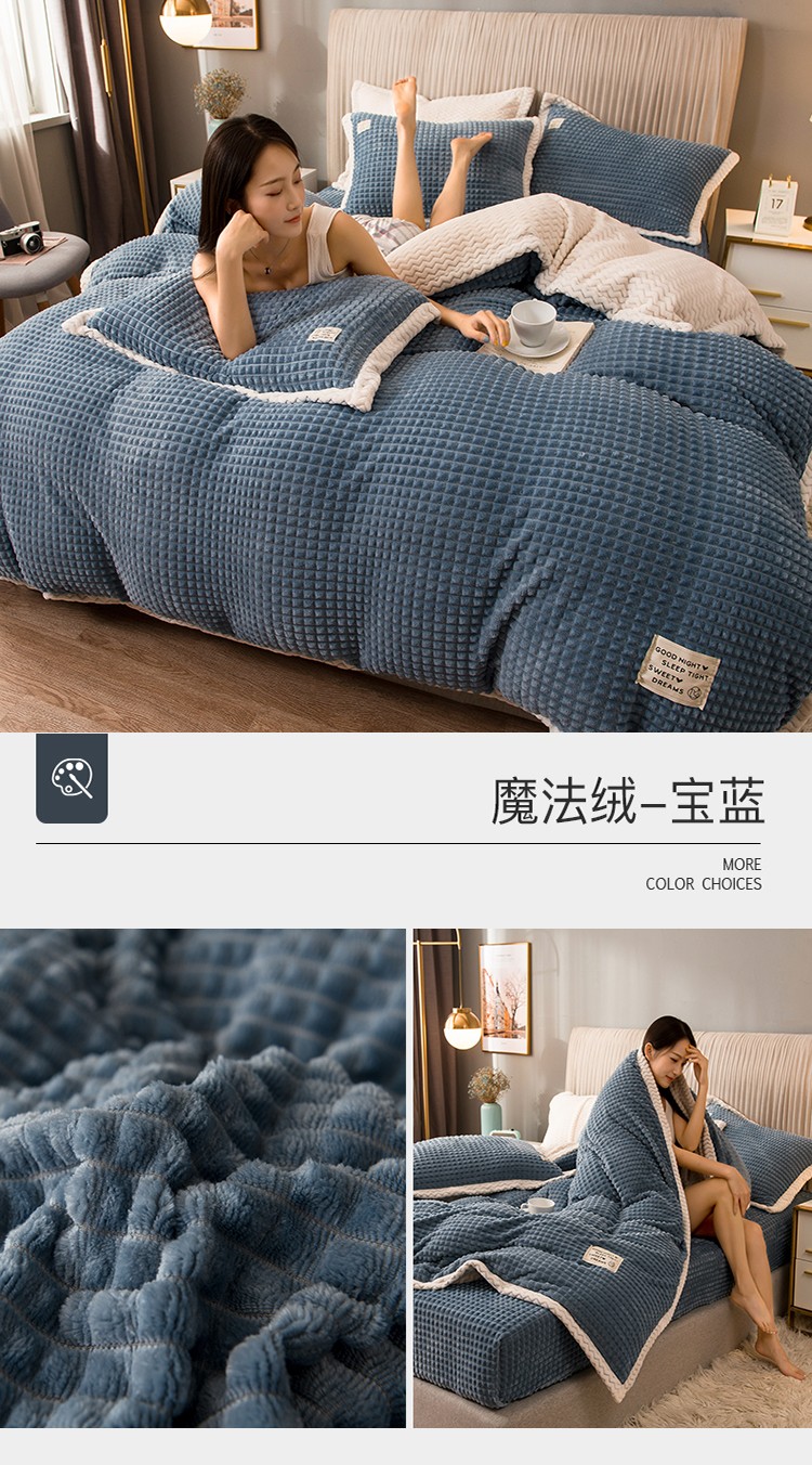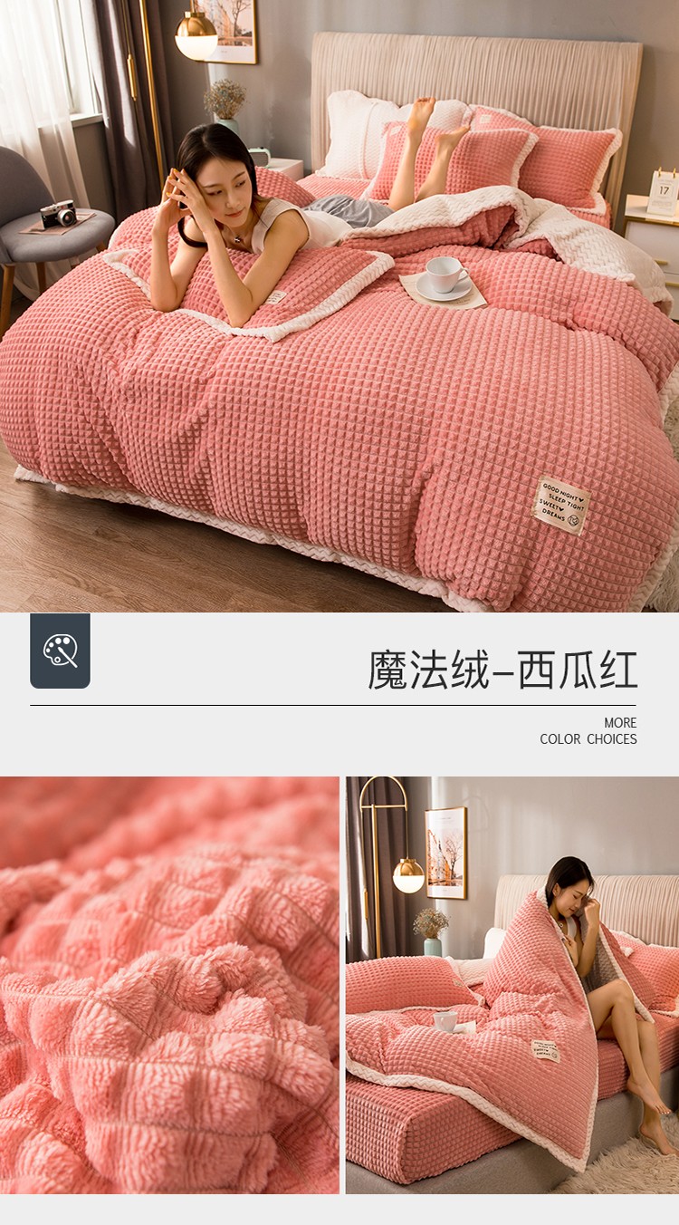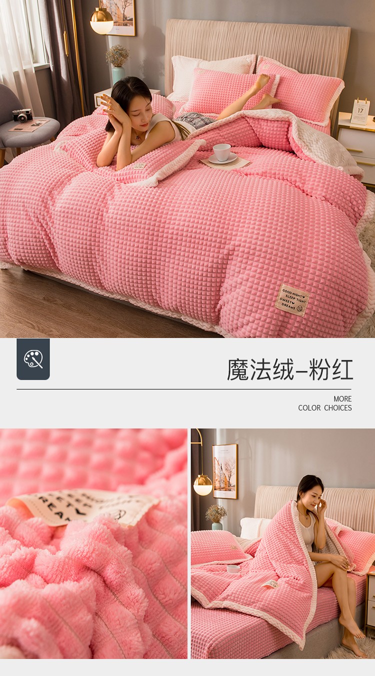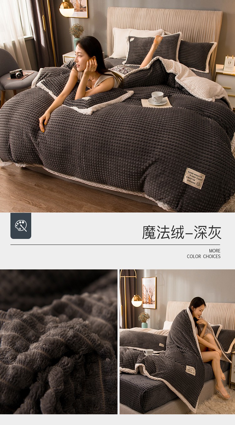 商品名称:(总)印季家纺 2024新款牛奶绒纯色包边四件套