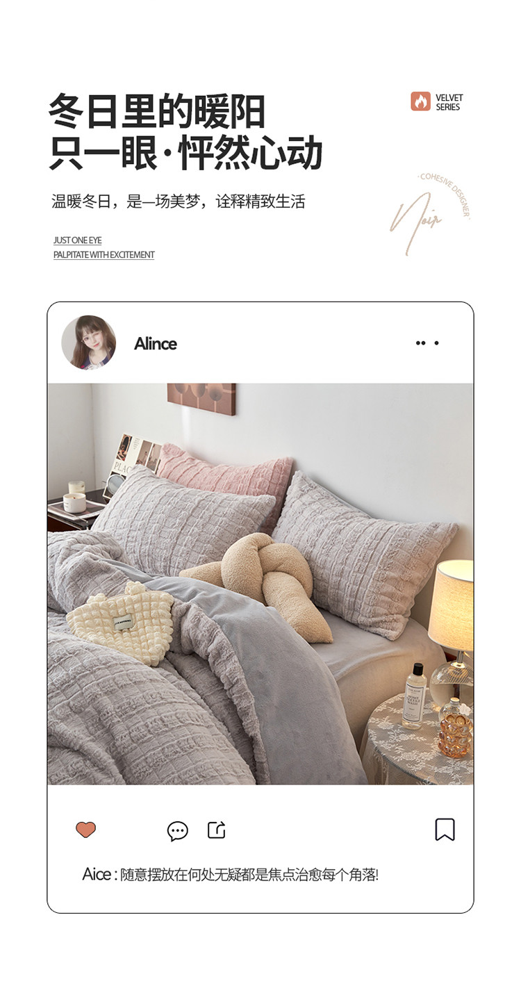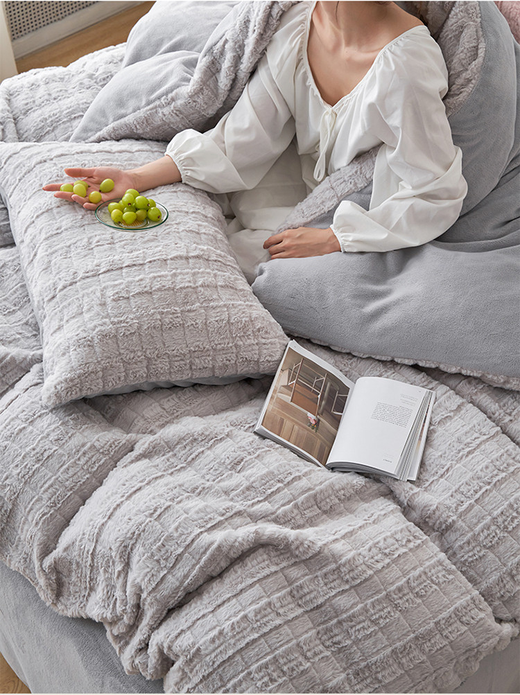 商品名称:榻尚家居 2023新款加厚獭兔绒牛奶绒四件套 浅灰