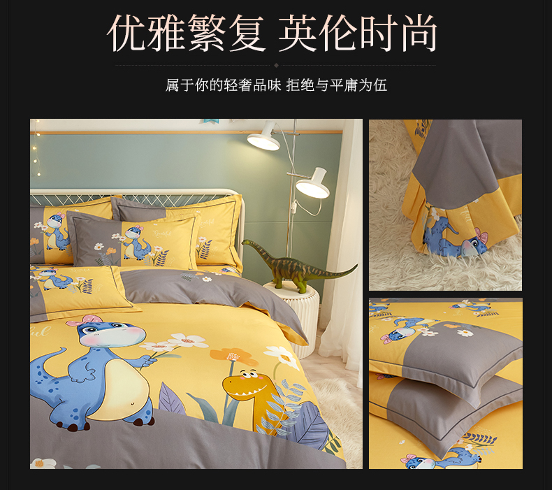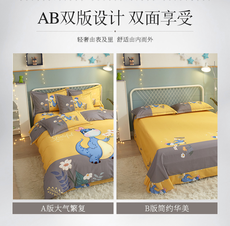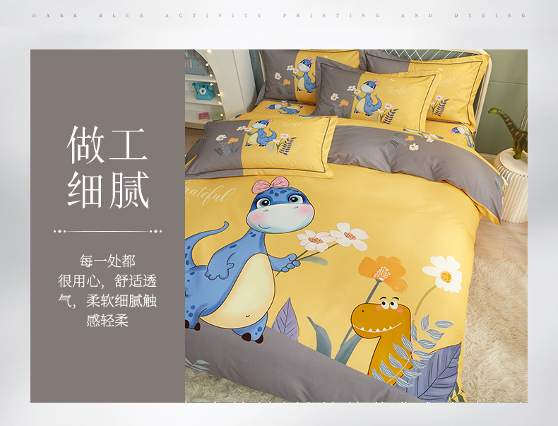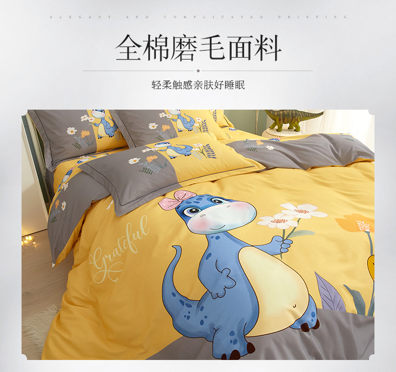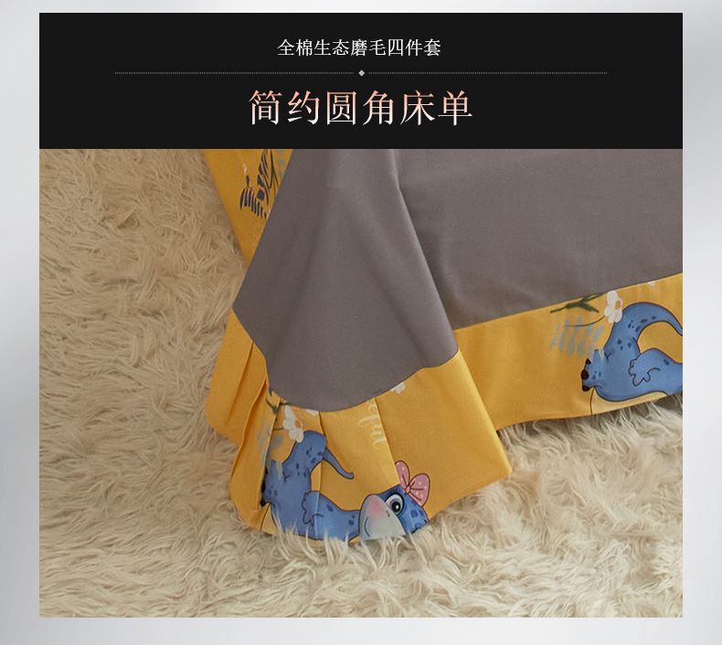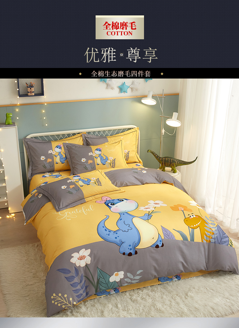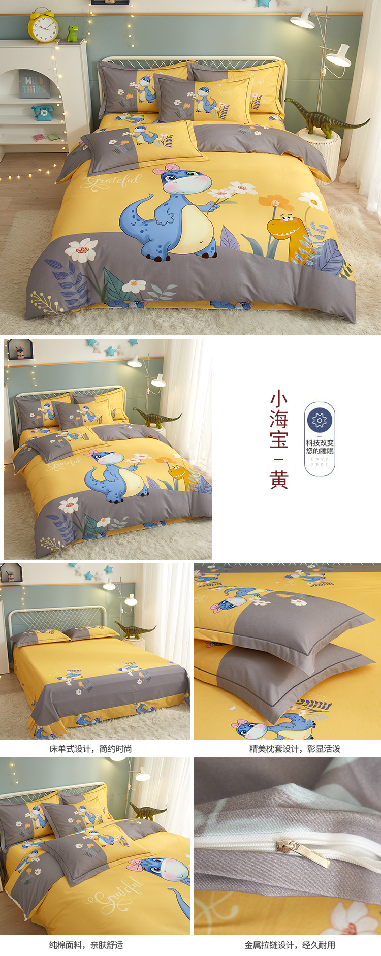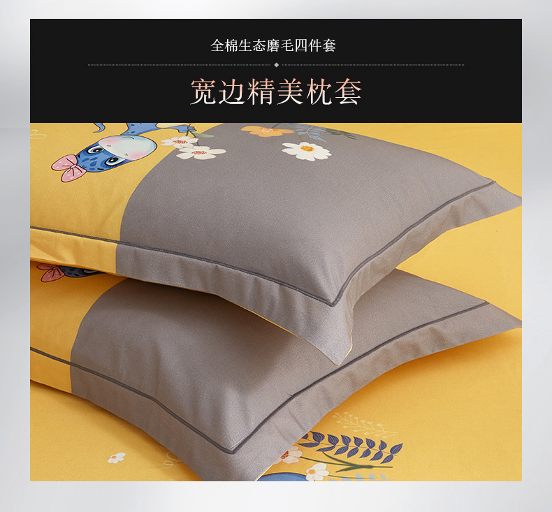 当前位置: 91家纺网 > 商品网购 > 床品套件 > 四件套 > 全棉普通四件套 > 沐白家居 2023全棉大版生态磨毛四件套 小海宝-黄