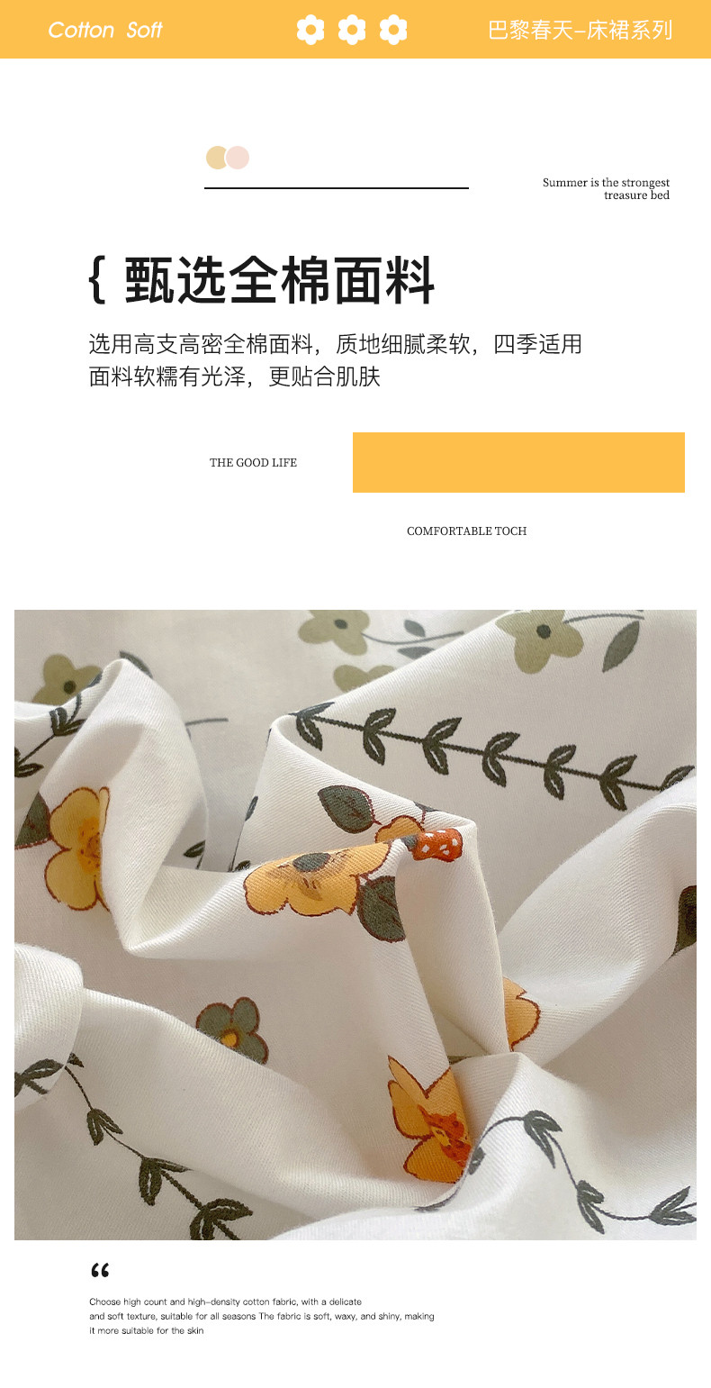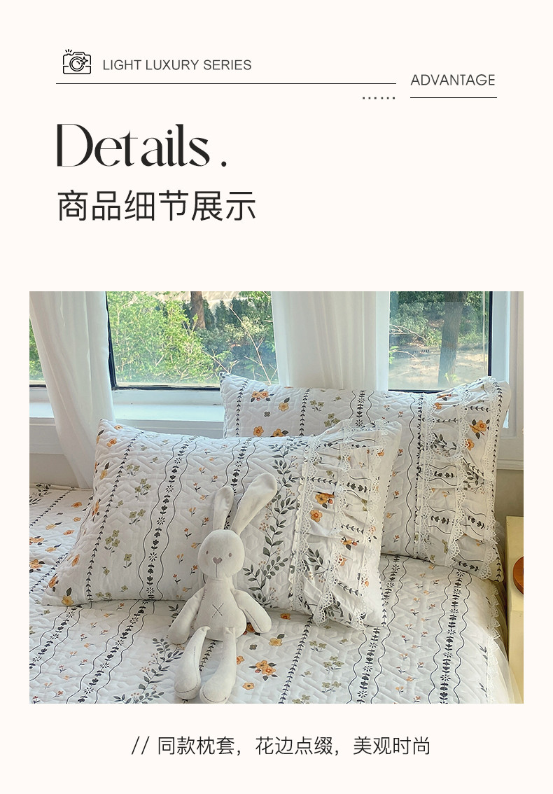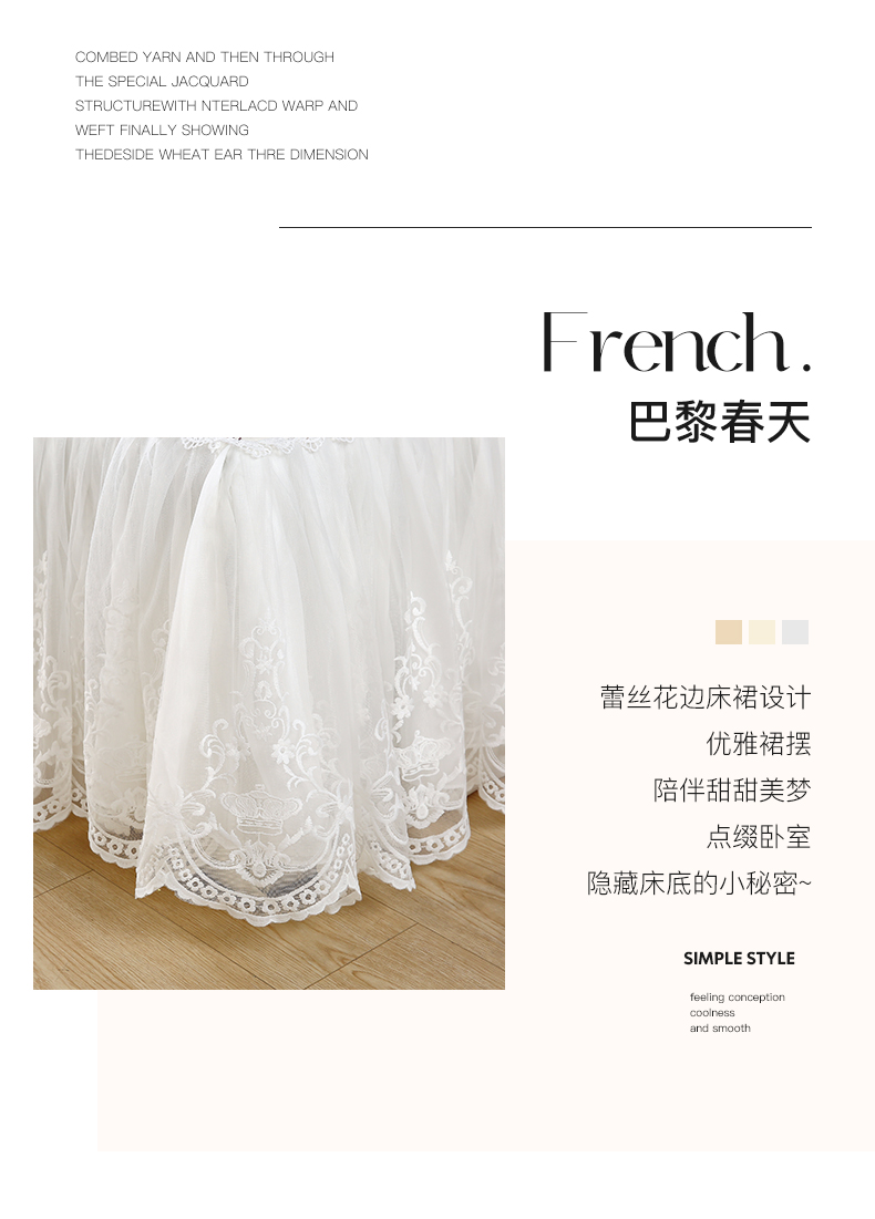 • 91家纺网 家纺一手货源 找家纺 罗艺轩 2024新款全棉蕾丝夹棉床裙巴黎春天系列三件套 芙拉花园