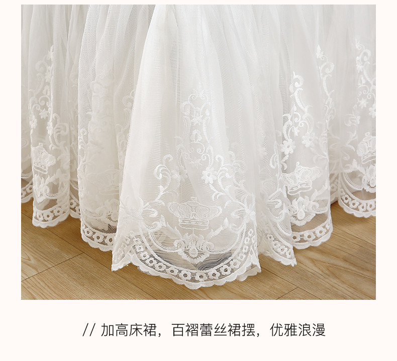 当前位置: 91家纺网 > 商品网购 > 床上用品 > 床裙 > 罗艺轩 2024新款全棉蕾丝夹棉床裙巴黎春天系列三件套 芙拉花园