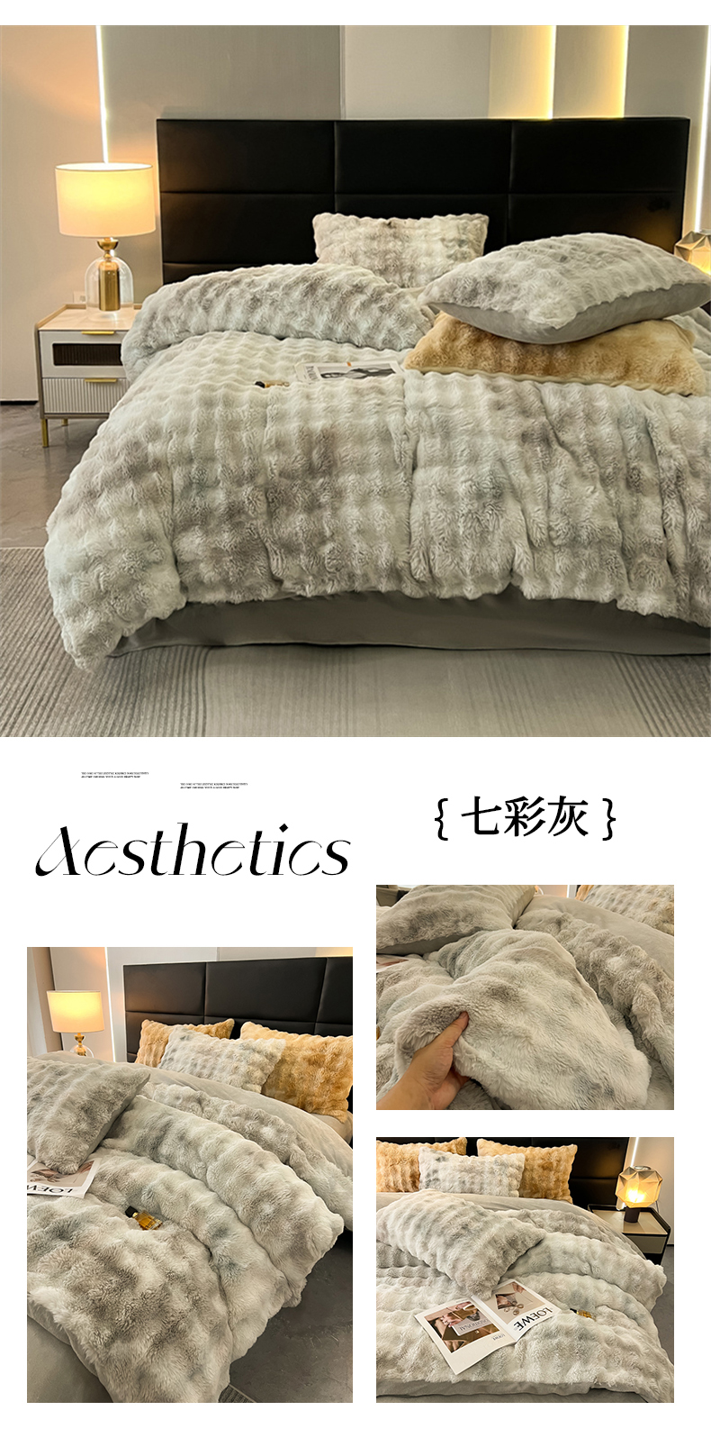 商品名称:默忆 2025新款七彩泡泡兔毛绒兔兔绒四件套 七彩灰