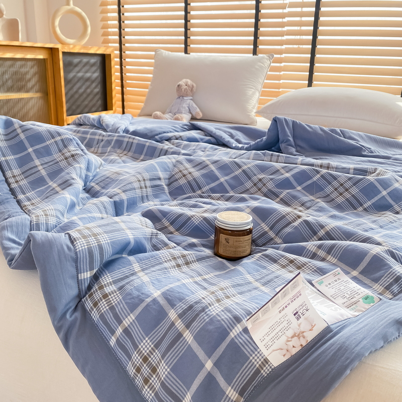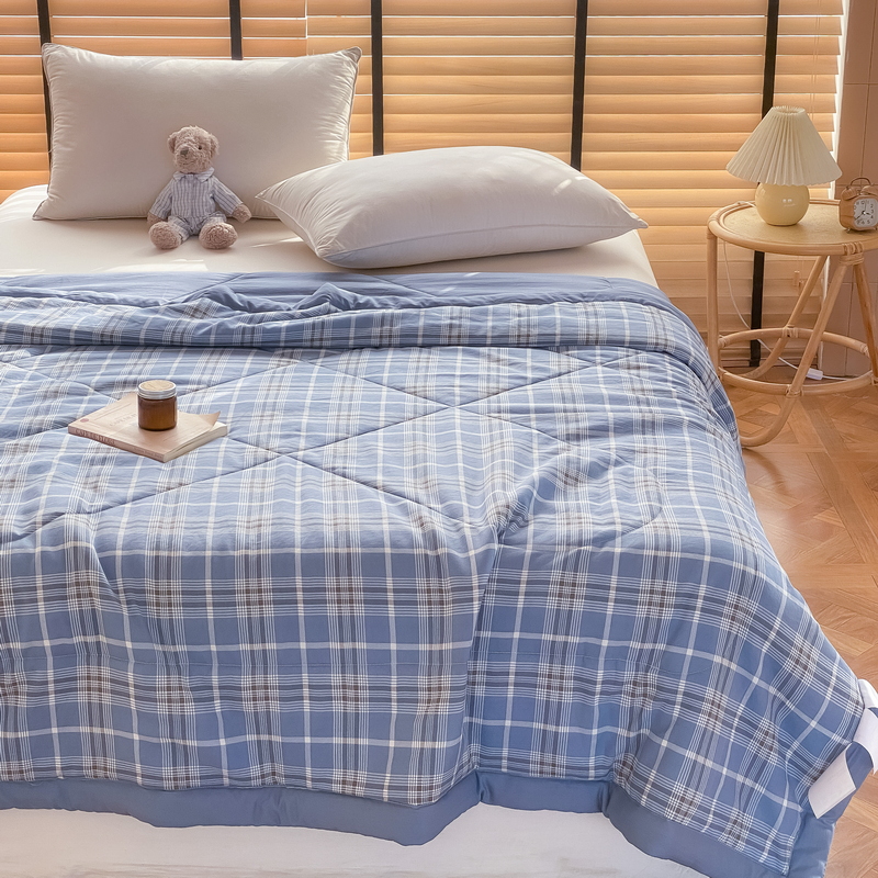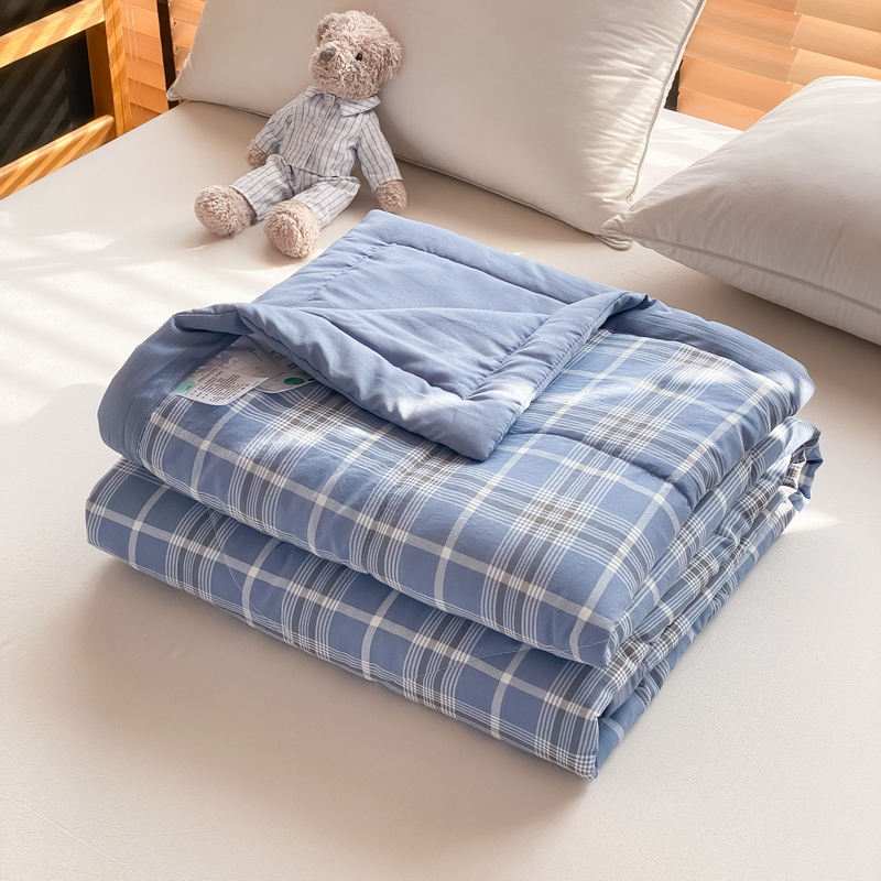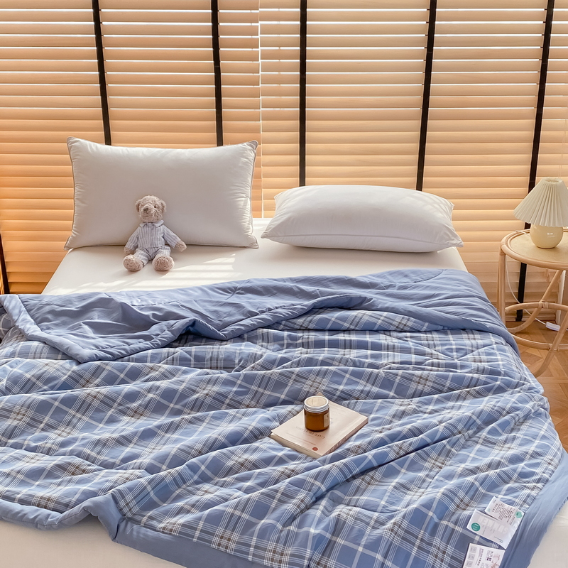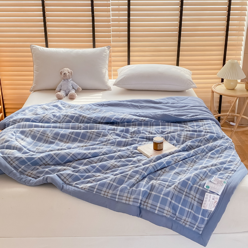 梦恬佳2024新款无印风水洗棉夏被-春野蓝