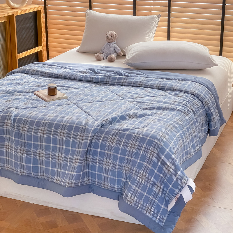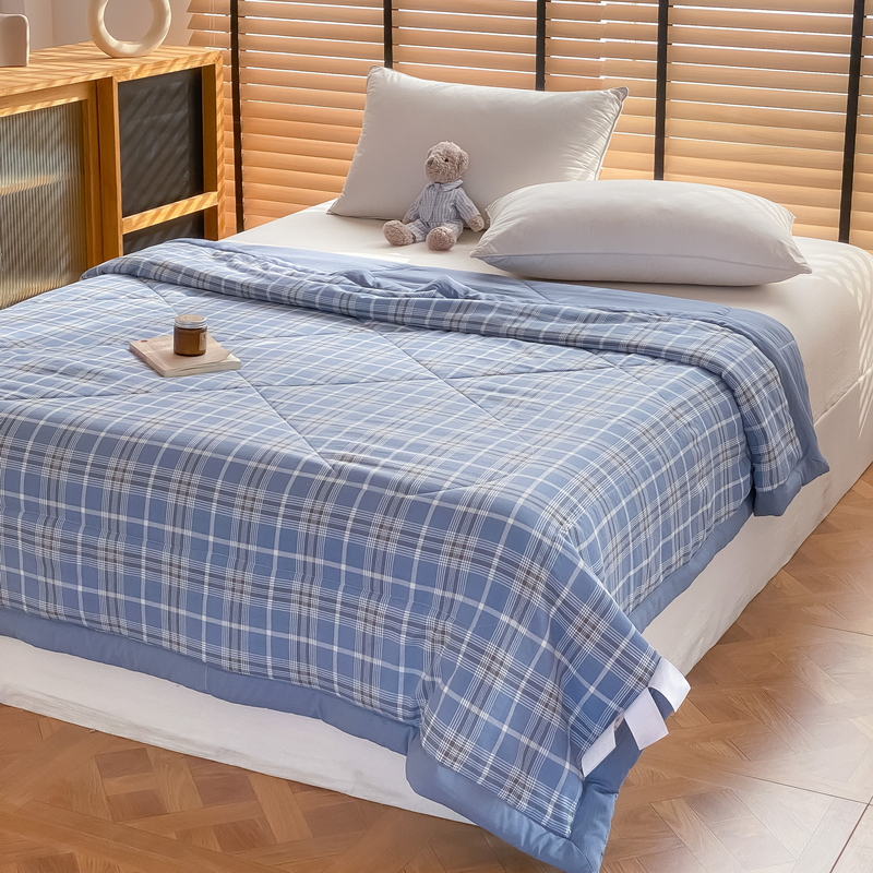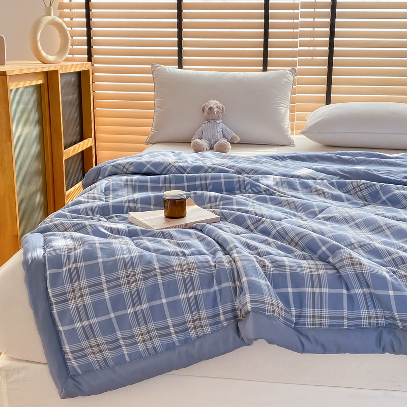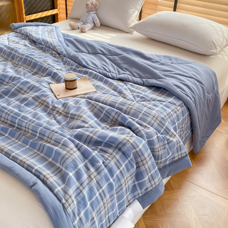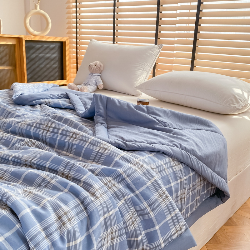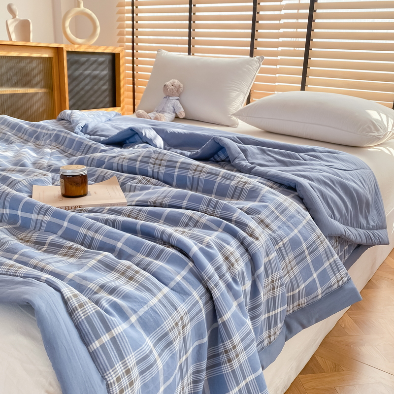 梦恬佳2024新款无印风水洗棉夏被-春野蓝