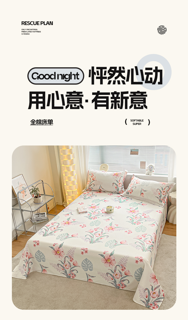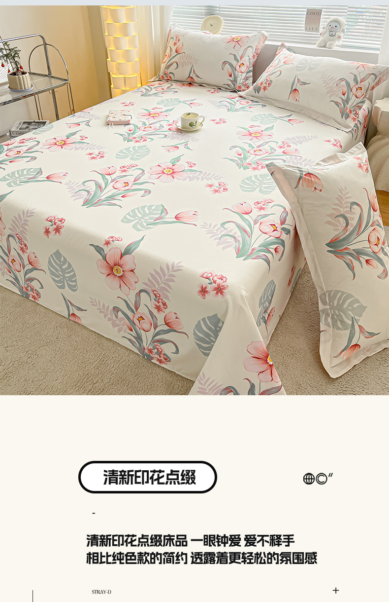 涵宸家纺 2024新款全棉小清新印花单品套件--单床单 床单-长歌行