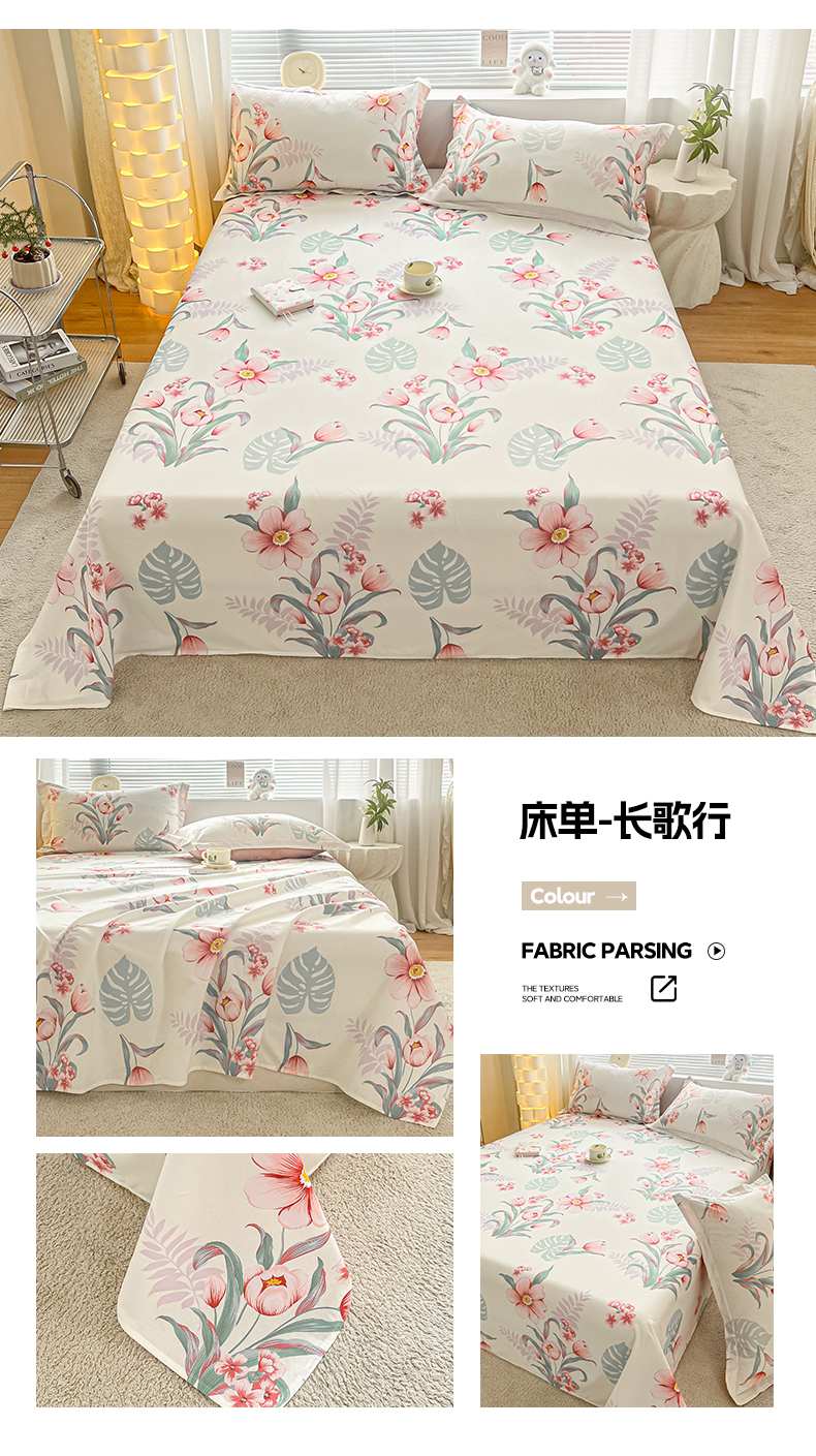 • 91家纺网 家纺一手货源 找家纺 涵宸家纺 2024新款全棉小清新印花单品套件--单床单 床单-长歌行