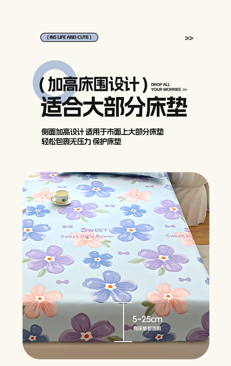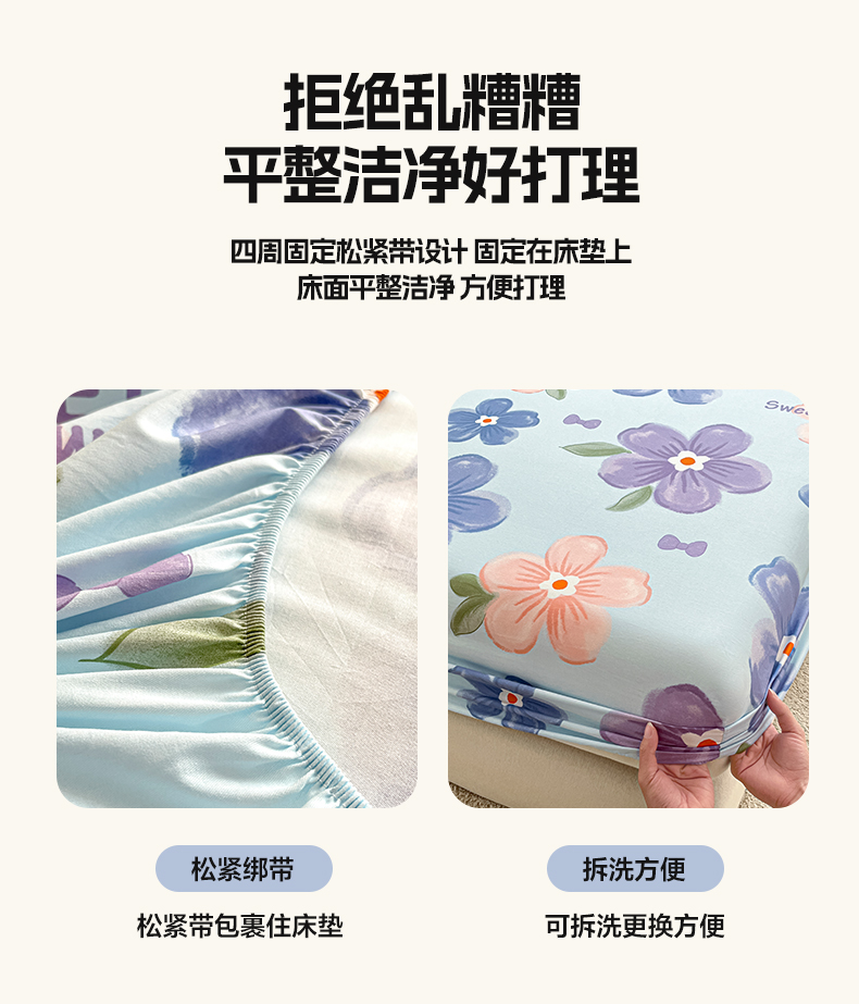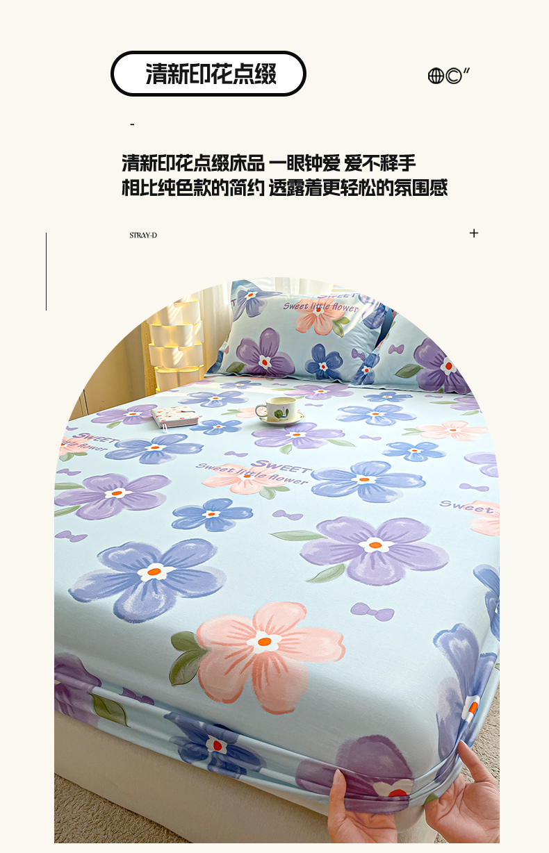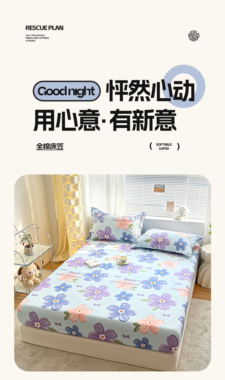 商品名称:涵宸家纺 2024新款全棉小清新印花单品套件--单床笠 床笠-花季