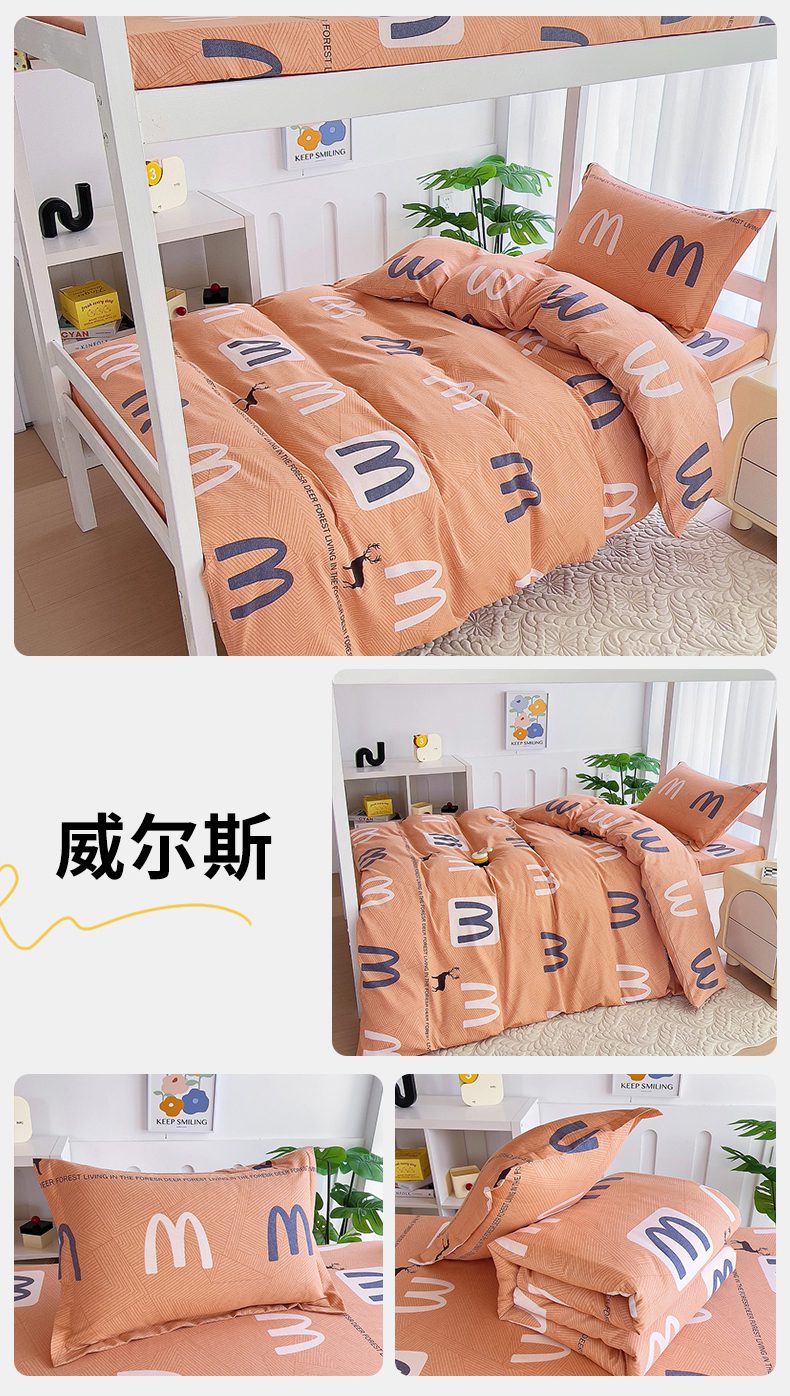 商品名称:优品阁 2024新款全棉磨毛学生上下铺三件套 威尔斯