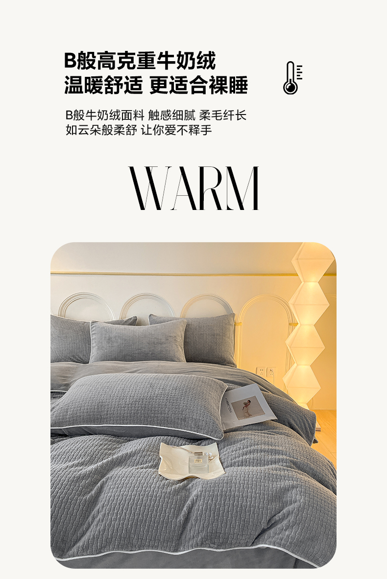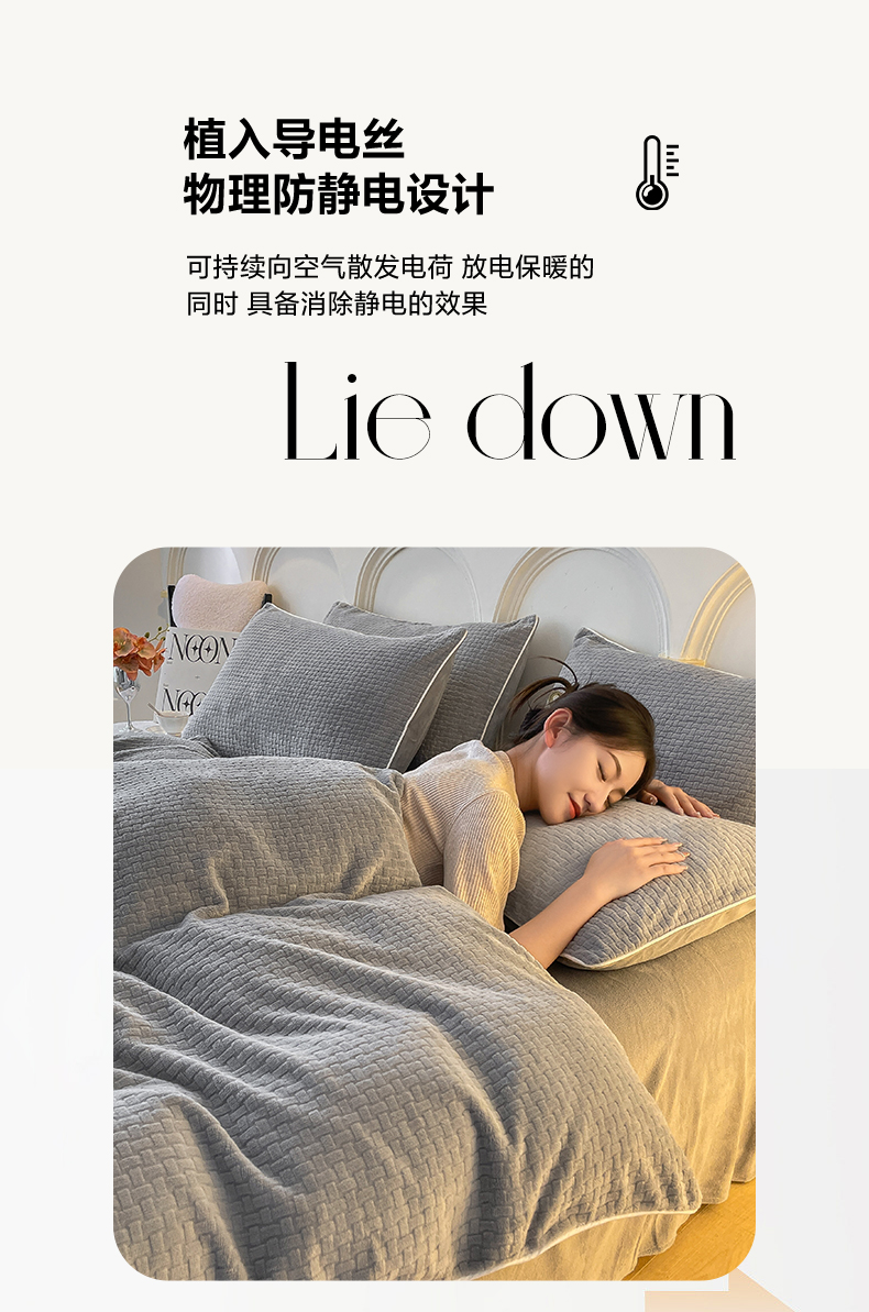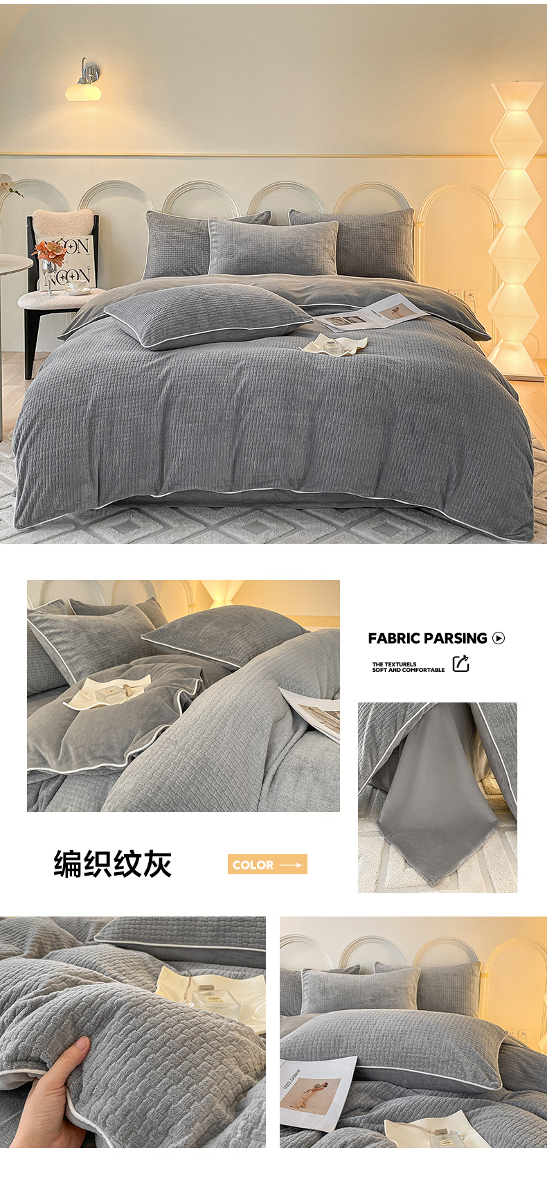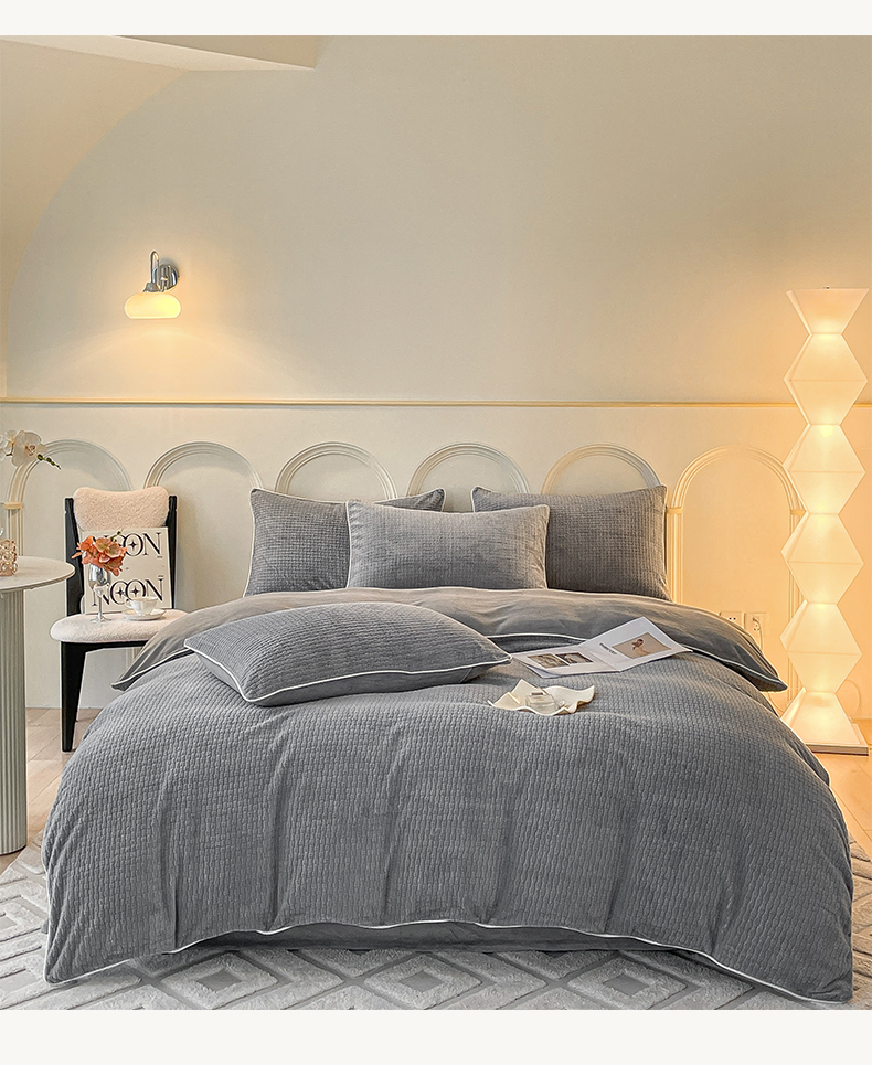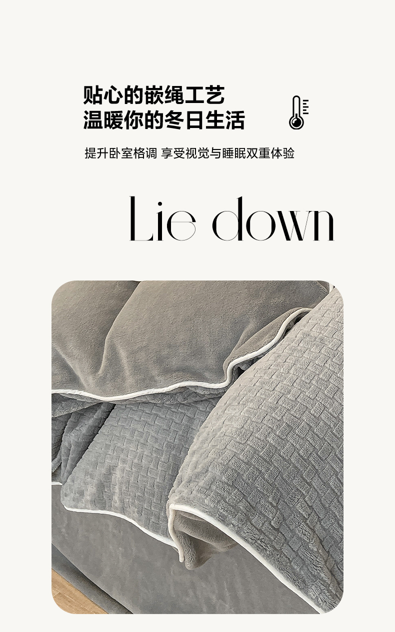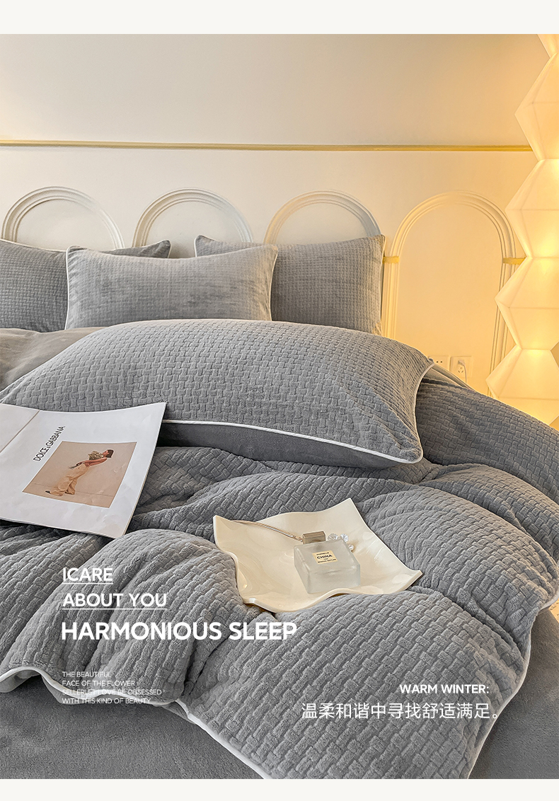当前位置: 91家纺网 > 商品网购 > 床品套件 > 四件套 > 牛奶绒四件套 > 2024新款牛奶绒雕花麻绳款三件套四件套 编织纹灰