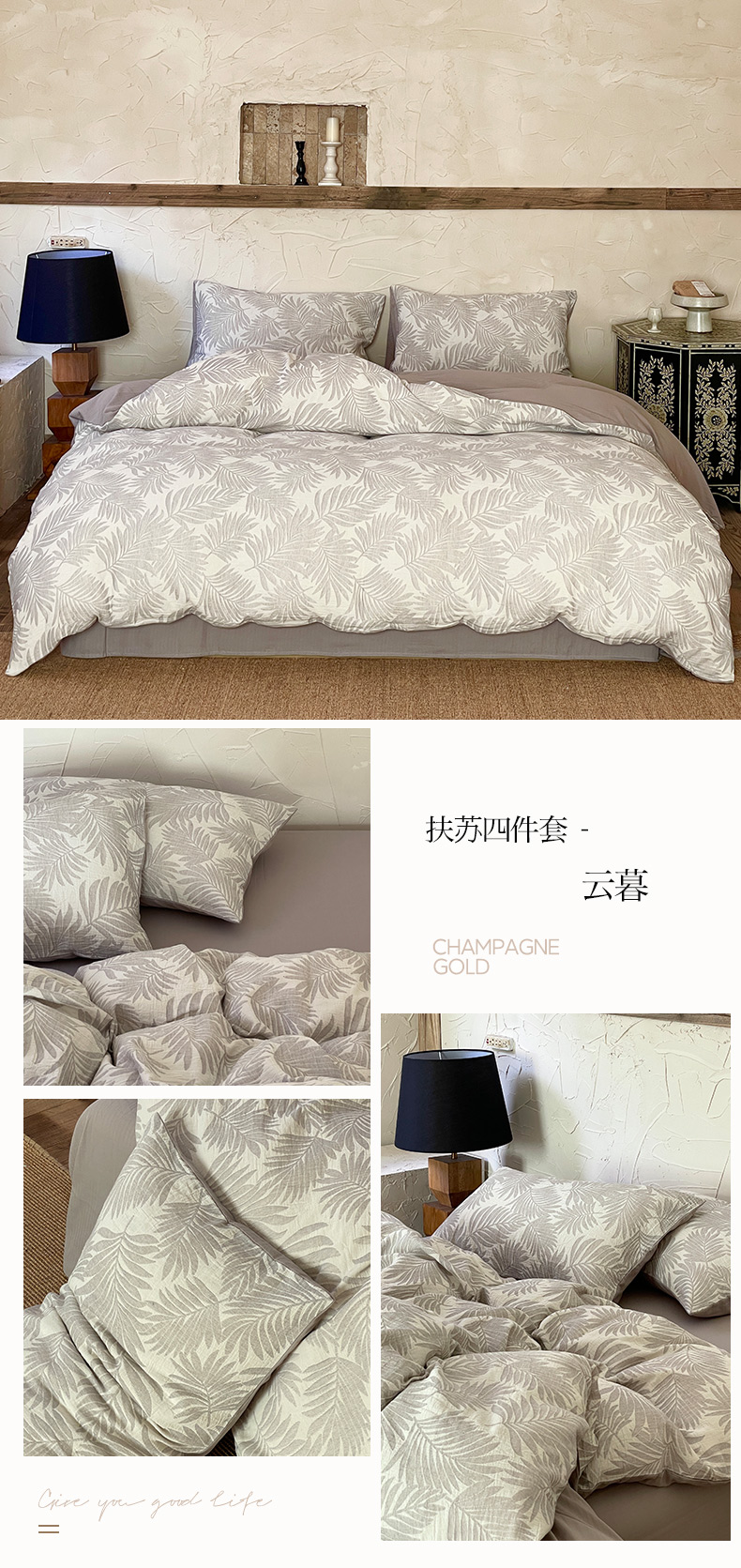 商品名称:山舍家居 2024新款棉麻色织提花四件套 扶苏-云暮