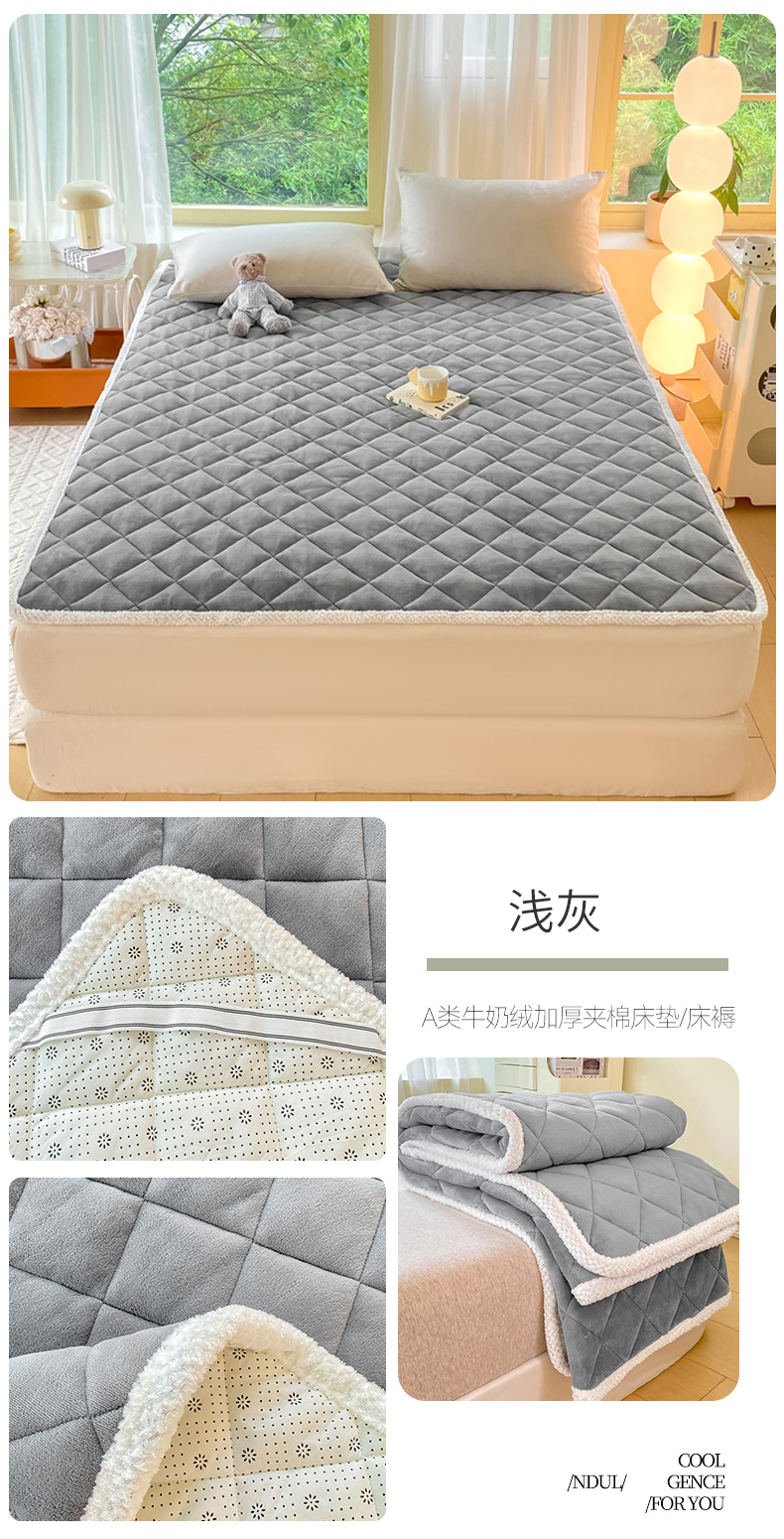 商品名称:正邦家纺 2024新款牛奶绒床垫小清新加厚床褥保暖宽包边可机洗床护垫床褥 浅灰