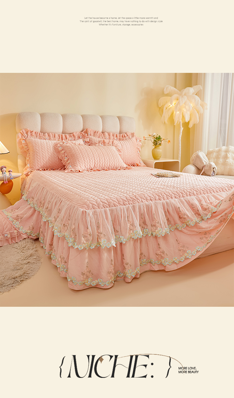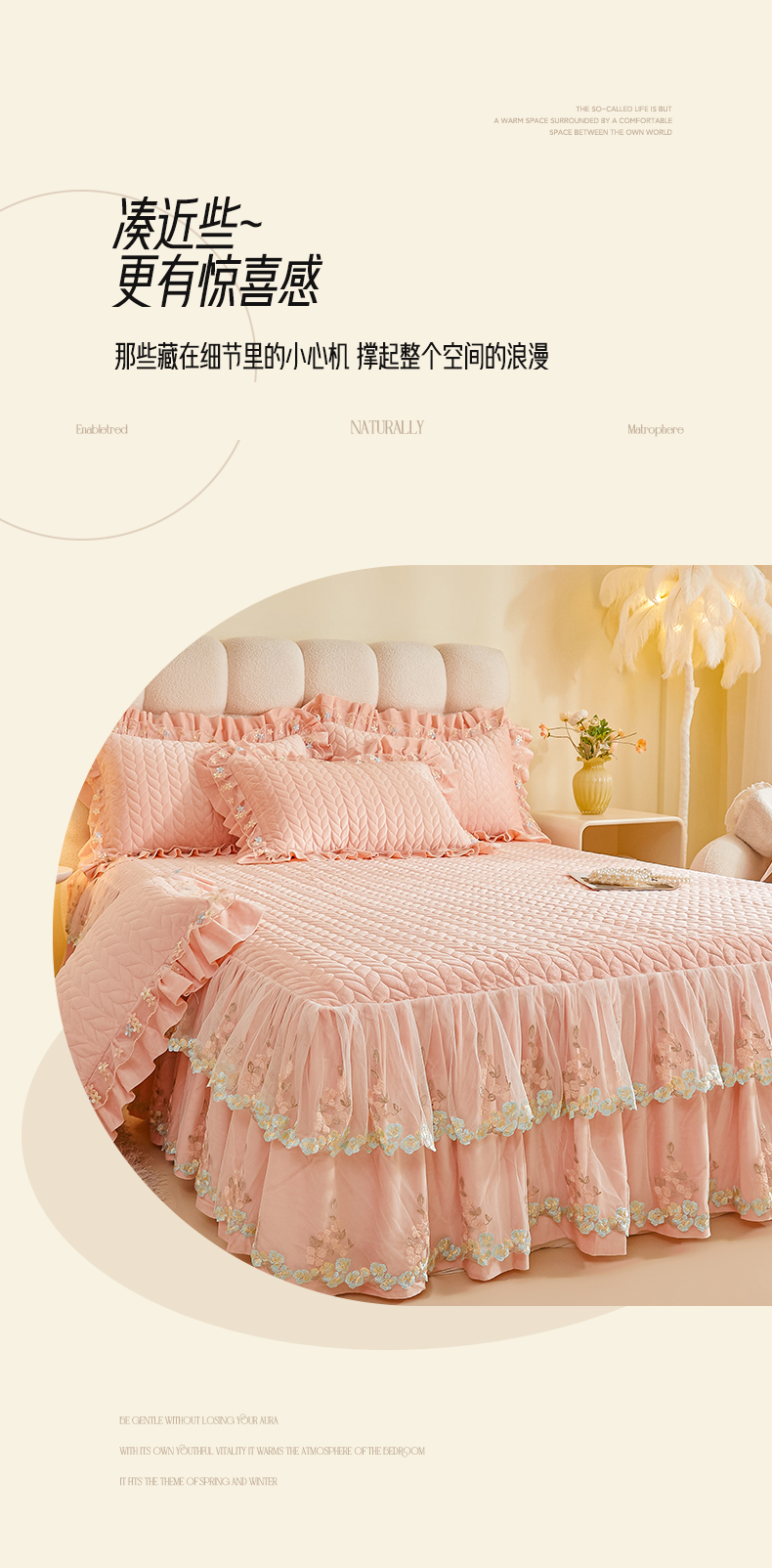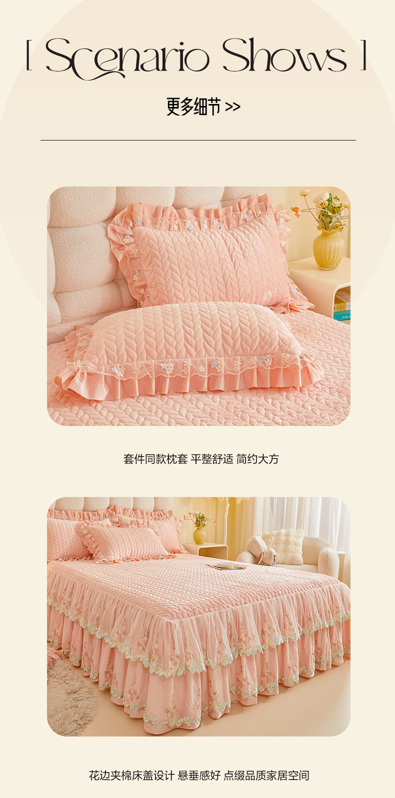 (总)瑞宝 2025新款雕花牛奶绒夹棉床裙三件套-花有约,花有约-粉玉,花有约-青柠绿,花有约-奶油白,花有约-蔚蓝,花有约-卡其,花有约-梦幻紫