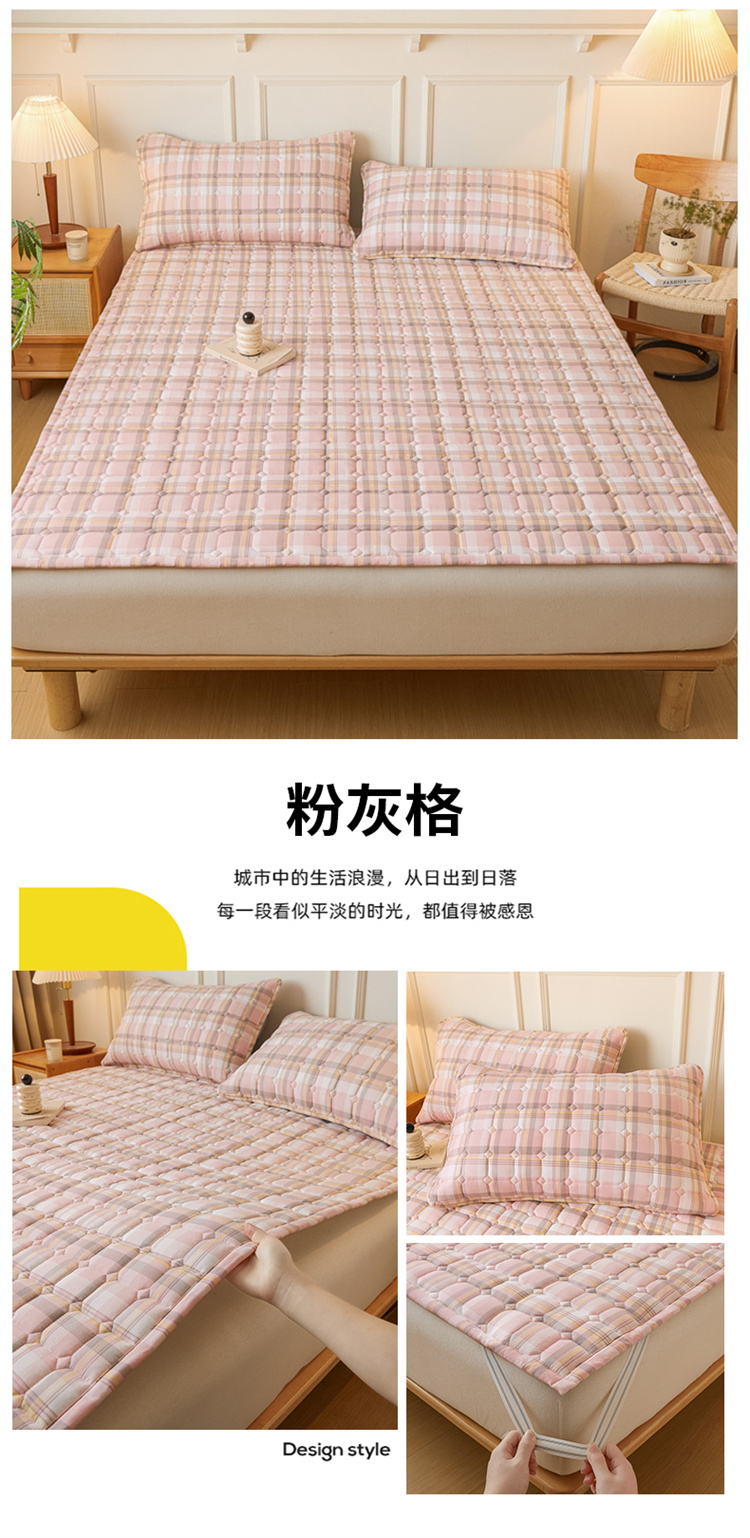 商品名称:恋绒家纺 2025新款无印风床褥床护垫宿舍床垫亲肤水洗棉软床垫 粉灰格