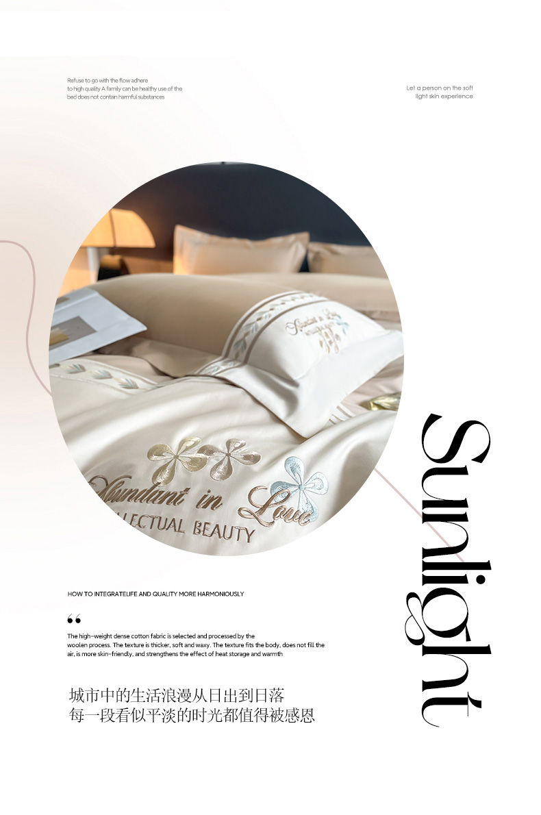 桃园 2025新款全棉长绒棉刺绣绣花四件套-西西里系列 香槟
