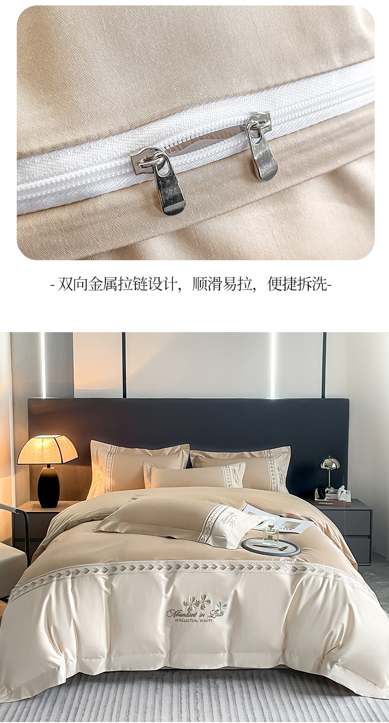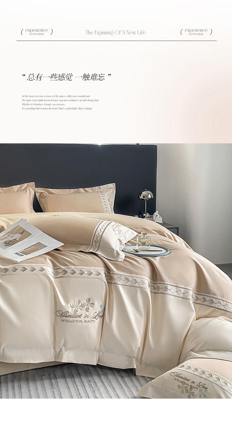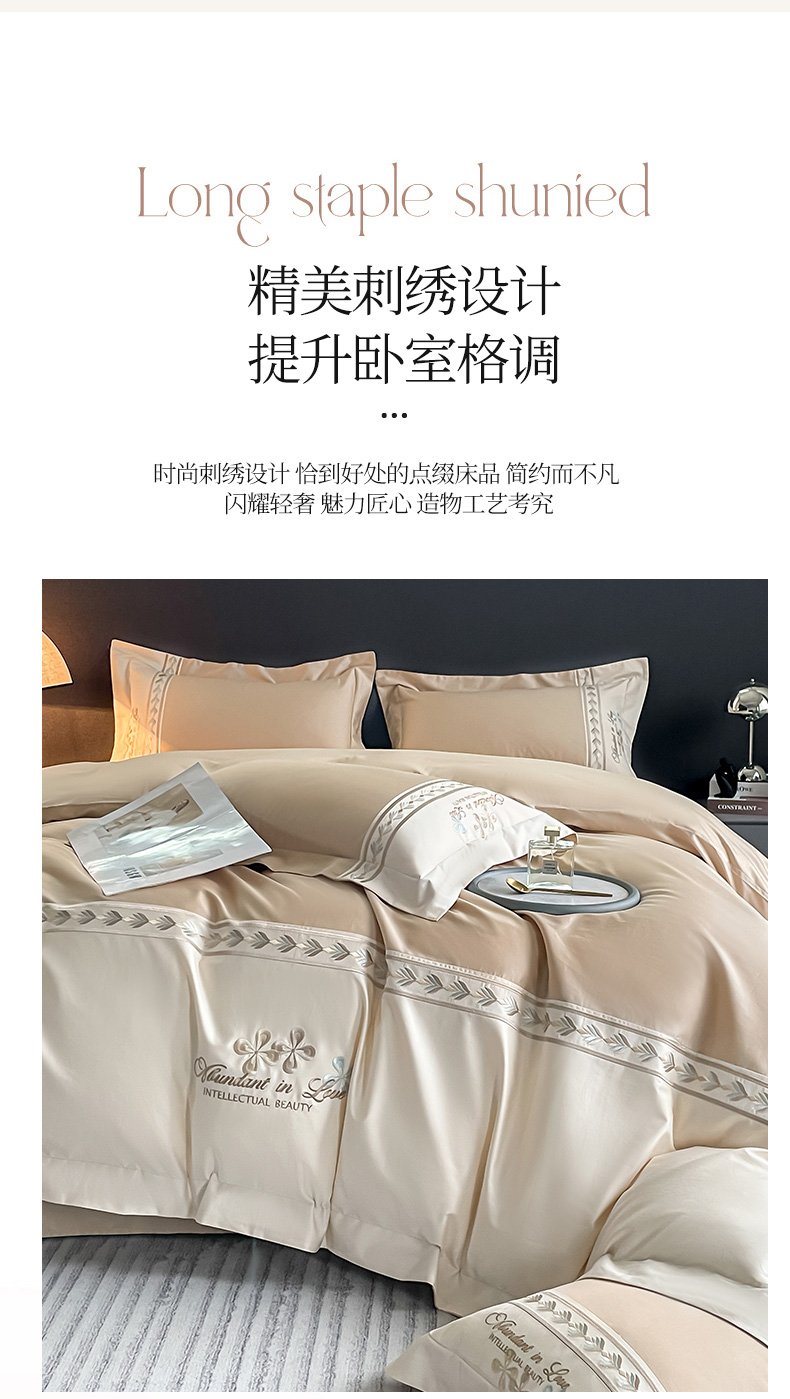 商品名称:桃园 2025新款全棉长绒棉刺绣绣花四件套-西西里系列 香槟