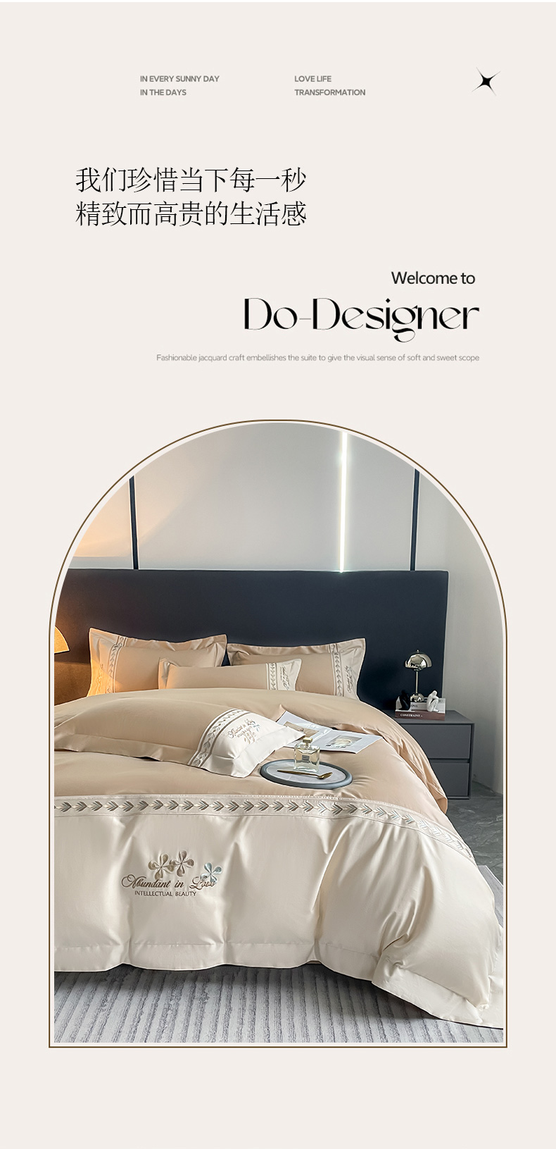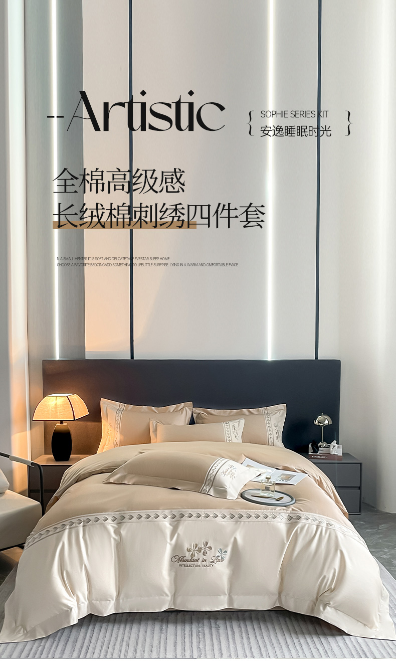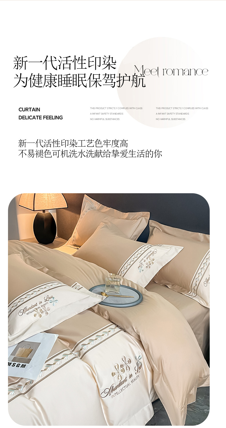 商品名称:桃园 2025新款全棉长绒棉刺绣绣花四件套-西西里系列 香槟