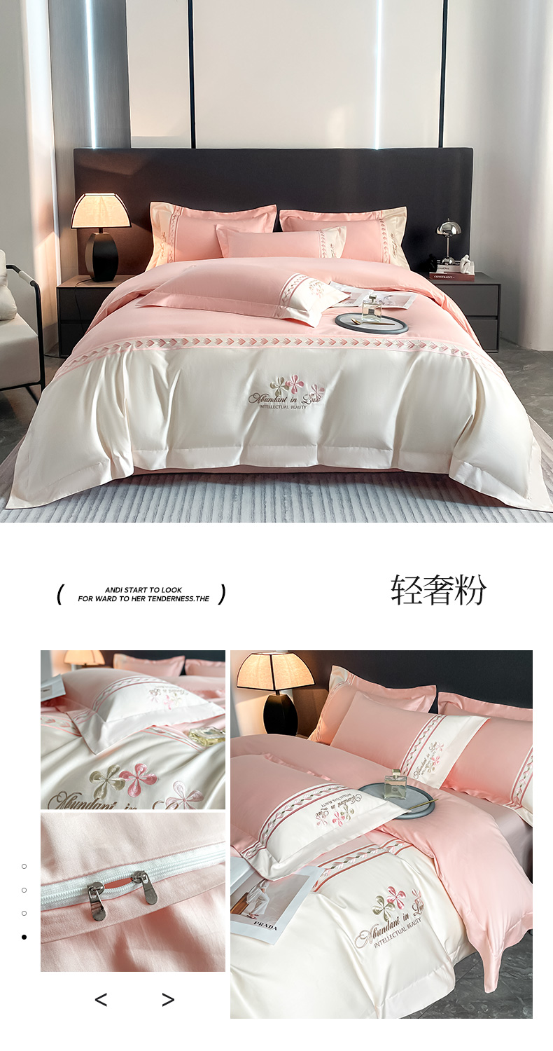(总)桃园 2025新款全棉长绒棉刺绣绣花四件套-西西里系列,飘蓝,轻奢粉,绅士灰,香槟