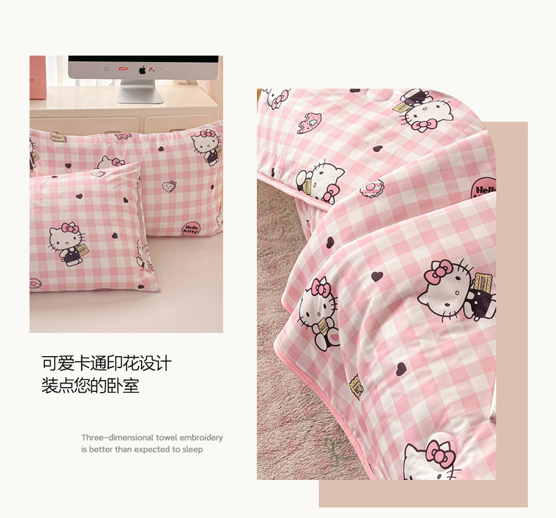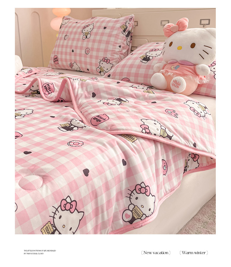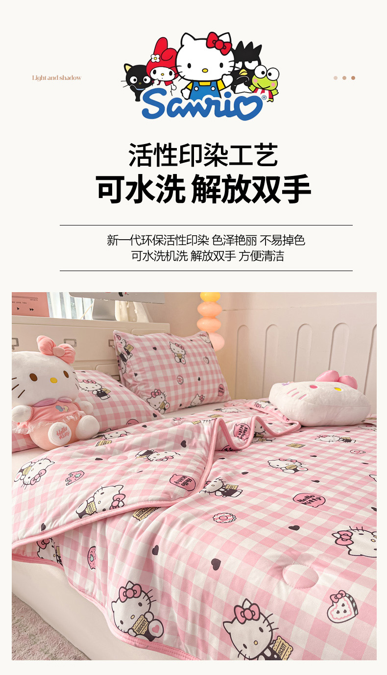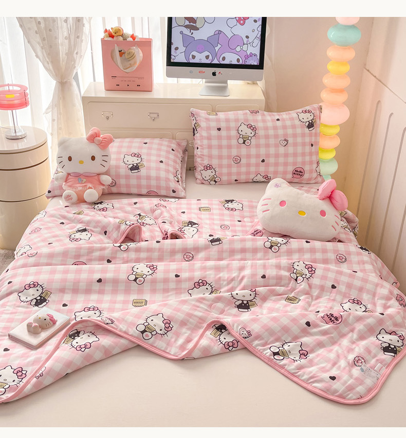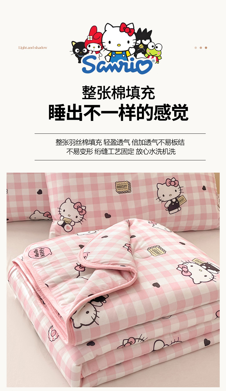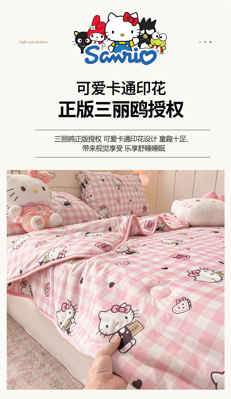 商品名称:暮思家居 2025新款正版授权三丽鸥A类牛奶针织棉夏被子被芯 针织棉-粉格KT