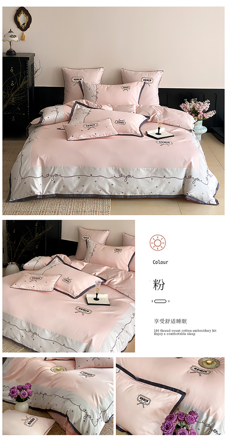 (总)品家居 2025新款180支长绒棉四件套可可系列,可可-粉,可可-蓝,可可-紫