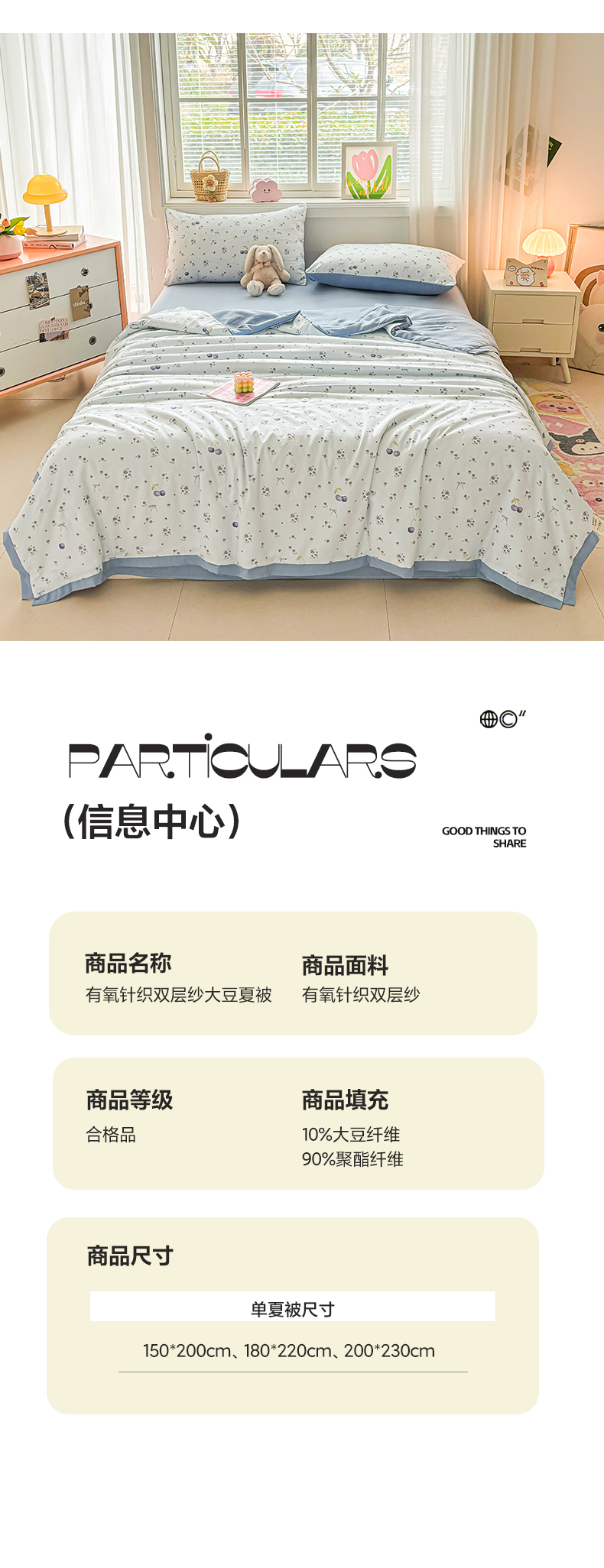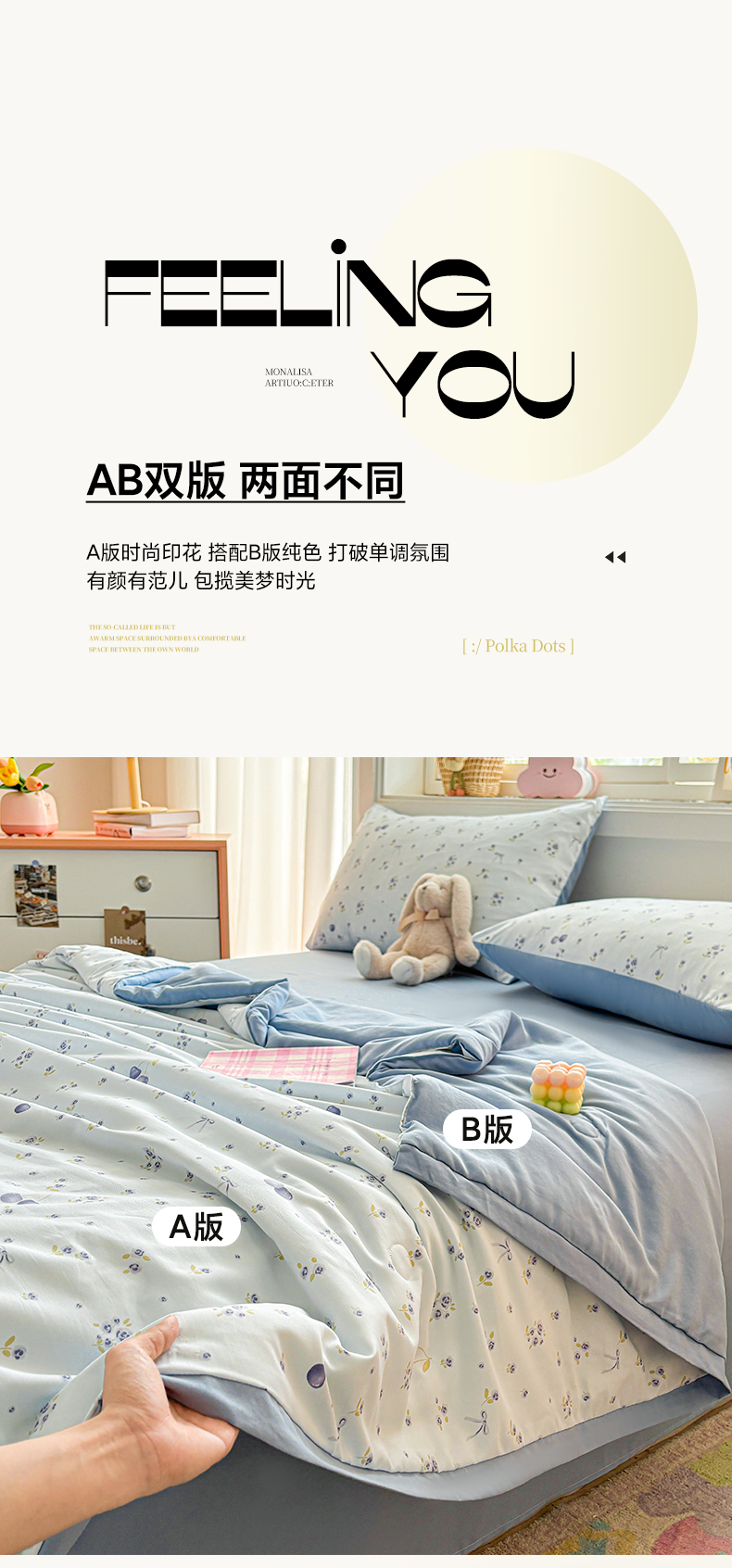 当前位置: 91家纺网 > 商品网购 > 床品套件 > 四件套 > 夏被四件套 > 金喜 2025新款小清新风格有氧针织双层纱大豆被夏被四件套 星晴兰