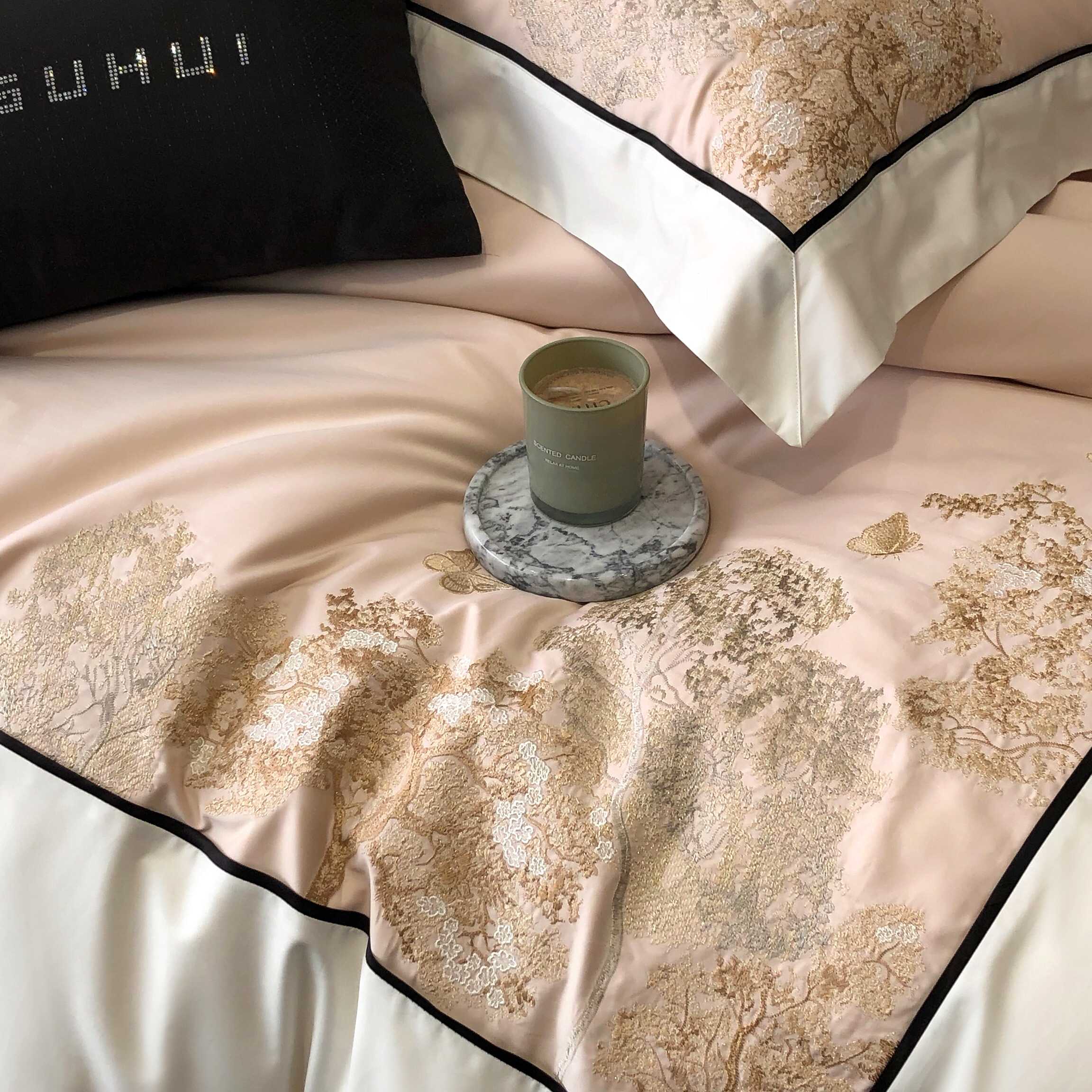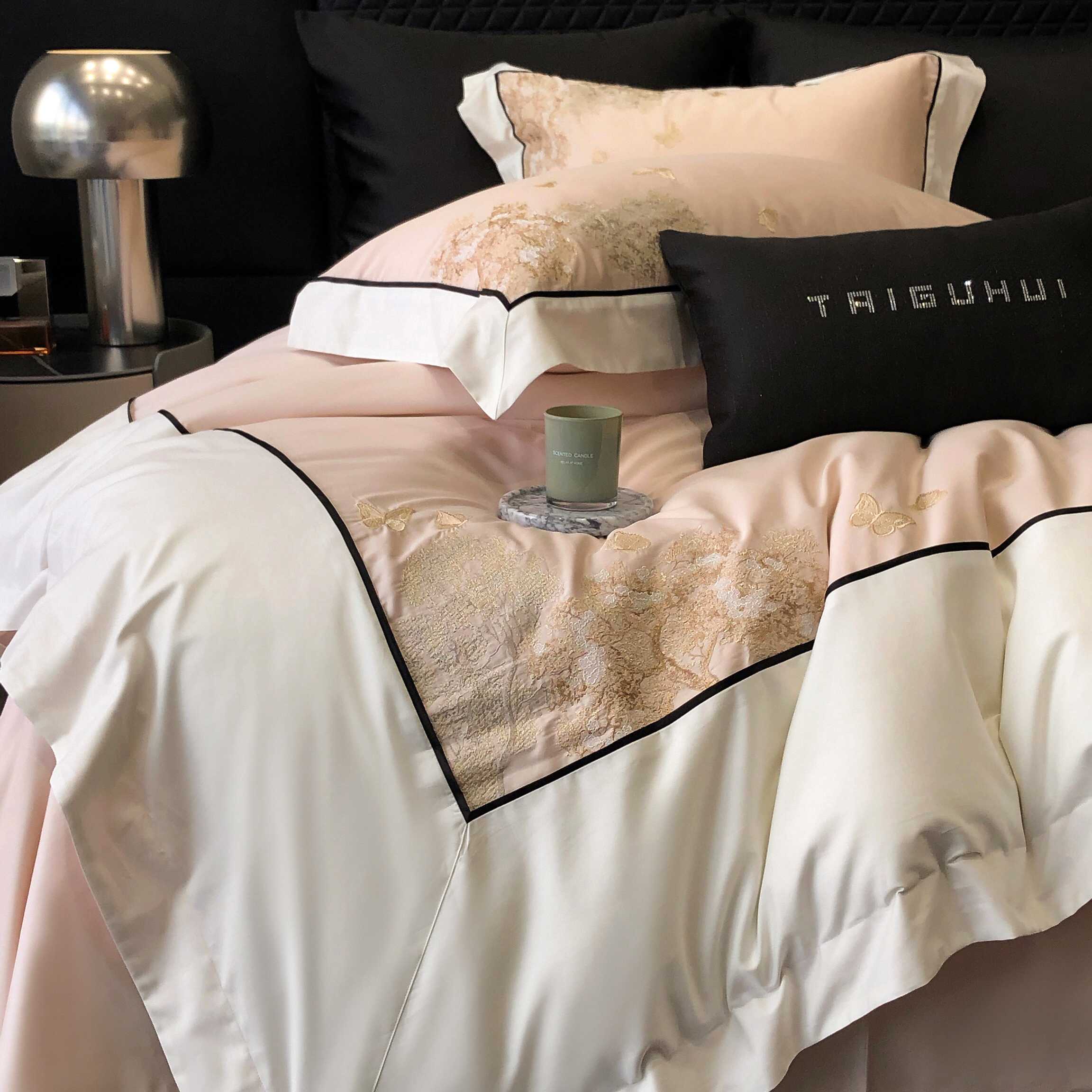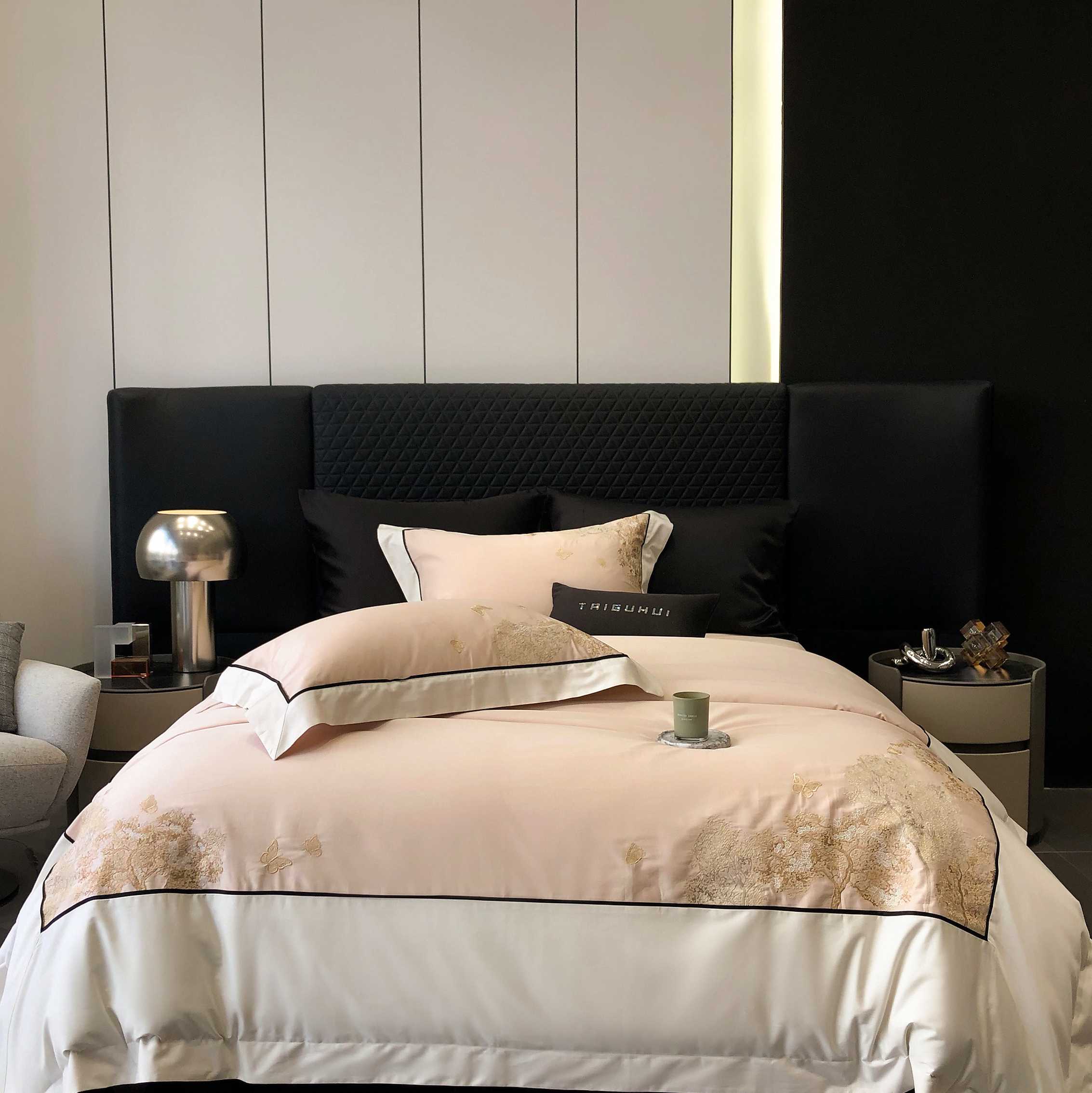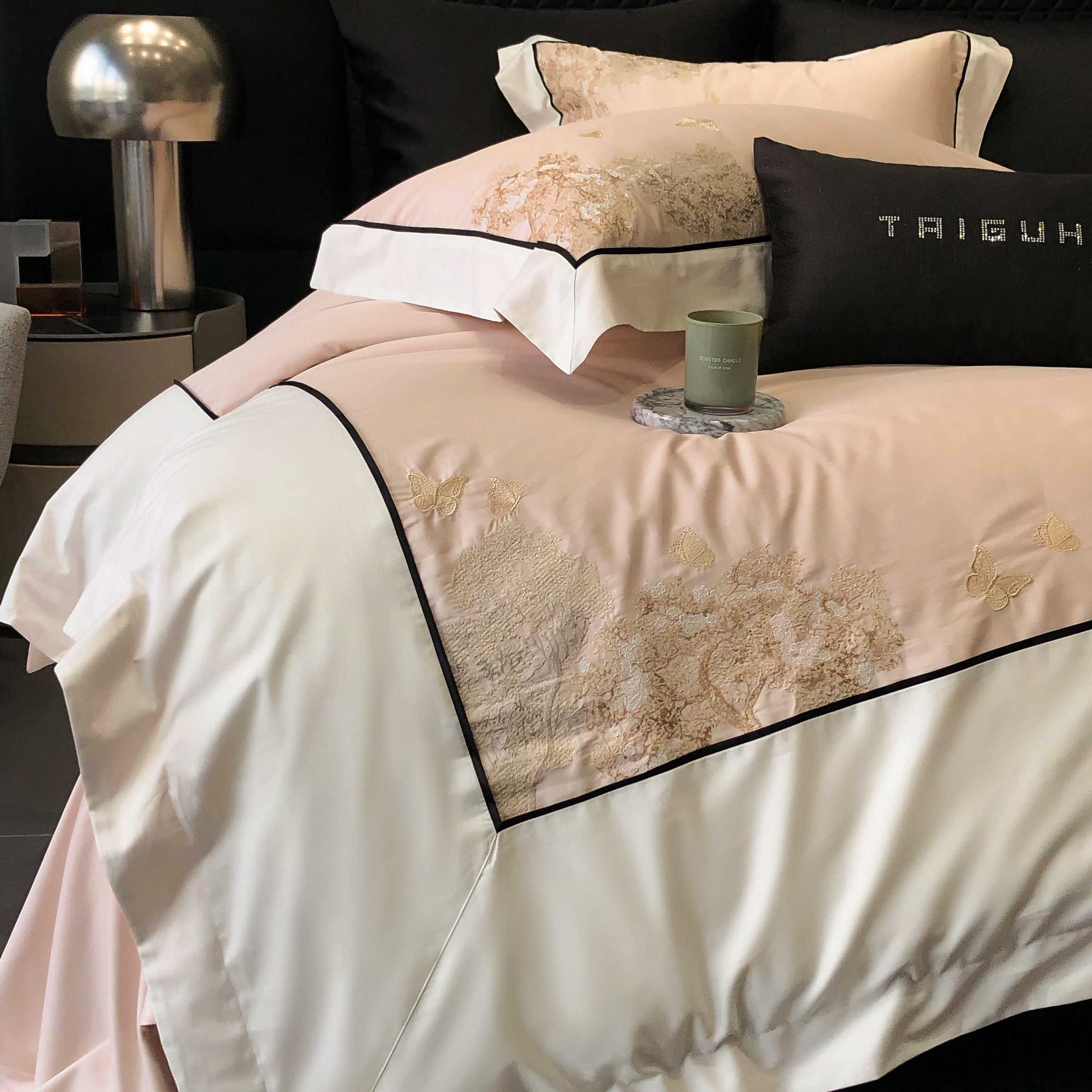 商品名称:太古汇家居 2025年长绒棉高定绣花四件套-“春日来信”系列 春日来信-冰梅粉