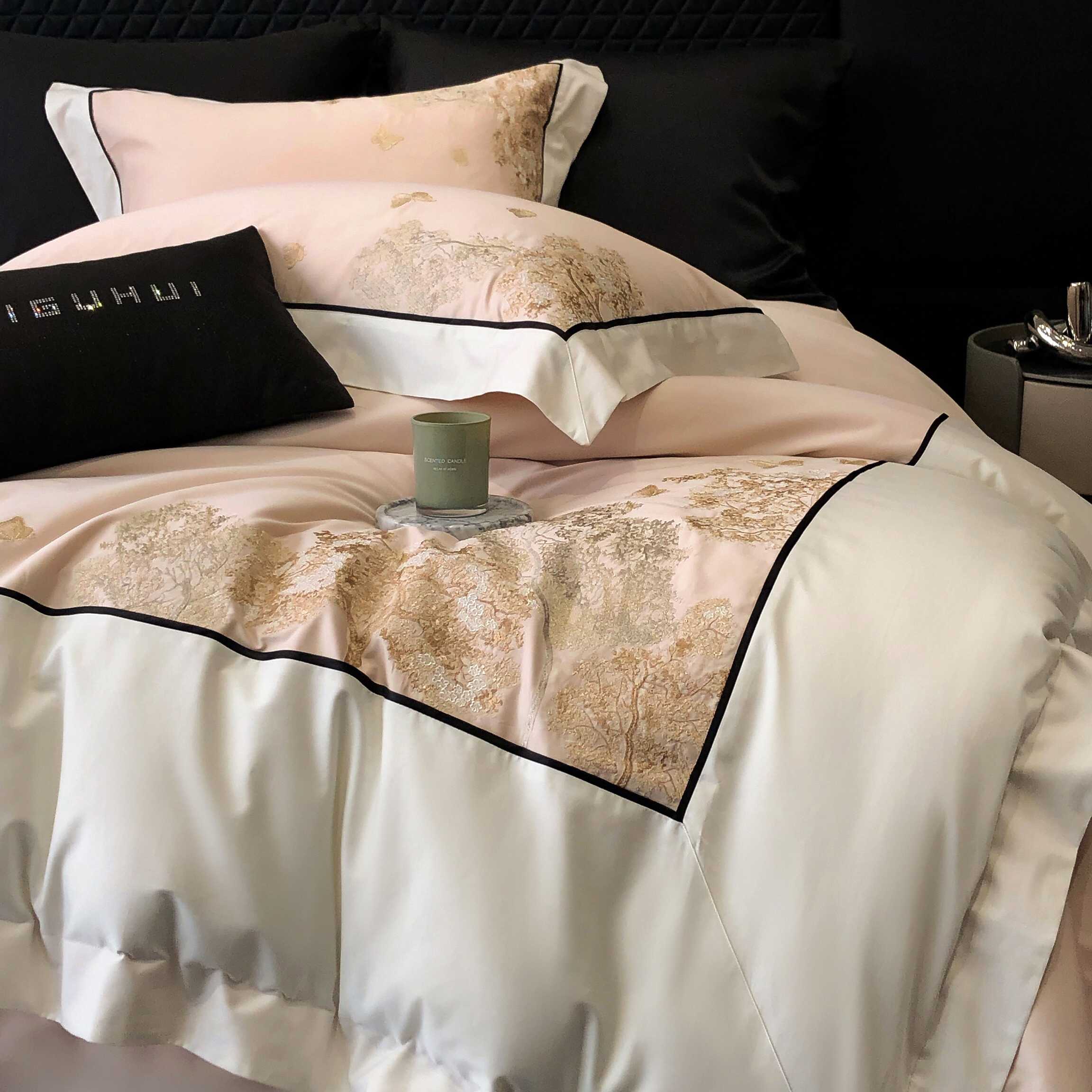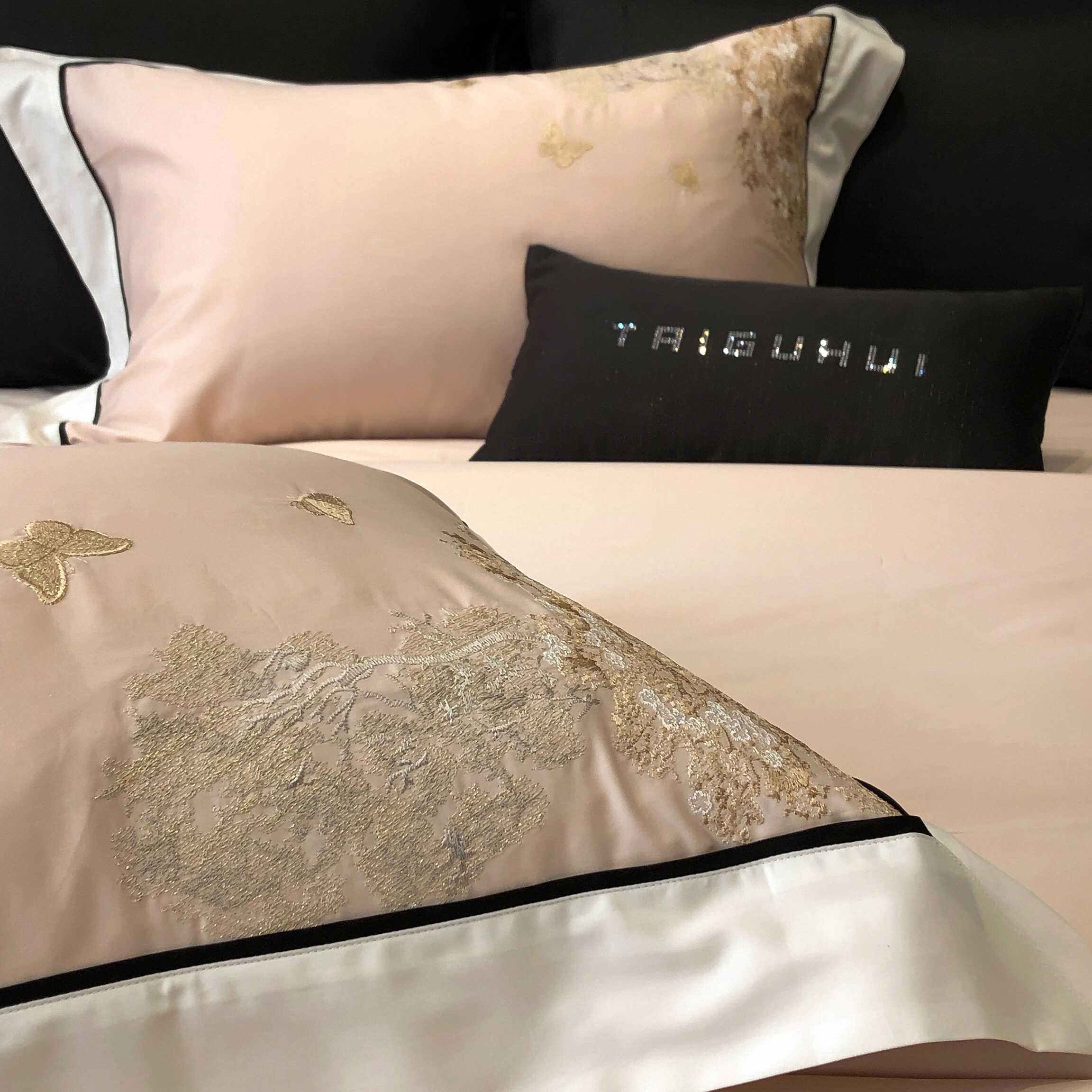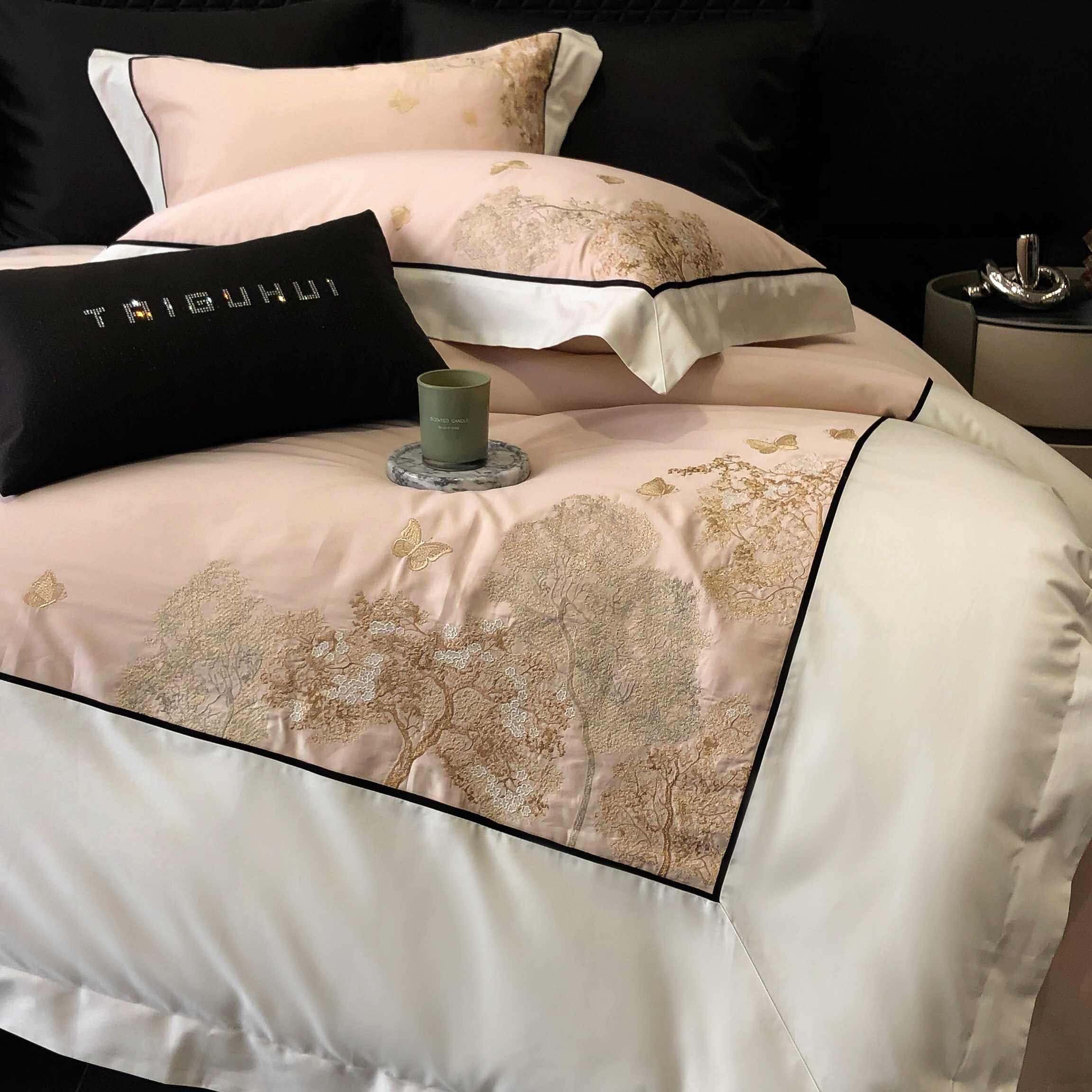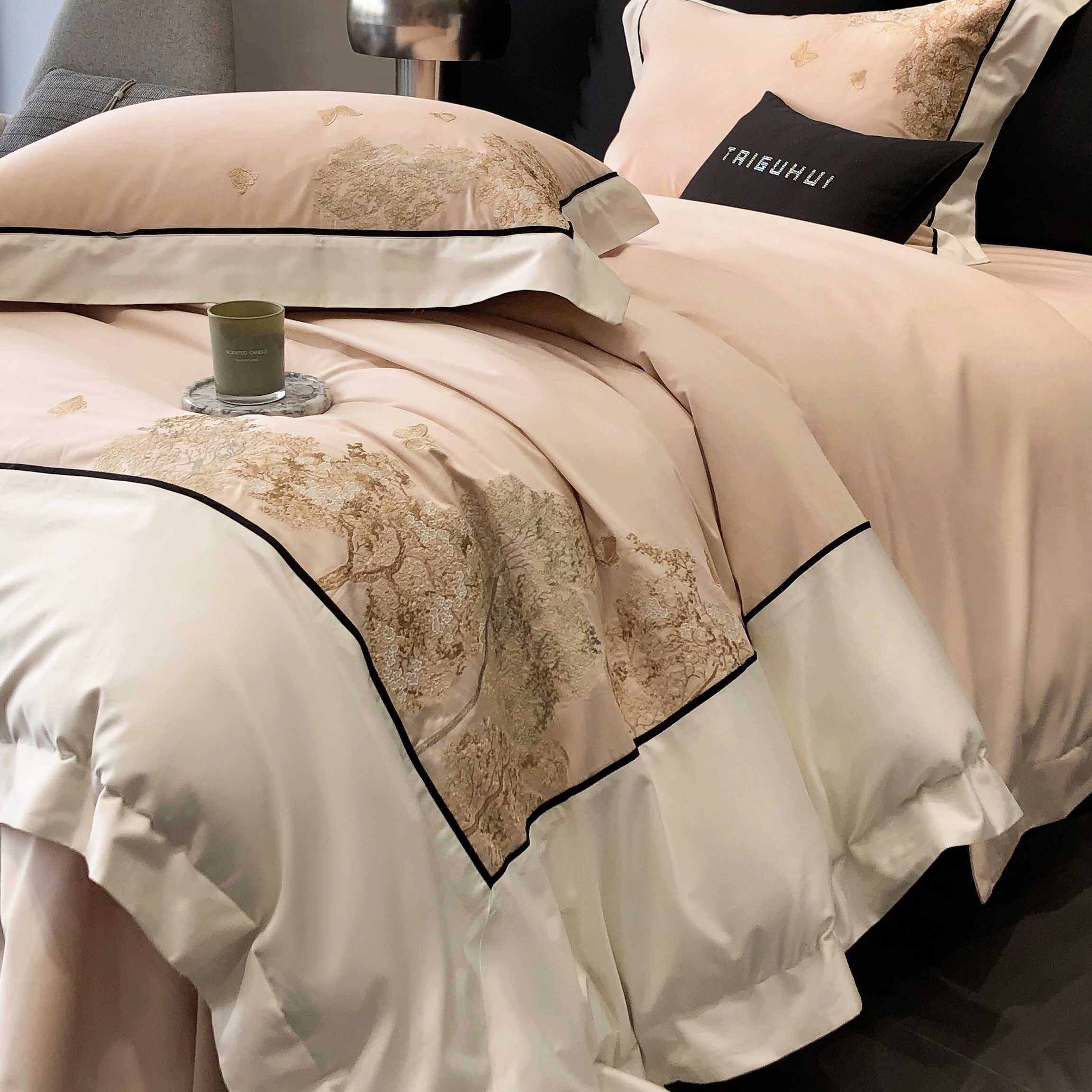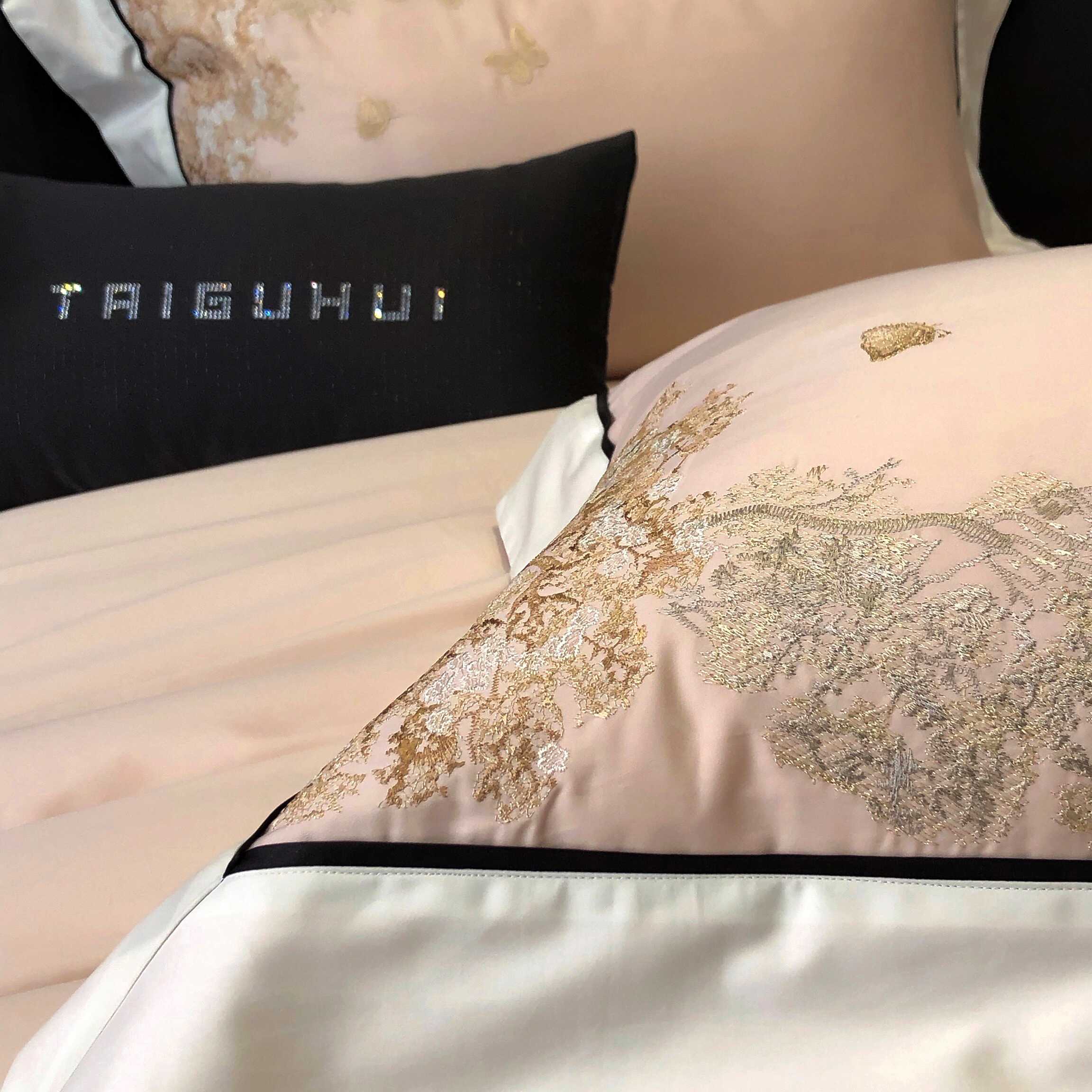 商品名称:太古汇家居 2025年长绒棉高定绣花四件套-“春日来信”系列 春日来信-冰梅粉